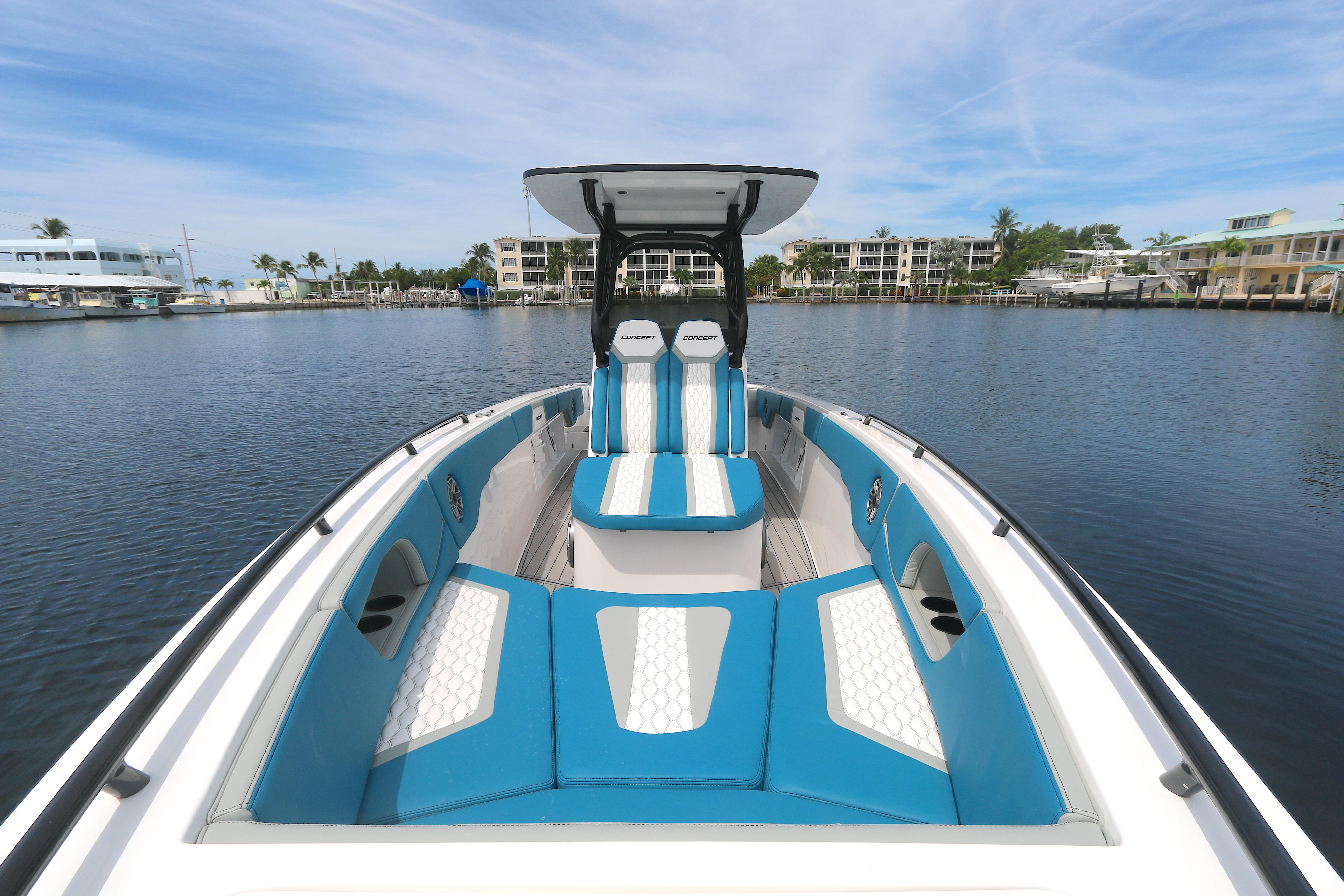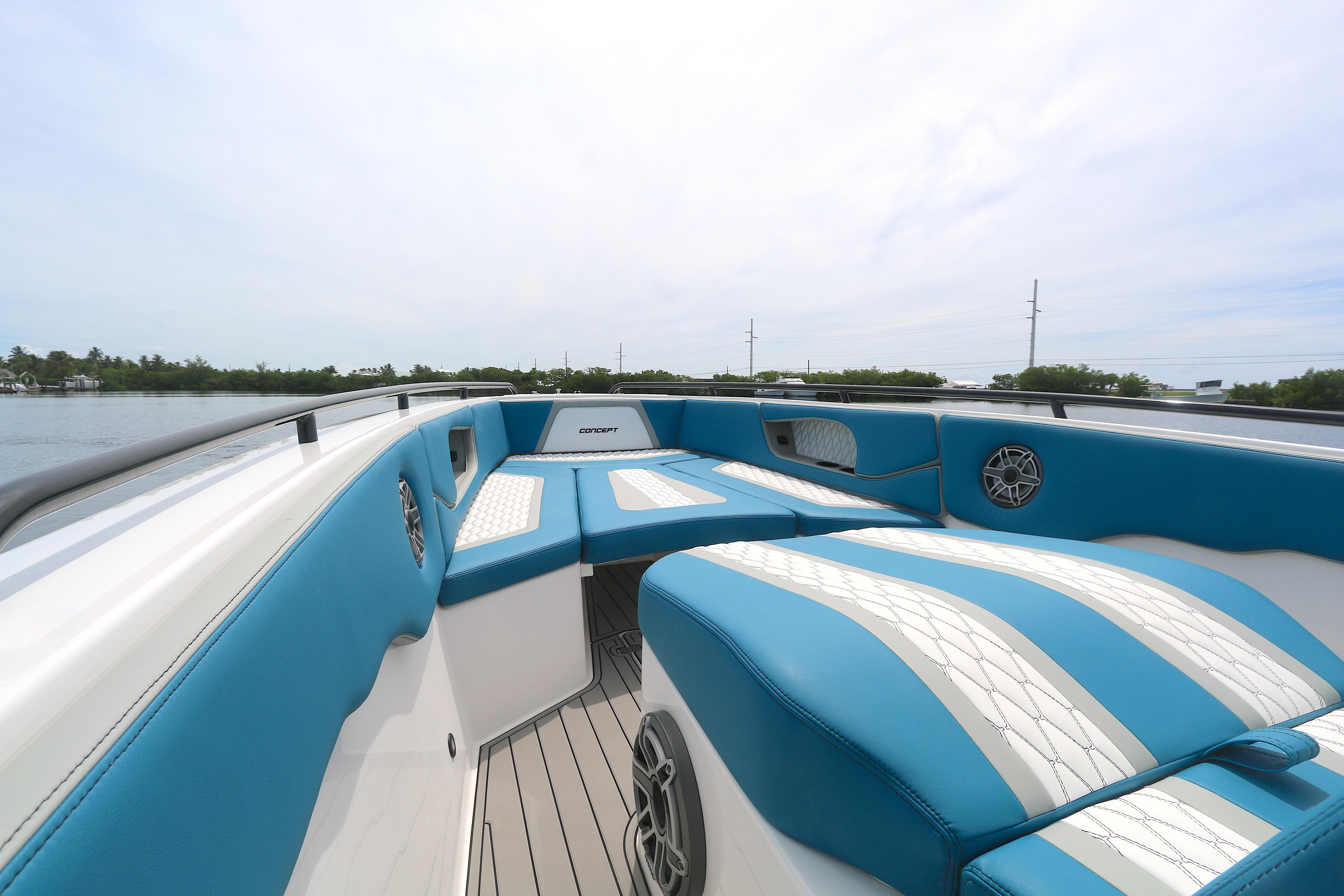 30" Concept Open Deck provides an ample space to accommodate up to 10 people. Stylish lounge seating at the bow allows for the best place to watch the sunset or while Sun Bathing at the Sandbar.
