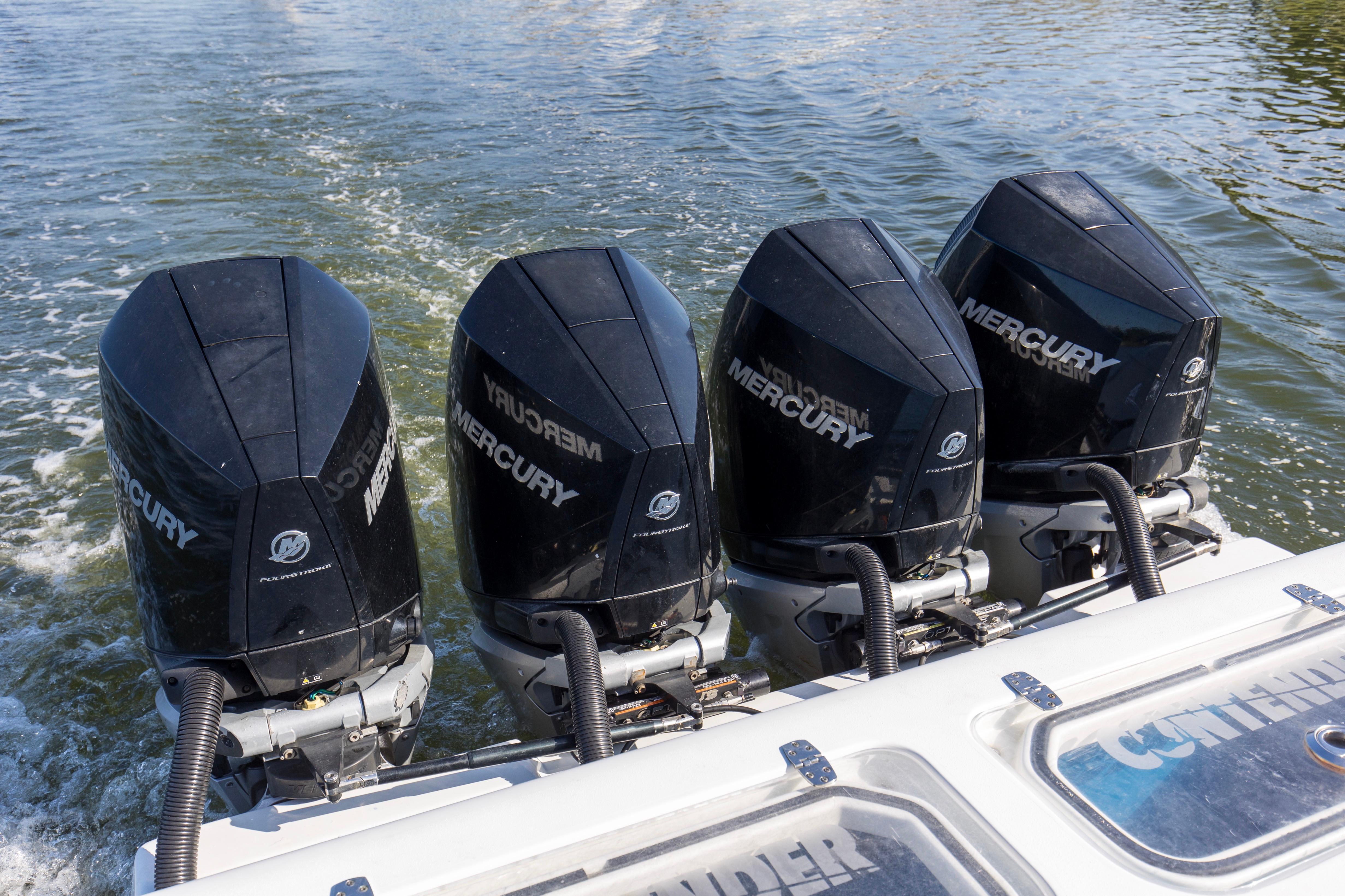 - Quad Mercury Verado V8 300 hp main engines with 2450 Original Hours