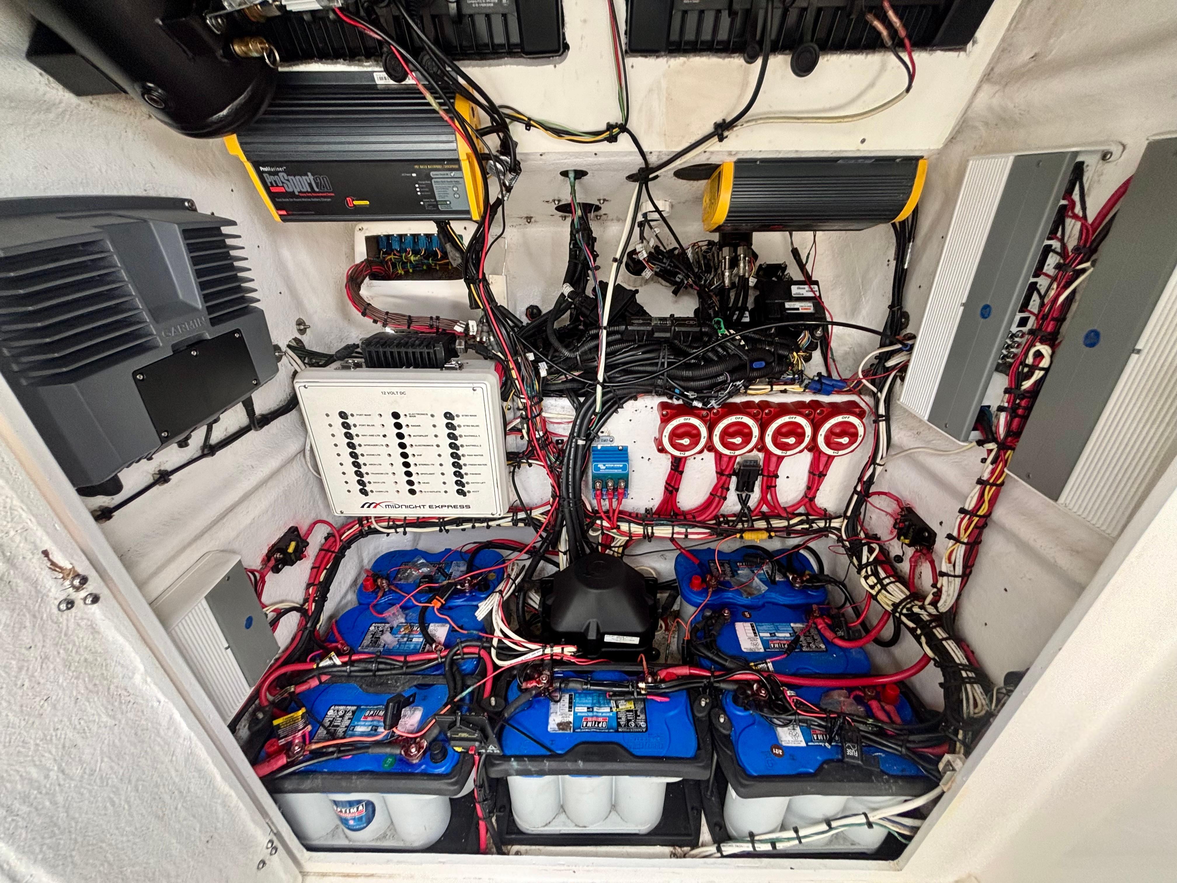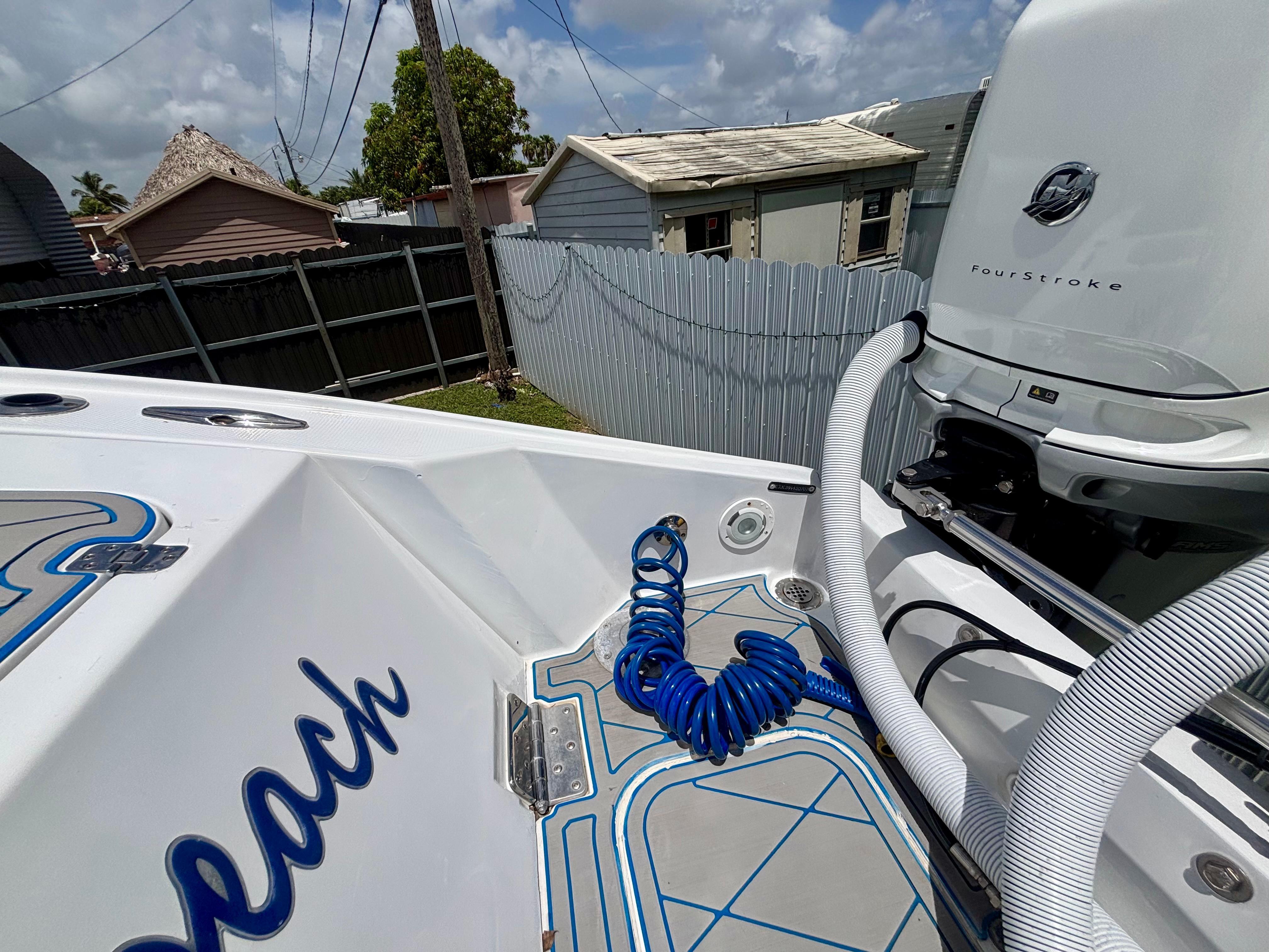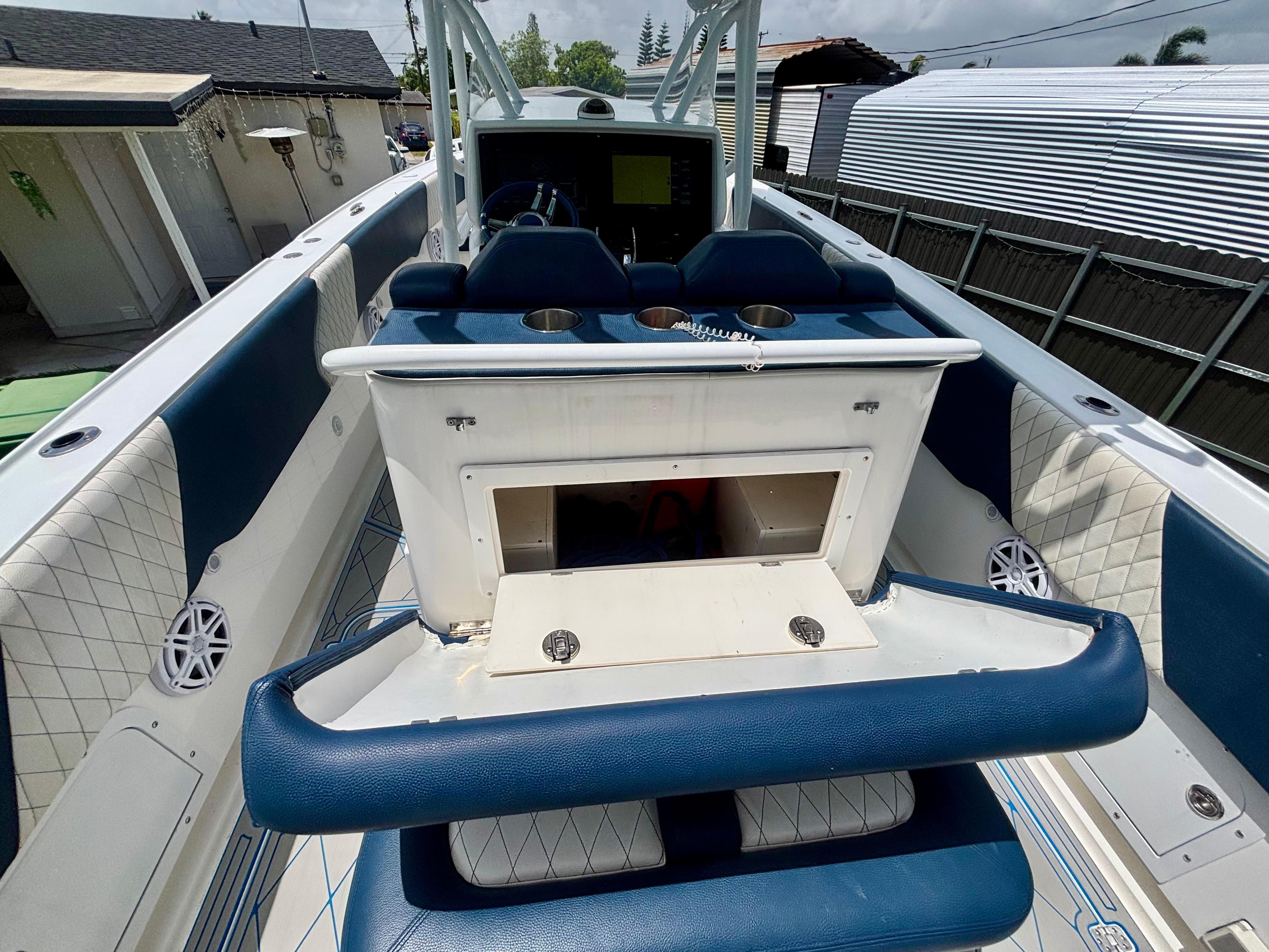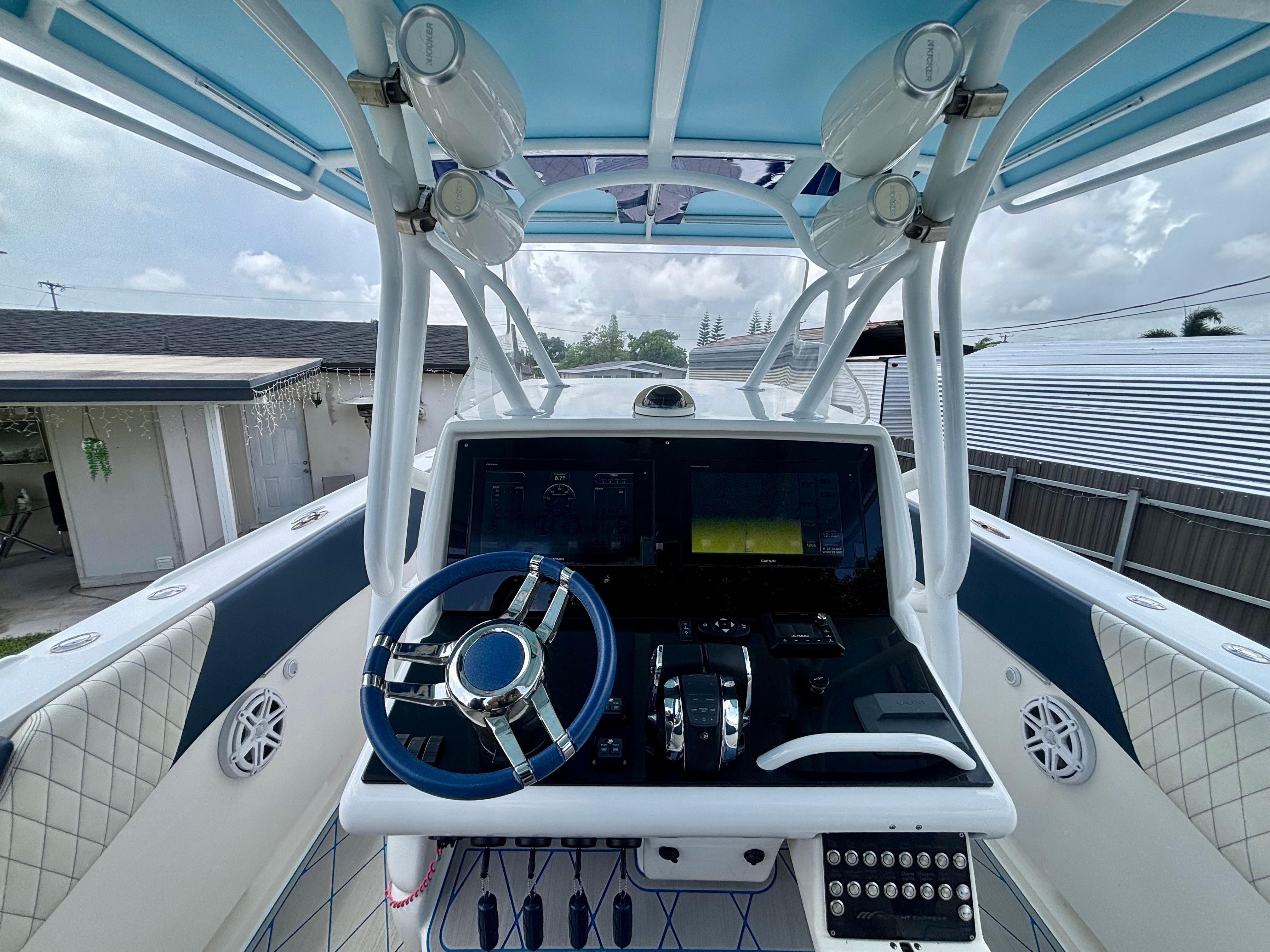 Completely refit in 2021, this 2007 Midnight Express 39 Center Console shines like new with all the upgrades that matter. Fresh paint, new marine decking throughout, modernized wiring and electronics, plus powerful quad Mercury 350 engines with only 30 hours. Midnight Express is renowned for building boats that blend cutting-edge technology with rugged durability and sleek style — making this 39-footer a rare chance to own a premium offshore machine that’s turnkey, meticulously cared for, and ready to take on any adventure.Power & PerformanceQuad Mercury 350sMercury Digital Throttle & Shift Integrated engine data via GarminHelm & ElectronicsDual Garmin GPSMAP touchscreen multifunction displaysGarmin open-array radar (custom-painted blue dome)Garmin VHF marine radioACR URP-102 Point Pad spotlight controlTrim tabs with LED indicatorsCustom Midnight Express switch panel with backlightingJL Audio amplifier housed in forward console bayCustom blue & white steering wheelFeatures & LayoutFull JL Audio sound system with tower speakers and subwoofersBluetooth marine stereo with helm accessLED cockpit, accent, and underwater lightingSpreader lights integrated into the hardtopFlush-mounted deck switches, battery selectors, and breaker panelsBattery ChargerTriple helm bolsters with diamond-stitched upholsteryForward console loungeTransom jump seatsWide walkaround layout with deep gunnels and toe railsDual-tone marine decking with blue accents throughoutOversized hardtop with powder-coated frame and custom-painted blue undersideLarge in-deck storage lockersAft livewellForward anchor locker with stainless chute (windlass-ready)Under-helm tackle drawers and rigging accessFold-down swim ladderStainless cleats, rod holders, grab rails, and cup holders throughout
