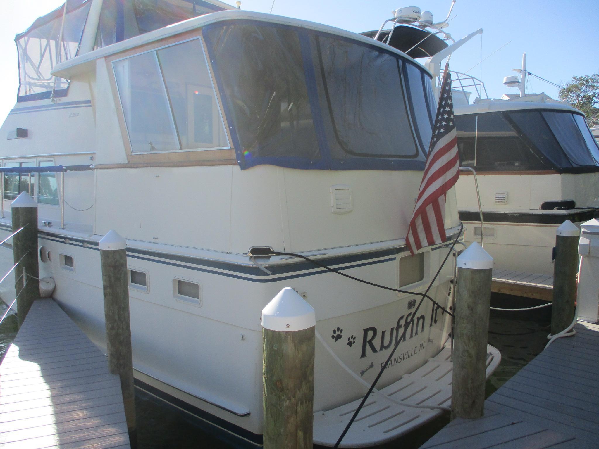 Calling all potential liveaboards! This Motor Yacht is in a quaint marina near the beach and restaurants. The slip can be assumed and the marina welcomes liveaboards. Introducing the 1986 Hatteras 43 Double Cabin Motor Yacht, a stunning vessel that combines elegance with performance. With an overall length of 43.08 feet, this vessel boasts a robust fiberglass hull, ensuring durability and stability on the water. Powered by twin Caterpillar 3208 inboard engines, each delivering 320 horsepower, this yacht promises a thrilling and reliable cruising experience. The direct drive configuration enhances maneuverability, making it perfect for both leisurely outings and adventurous voyages. Inside, the yacht features two well-appointed cabins and two heads, providing ample space for relaxation and comfort. The thoughtful design ensures that you and your guests can enjoy extended stays aboard in style. Whether you're entertaining friends or enjoying a peaceful retreat, the Hatteras 43 Double Cabin is an exceptional choice for those seeking luxury and performance in a classic motor yacht.This is a clean example of a very popular motor yacht. The interior is classic in it's appearance and has updated flooring throughout.. The salon has two L-shaped settees and room for a separate rocking chair. Each cabin has it's own en-suite head with separate stall shower. The guest head forward has access from the salon as well as private access from the cabin. The aft master boasts a centerline queen, plenty of drawers and a hanging locker.Also, there is a stacked Splendide washer and dryer in the master cabin.In the galley, you will find an electric 3 burner cooktop with oven, apartment size refrigerator/freezer, stainless sink and microwave.The flybridge has a full enclosure, 2 captains chairs and a bench seat. Navigation is made easy with Garmin chartplotters- Garmin 1040xs and Garmin GPS Map 4212 (this unit needs a new screen).The aft deck is spacious and has a flat screen TV, wing doors, refrigerator/ice maker and a full enclosure. Anyone looking for a classic motor yacht from a respected builder should consider having a look at this 43 Double Cabin.