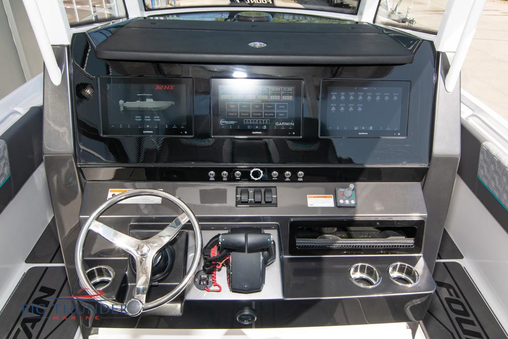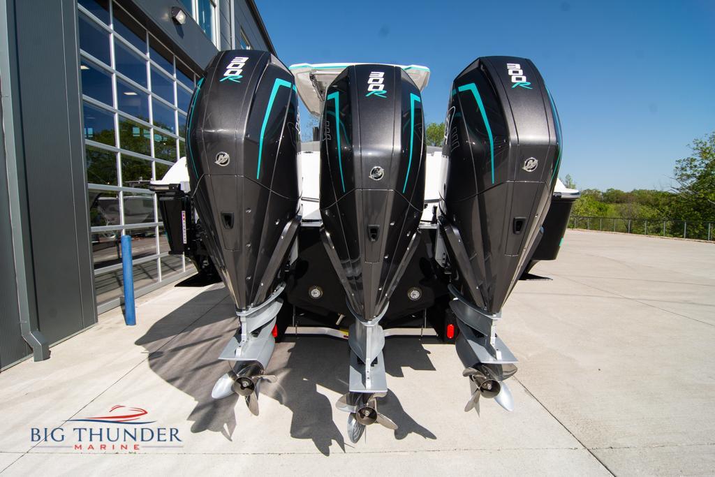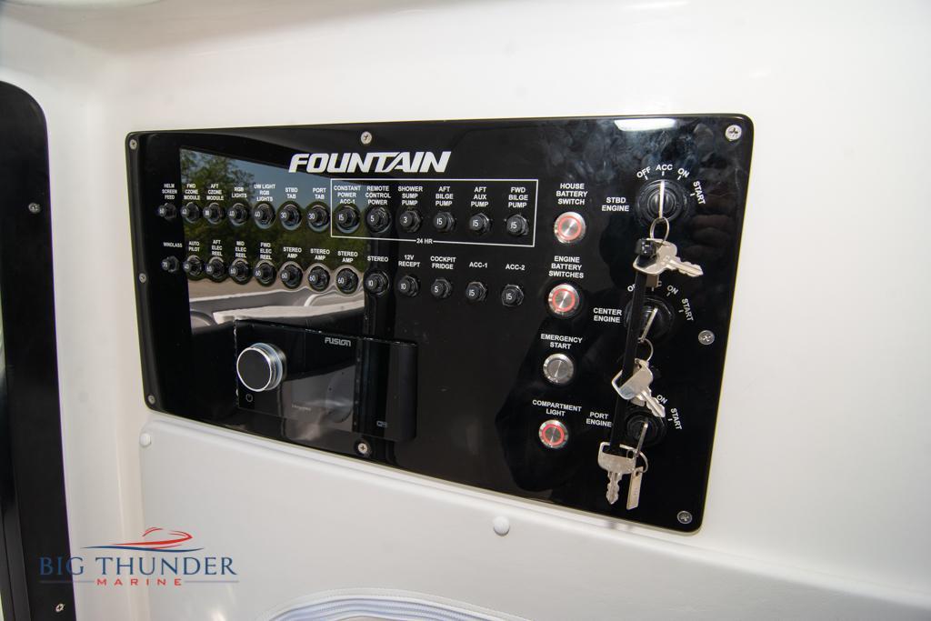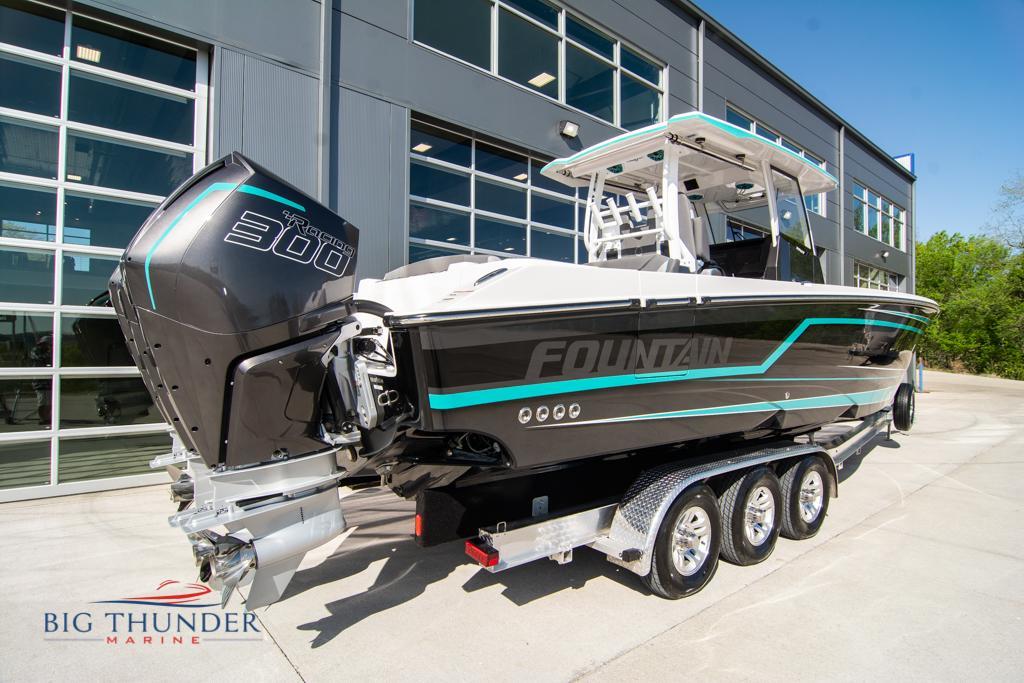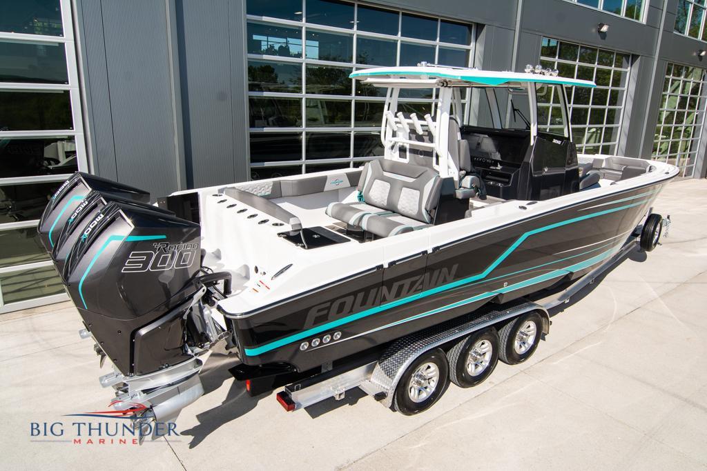 2022 Fountain 32 NX Triple Custom paint matched Mercury 300R Verado's w/ DTS controls. 280 K-Planes. Bow thruster. Engine flushing system. Custom paint & graphics. Premium NX Sport upholstery upgrade. Lumitec Sea Blaze 2 RGB underwater lights. Bow seating w/ upholstered seat backs & bottom w/ storage. Folding transom bench seat. Cockpit side dive door w/ ladder. Electric SureShade. Screened portlight. Triple Garmin 8612 multi-function displays. Airmar B60 transducer. Premium JL Audio w/ Fusion RA770 touch screen entertainment center w/ built in WiFi, (6) 7.7 Spkrs. w/ custom painted grills, (2) 10" subs w/ custom painted grills, (1) 1500W 6 Ch amp & (1) 2250W mono block amp. XM Radio ready option. Wireless phone charging pad. Stainless steel steering wheel w/ "speed knob". Windshield wiper. Enclosed head w/ marine toilet, overboard discharge, fresh water glush & holding tank, fresh water sink. Fresh & raw water wash downs. Transom shower. Anchor windlass w/ thru hull striker plate, polished stainless steel plow, 15' of 5/16" galvanized chain & 150' of 5/8" 8-strand braided rope. Battery charging system. Trailer not included, new trailer quotes available separate. Financing and nationwide delivery also available, all 2010 and newer model year trades considered. Call for more info and demo scheduling.DisclaimerThe Company offers the details of this vessel in good faith but cannot guarantee or warrant the accuracy of this information nor warrant the condition of the vessel. A buyer should instruct his agents, or his surveyors, to investigate such details as the buyer desires validated. This vessel is offered subject to prior sale, price change, or withdrawal without notice.