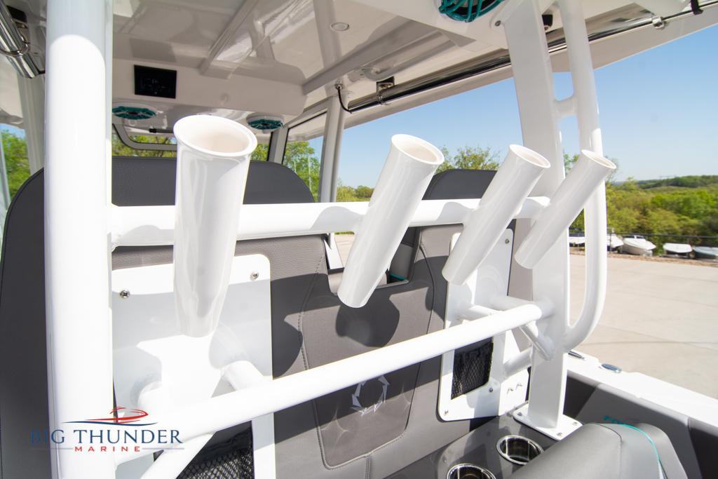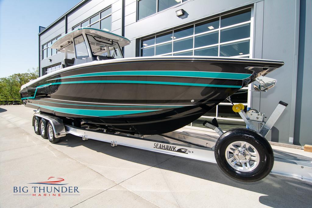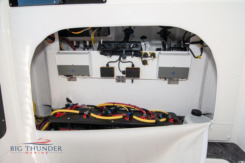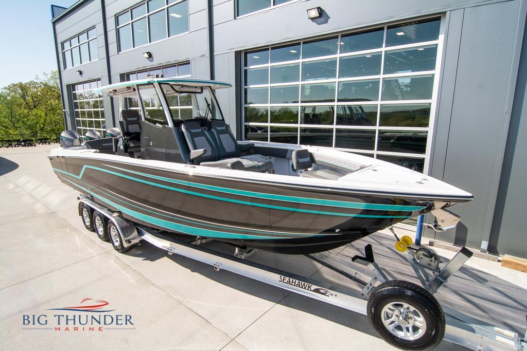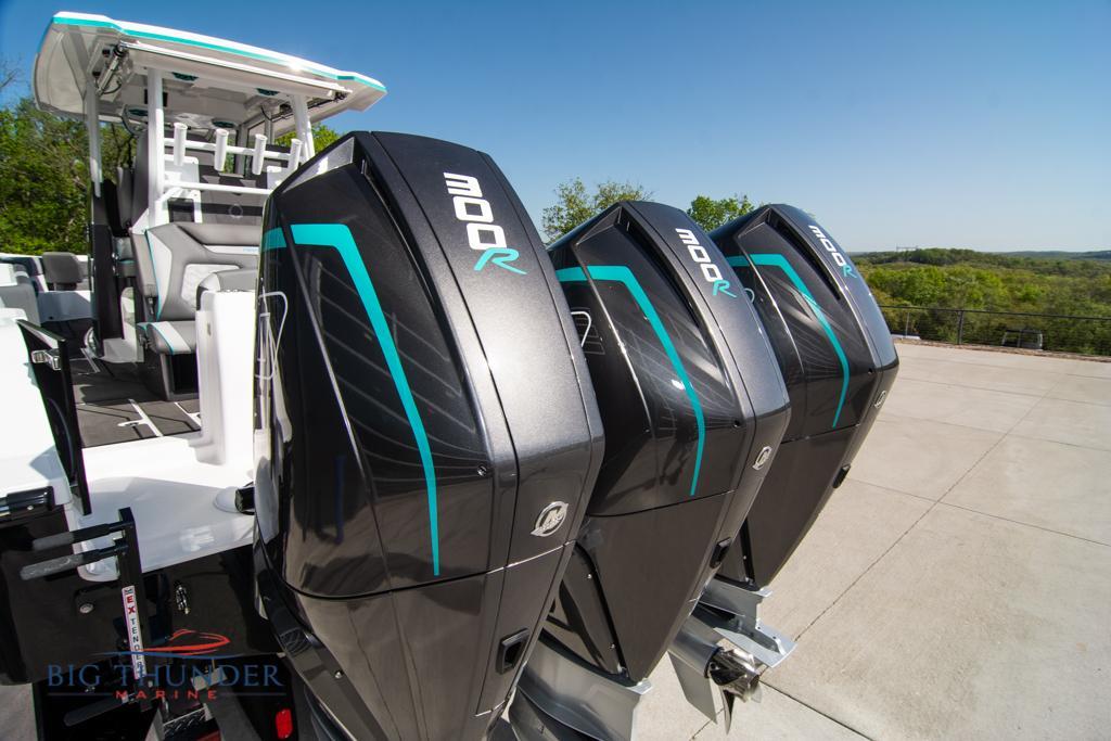 2022 Fountain 32 NX Triple Custom paint matched Mercury 300R Verado's w/ DTS controls. 280 K-Planes. Bow thruster. Engine flushing system. Custom paint & graphics. Premium NX Sport upholstery upgrade. Lumitec Sea Blaze 2 RGB underwater lights. Bow seating w/ upholstered seat backs & bottom w/ storage. Folding transom bench seat. Cockpit side dive door w/ ladder. Electric SureShade. Screened portlight. Triple Garmin 8612 multi-function displays. Airmar B60 transducer. Premium JL Audio w/ Fusion RA770 touch screen entertainment center w/ built in WiFi, (6) 7.7 Spkrs. w/ custom painted grills, (2) 10" subs w/ custom painted grills, (1) 1500W 6 Ch amp & (1) 2250W mono block amp. XM Radio ready option. Wireless phone charging pad. Stainless steel steering wheel w/ "speed knob". Windshield wiper. Enclosed head w/ marine toilet, overboard discharge, fresh water glush & holding tank, fresh water sink. Fresh & raw water wash downs. Transom shower. Anchor windlass w/ thru hull striker plate, polished stainless steel plow, 15' of 5/16" galvanized chain & 150' of 5/8" 8-strand braided rope. Battery charging system. Trailer not included, new trailer quotes available separate. Financing and nationwide delivery also available, all 2010 and newer model year trades considered. Call for more info and demo scheduling.DisclaimerThe Company offers the details of this vessel in good faith but cannot guarantee or warrant the accuracy of this information nor warrant the condition of the vessel. A buyer should instruct his agents, or his surveyors, to investigate such details as the buyer desires validated. This vessel is offered subject to prior sale, price change, or withdrawal without notice.