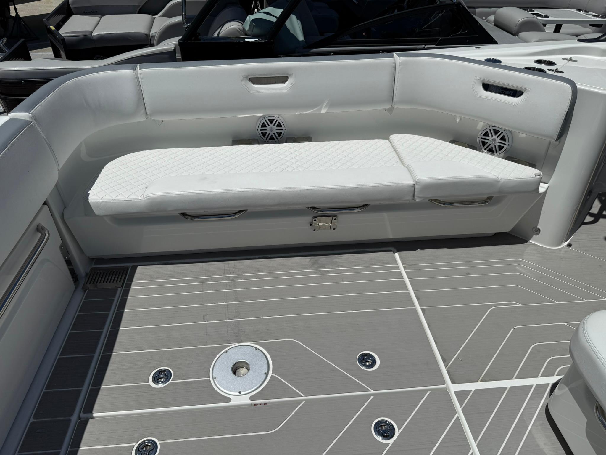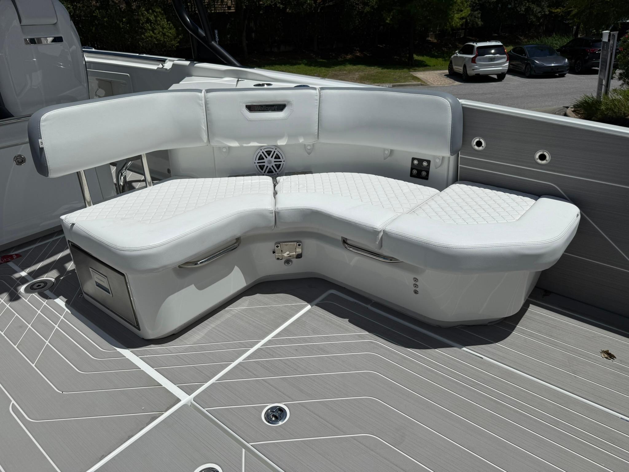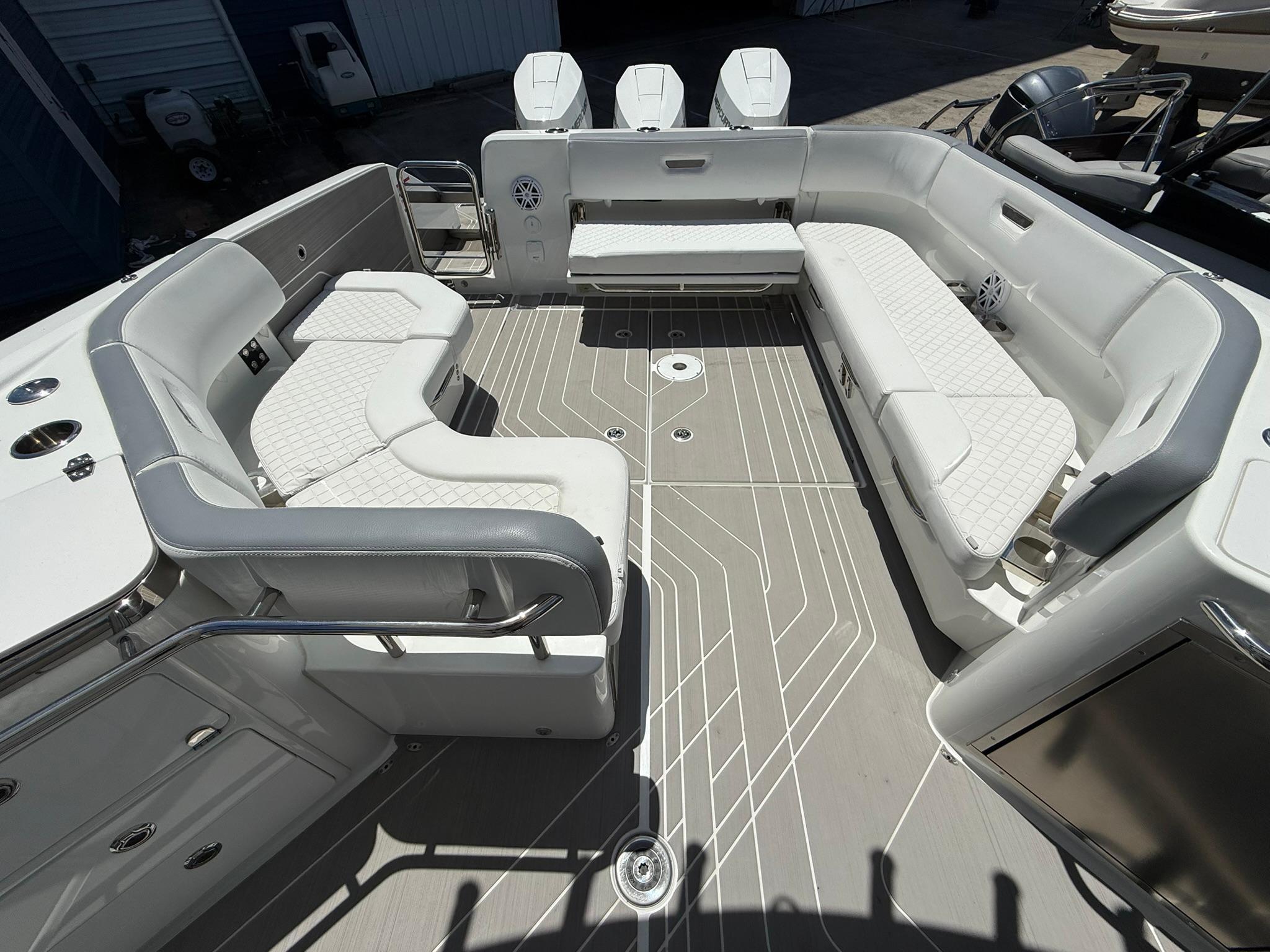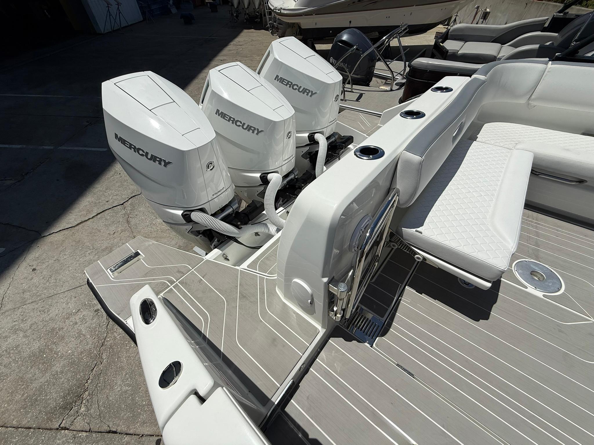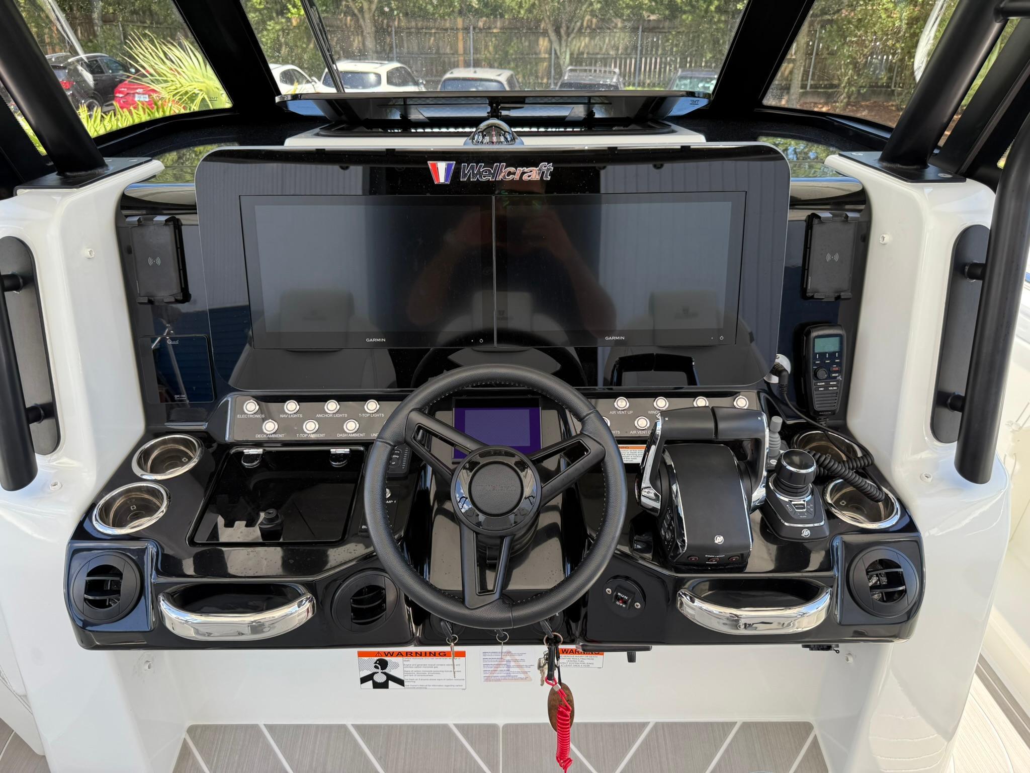 Wellcraft 38 T-Top – Manufacturer Demo with Triple Mercury 350 V10s, Joystick Piloting, SeaKeeper 3 & Lithium System Offshore capability meets luxury design in this Wellcraft 38 T-Top, powered by triple Mercury 350 V10s with Joystick Piloting. Designed for serious adventurers who demand performance, comfort, and cutting-edge technology, this model is fully equipped and will be available soon. It features a SeaKeeper 3 Gyro Stabilizer for exceptional ride stability and an inverter-powered air conditioning system that runs without the need for shore power or a generator—ideal for comfort at anchor, underway, or at the dock. The advanced Lithium Victron power system provides extended runtime and efficient energy management for all onboard systems. Outfitted with top-tier factory packages and premium upgrades, including: Adventure Fishing PackCabin PackMooring & Anchoring PackJL Audio Premium Sound PackTwin 16” Garmin MFDsGarmin Fantom 54 RadarGarmin AIS 800 TransceiverGarmin VHF 315RGB Underwater Lighting (x4)MarineMat DeckingSwim Ladder for Side TerraceForward & Aft SunshadesAnd more This is a rare opportunity to own one of the most exciting new models in the offshore center console segment—fully loaded and available soon. Contact us today for more details or to reserve your private showing.