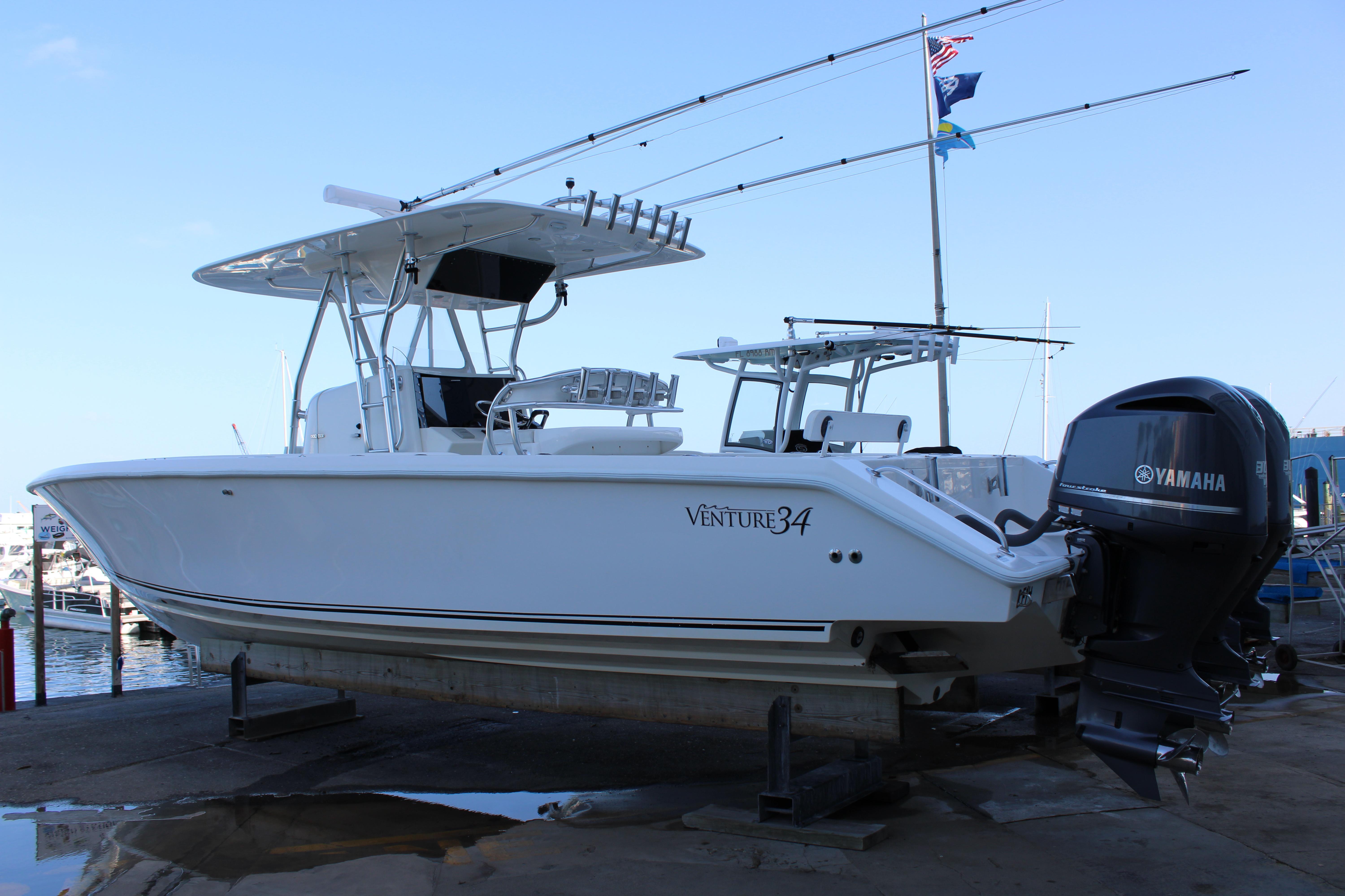 1998 Venture 34 Center Console – Twin Yamaha 300s – Fully UpgradedThis 1998 Venture 34 is exceptionally clean for its age and shows true pride of ownership. The boat has been consistently maintained and recently upgraded throughout. All major systems have been replaced or modernized within the past two years, making it fully turnkey and ready to run.Highlights and Features:Twin Yamaha 300 HP four-stroke outboardsAll onboard systems upgraded or replaced in the last 24 monthsDual Garmin multifunction displays at the helmThird Garmin display in the T-topGarmin autopilotRadarFLIR night vision systemJL Audio stereo with amplifier and subwooferVHF radio and antennasFreshwater and saltwater washdown systemsFiberglass T-top with integrated electronics boxCustom Birdsall leaning postLarge insulated fishboxes and transom livewellProfessionally detailed and waxed regularly