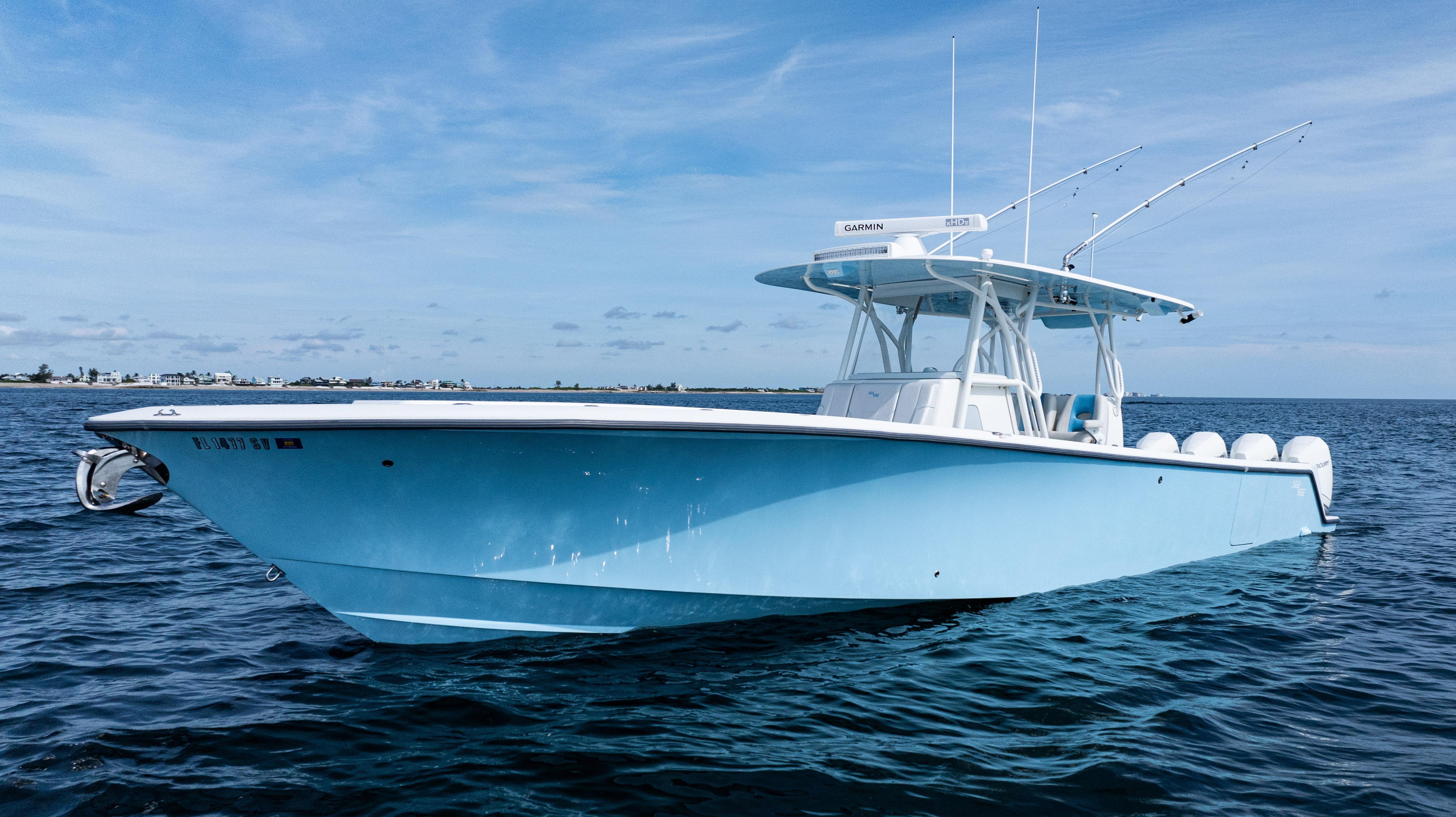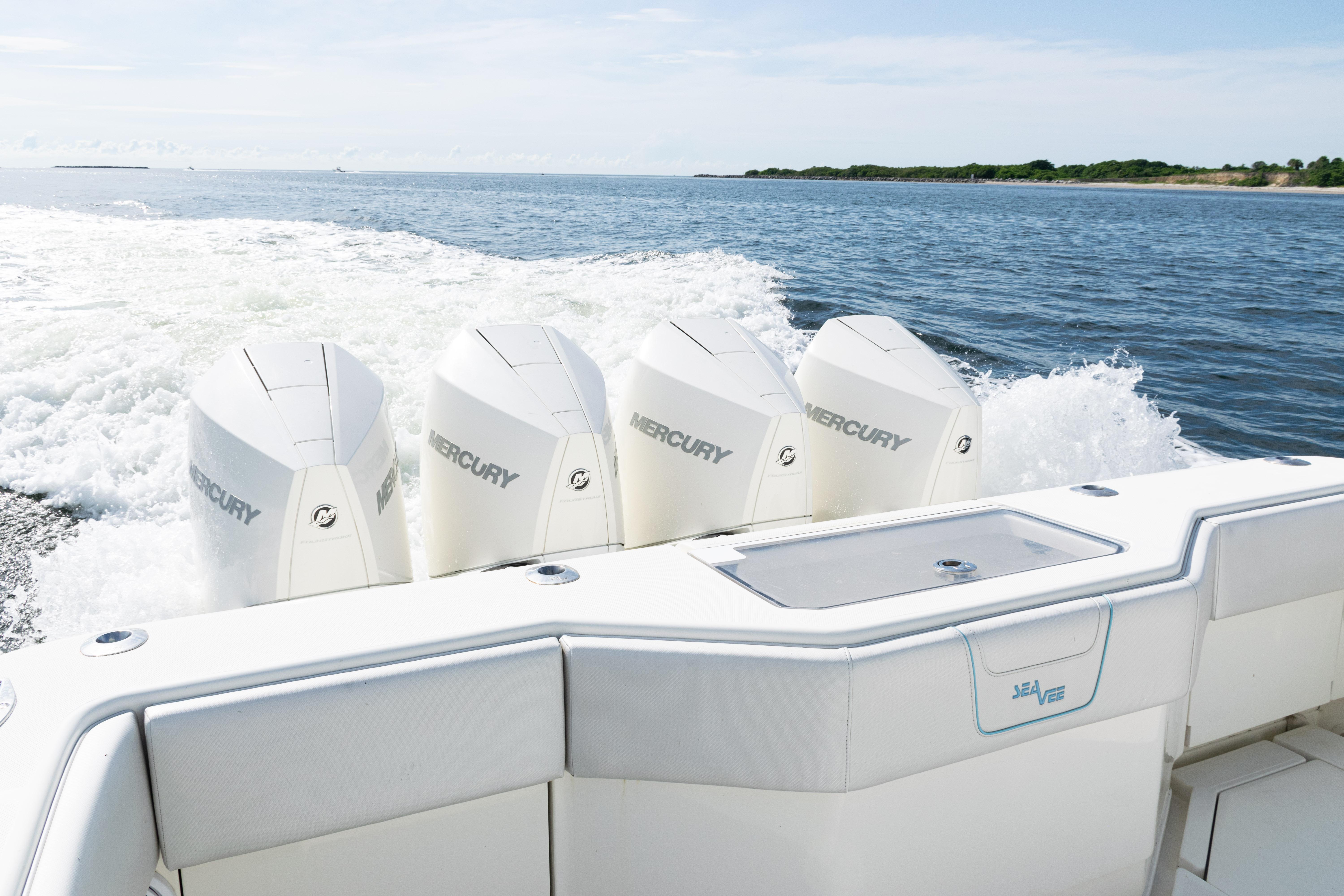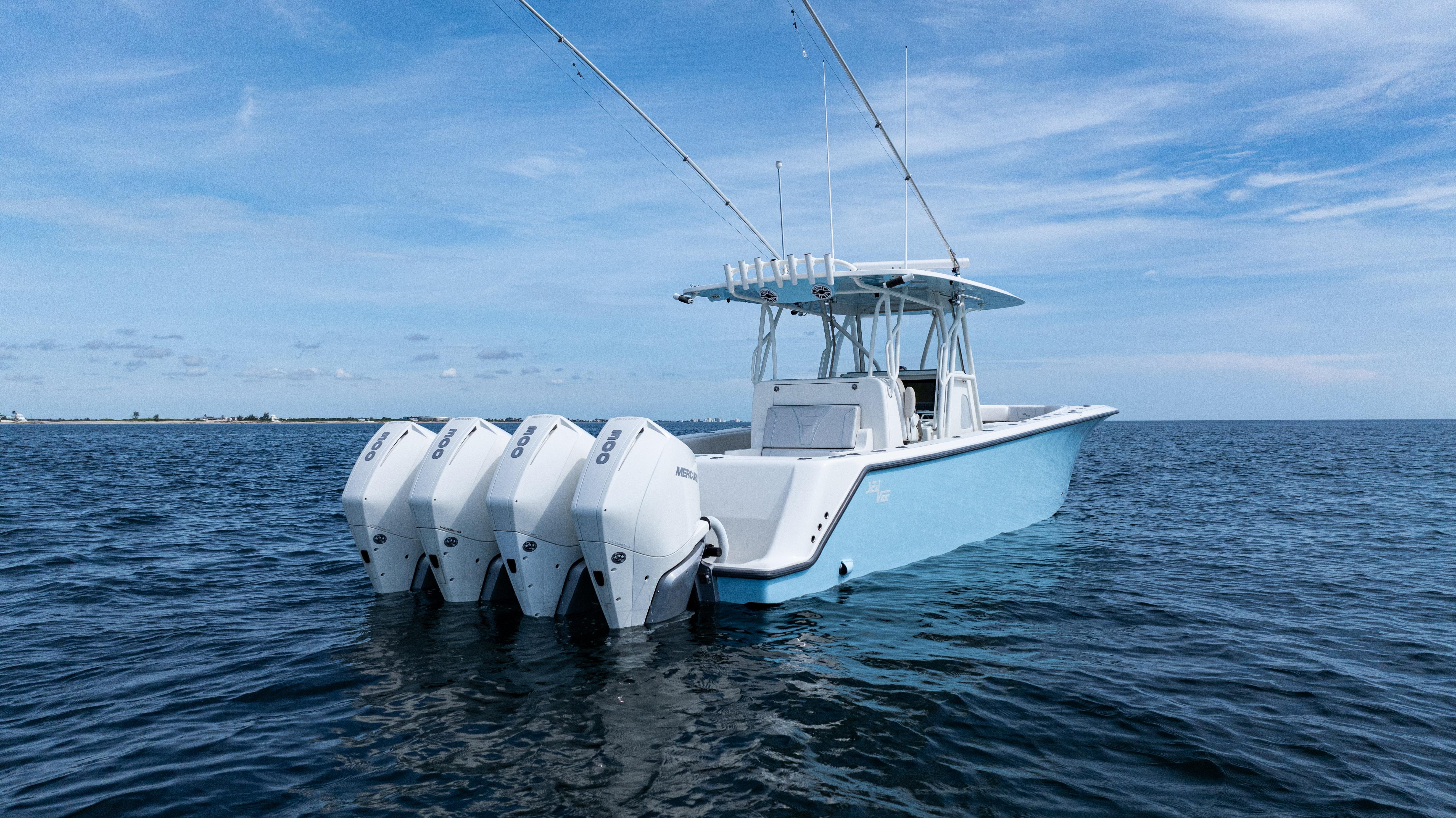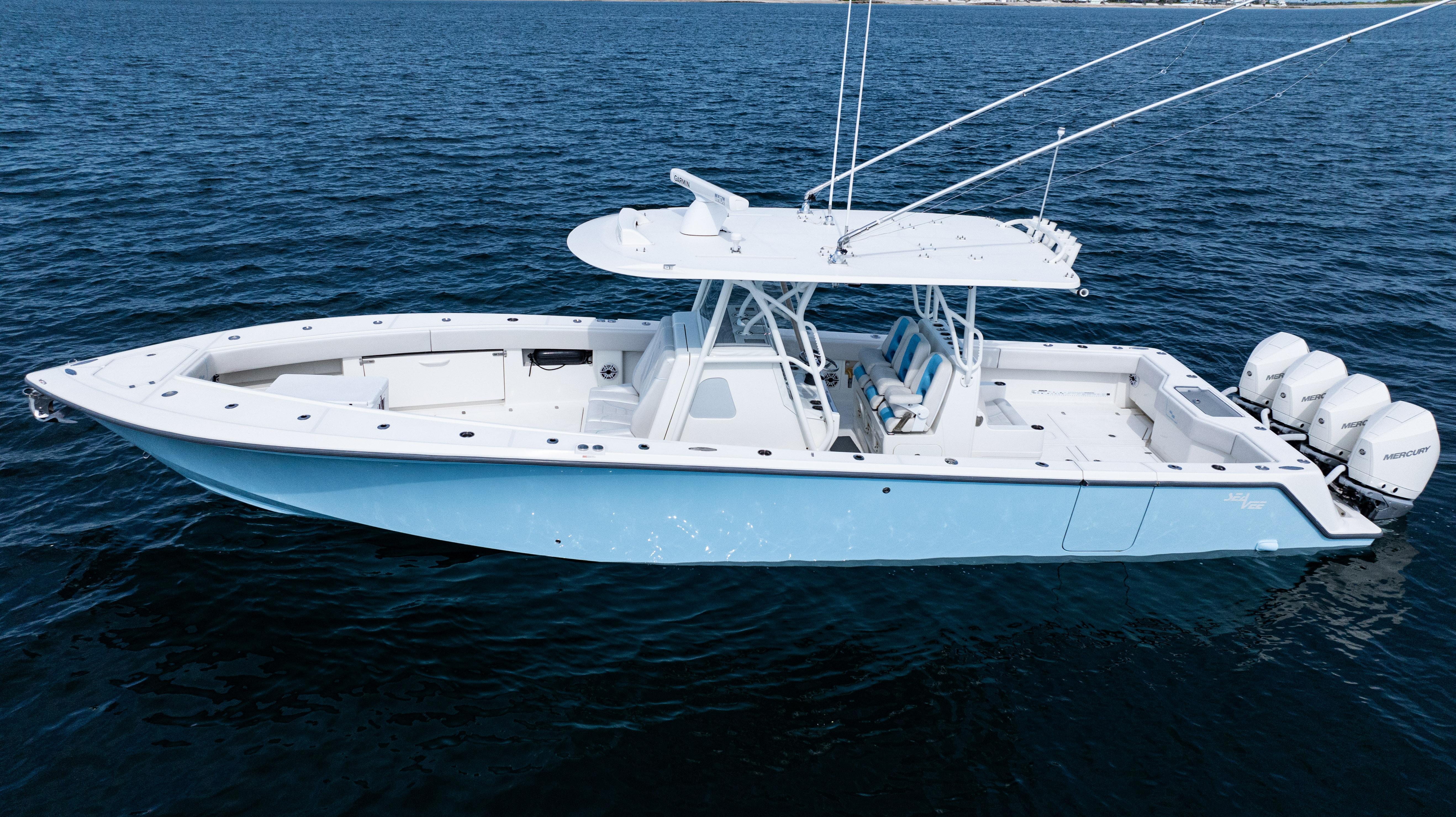 2021 SeaVee 390B – Quad Mercury Power – Lift KeptThis 2021 SeaVee 390B is a highly customized, lift-kept center console built for the serious angler who demands performance, reliability, and comfort. Powered by quad Warm White Fusion Mercury engines, this boat delivers speed and efficiency while offering an incredible array of features for both offshore fishing and luxury cruising. Every detail has been carefully spec’d — from upgraded Garmin electronics and JL Audio sound to custom baitwell systems, dive door, and premium seating.Highlights2021 SeaVee 390B – Lift KeptQuad Warm White Fusion Mercury EnginesCustom Hull Color: Entire Hull Light Blue with matching Hardtop UndersideOversized Powder-Coated T-Top with aft sun-shade, 6 rod holders, molded spreader lights & multicolor LED lightingBow Thruster for precise handlingFully loaded Garmin electronics package with dual 22" displays, radar, autopilot, CHIRP transducer & AISDeluxe Triple Helm Chairs with tackle station + rear-facing mezzanine seat w/ cooler & storageSea Chest Baitwell System with triple 1500 GPH pumps, forward baitwell & extensive rod holder setupJL Audio Premium Sound System with subs, amps, molded pods & Fusion Apollo MS-RA770 head unitCustom SeaVee Dive Door with integrated ladderEZ Anchor Puller Rebel 5 Winch with upgraded rode packageUnderwater Lights, Under-Gunnel Lighting, and Spot Trace GPS Security SystemDeck & SeatingTriple helm chair tackle station with power slidesDeluxe rear-facing mezzanine seat with cooler & tackle storageFold-out aft jump seats (Port & Starboard)Integrated forward seating with optional removable backrests & armrestsCoaming bolsters throughoutFishing EquipmentCustom SS Sea Chest Baitwell System – three 1500 GPH pumpsAdditional forward baitwellSliding door console rod holder + kingfish rod holders (set of 2)15° gunnel-mounted rod holders plus 4 swivel rod holders for electric reels4 electric reel 30A outlets with covers & breakersDual manual pancake teaser reels (anodized aluminum)Tilt shotgun rod holder on hardtop (custom)Rigged outriggers to customer spec (Taco Grand Slam 390 bases, 18’ telescoping poles)Washdowns & PlumbingFreshwater washdown with hose, nozzle & console sink/showerAdditional pull-out freshwater shower headFreshwater washdown in windlass compartmentSaltwater washdown with coiled hose (forward shelf)Manual freshwater flush for outboardsElectric head with holding tank & maceratorFishbox pump-out strainer system (dual box) with Y-valveElectronics & Navigation(2) Garmin 8622 GPS 22” displays with card readerGarmin 1204 X HD Open Array Radar (12kW, 4’)Garmin GSD-26 Network Sounder ModuleGarmin GHC-20 Autopilot with shadow drive & pumpGarmin GXM54 Marine Weather/Audio Satellite ReceiverGarmin AIS 800 Transmit/ReceiveGarmin GMS-10 Port ExpanderSimrad B275LHW 1kW CHIRP Thru-Hull TransducerICOM M400BB VHF Radio with 8’ antenna & mountPoly-Planar external VHF speakerSpot Trace GPS Security SystemLighting & ComfortUnder-gunnel lighting (blue)(3) Lumitec SeaBlaze X2 underwater lights (white/blue)Rigid Marine 30” LED Light Bar (fiberglass molded cover)Oversized hardtop with molded speaker pod and integrated JL speakersSeadek organizer (light grey)Audio & EntertainmentJL Audio M6 system:(3) pairs 7.7” coaxial(1) pair 8.8” coaxial(1) pair 10” subsJL Audio 400w, 600w, and 800w amplifiersFusion Apollo MS-RA770 entertainment system w/ AM/FM antennaElectrical & PowerQuad engine battery charger w/ galvanic isolator, 30A inlet, triple bank w/ echo chargeAdditional AGM batteryDual USB charger socketsOther NotablesCustom cutting board for transom rod holdersKing board dividers for rod storageCustom tackle storage + removable trash bin in leaning postPull-out divider for forward fishboxAft-facing Garmin VIRB cameraThis lift-kept 2021 SeaVee 390B is turnkey, tournament-ready, and built to the highest standards. It represents an incredible opportunity to own a fully loaded 39’ center console without the wait.