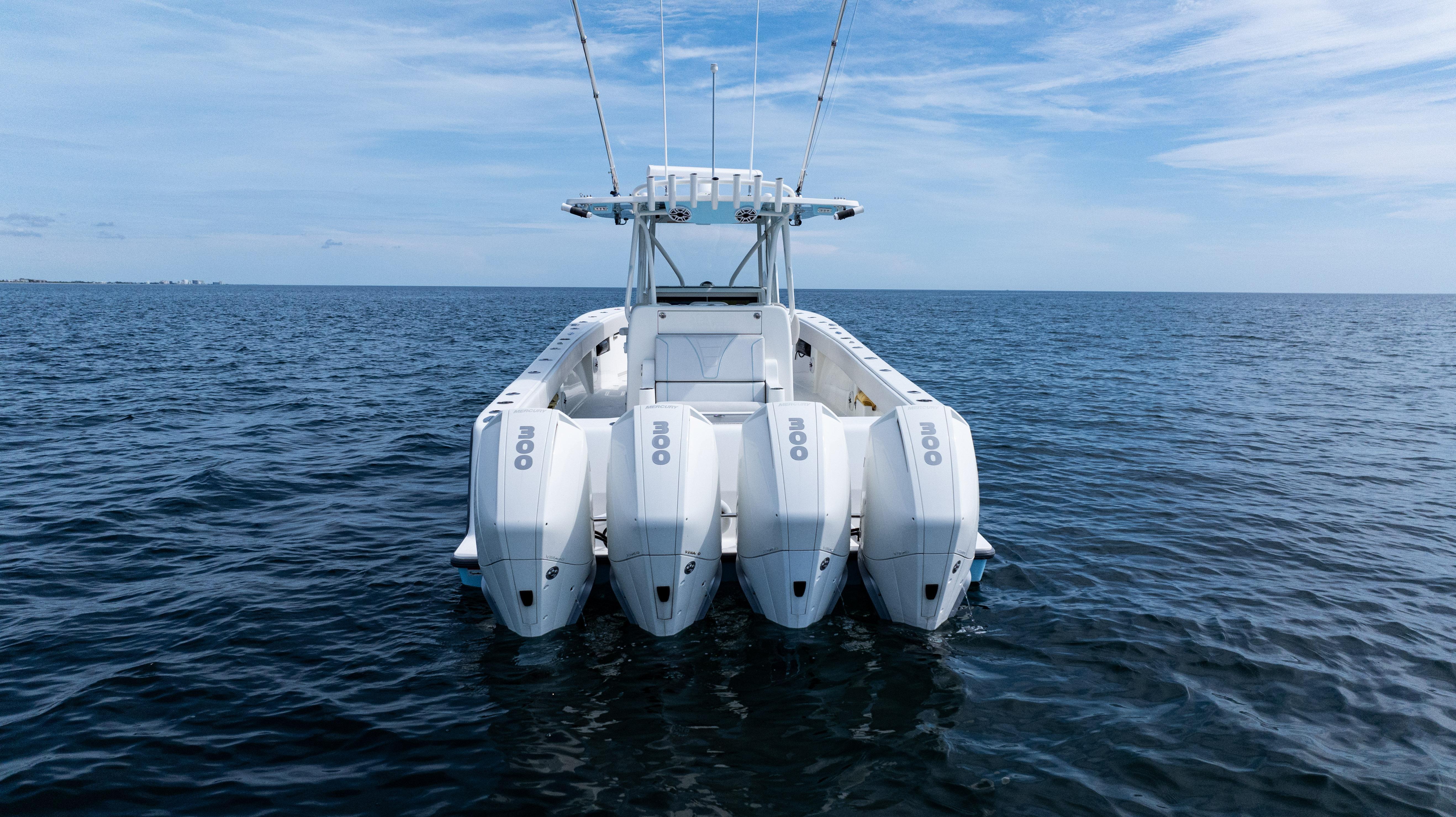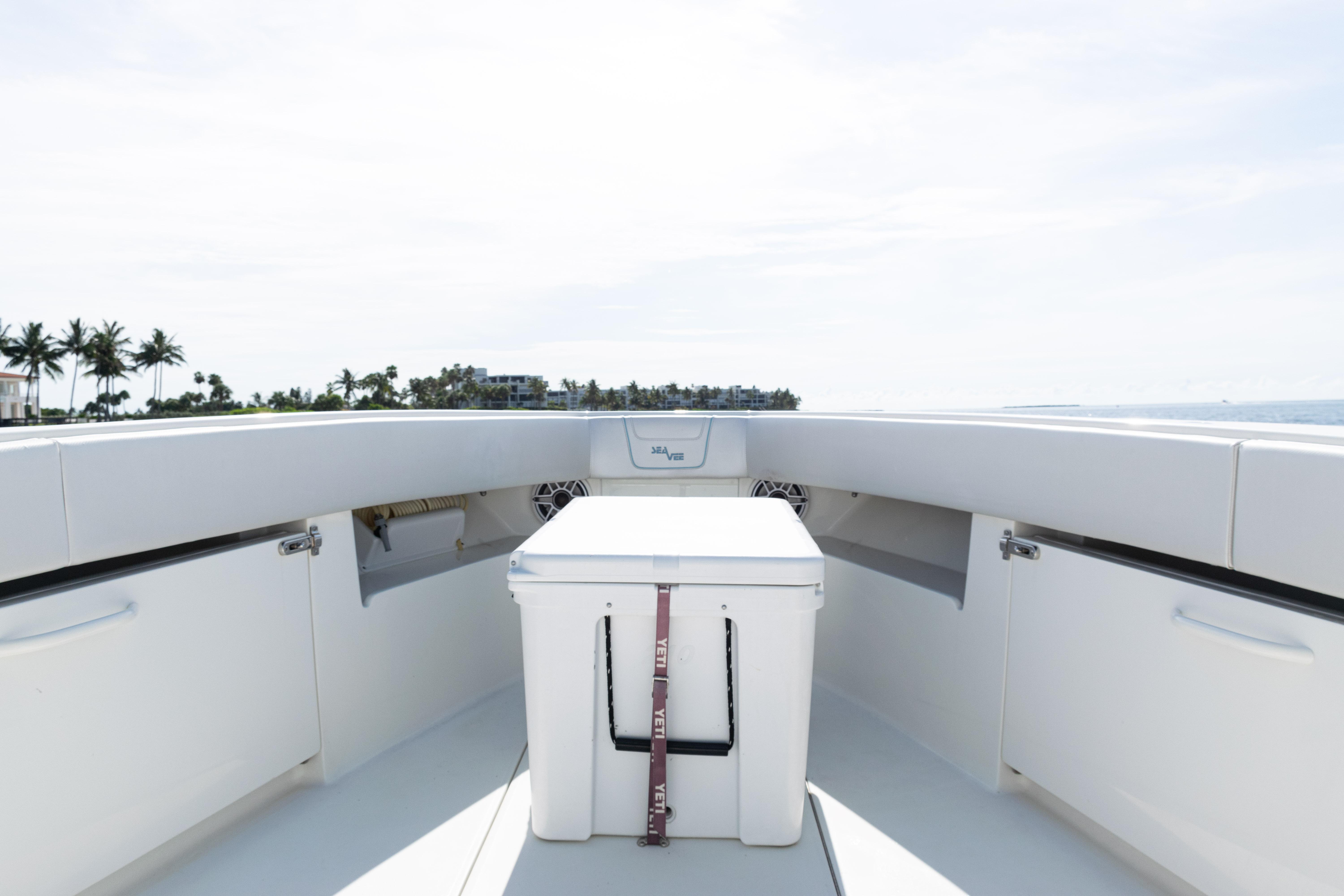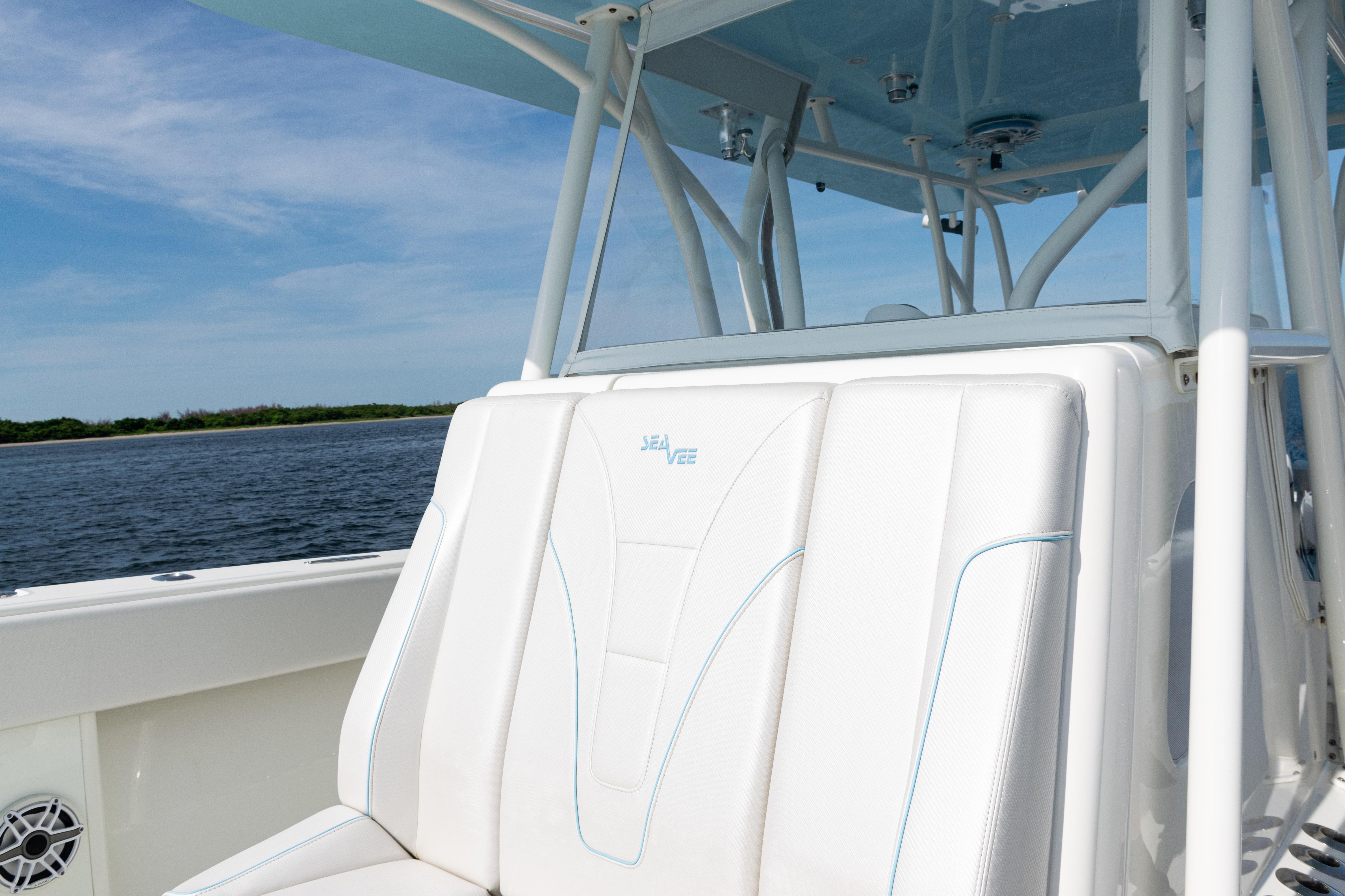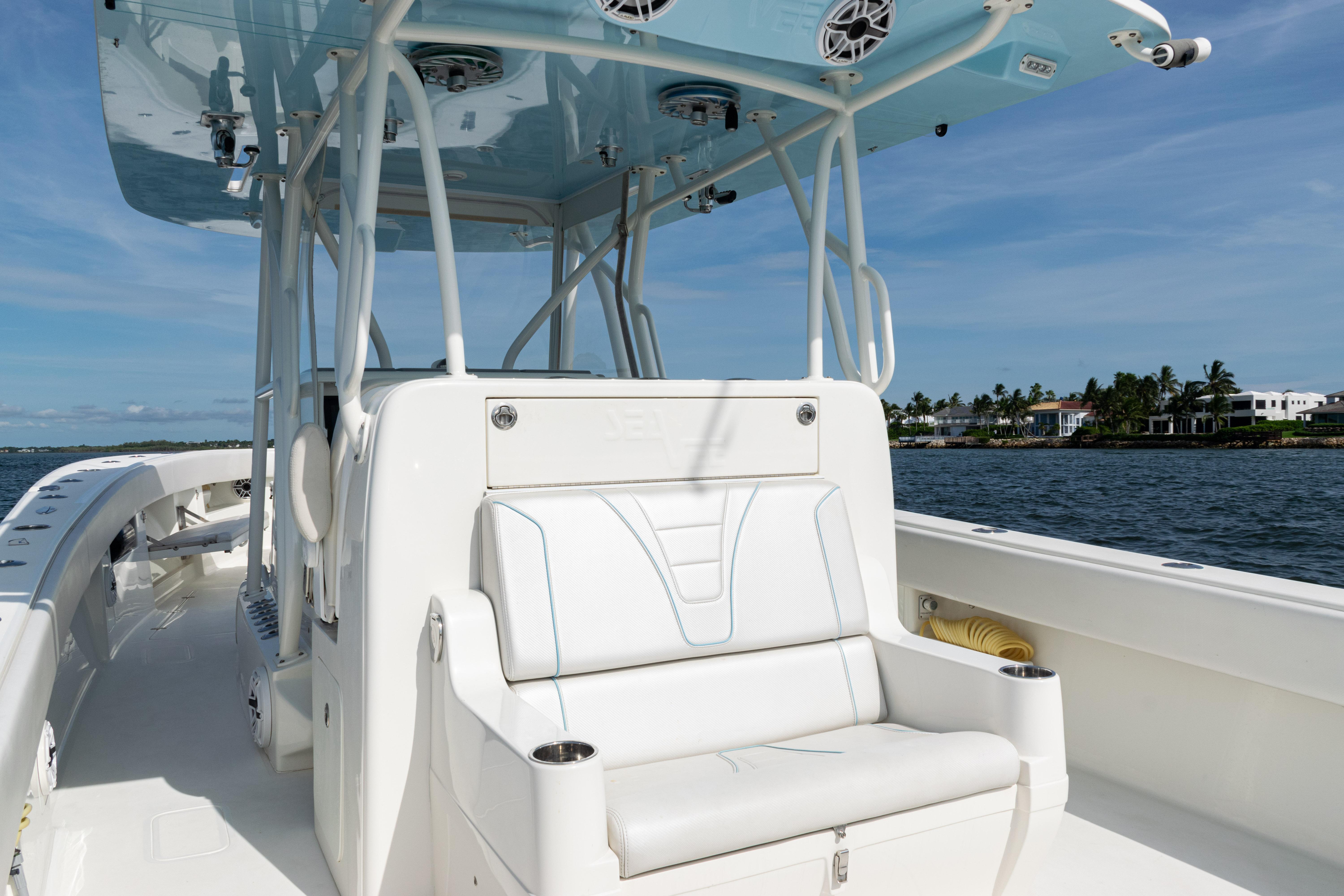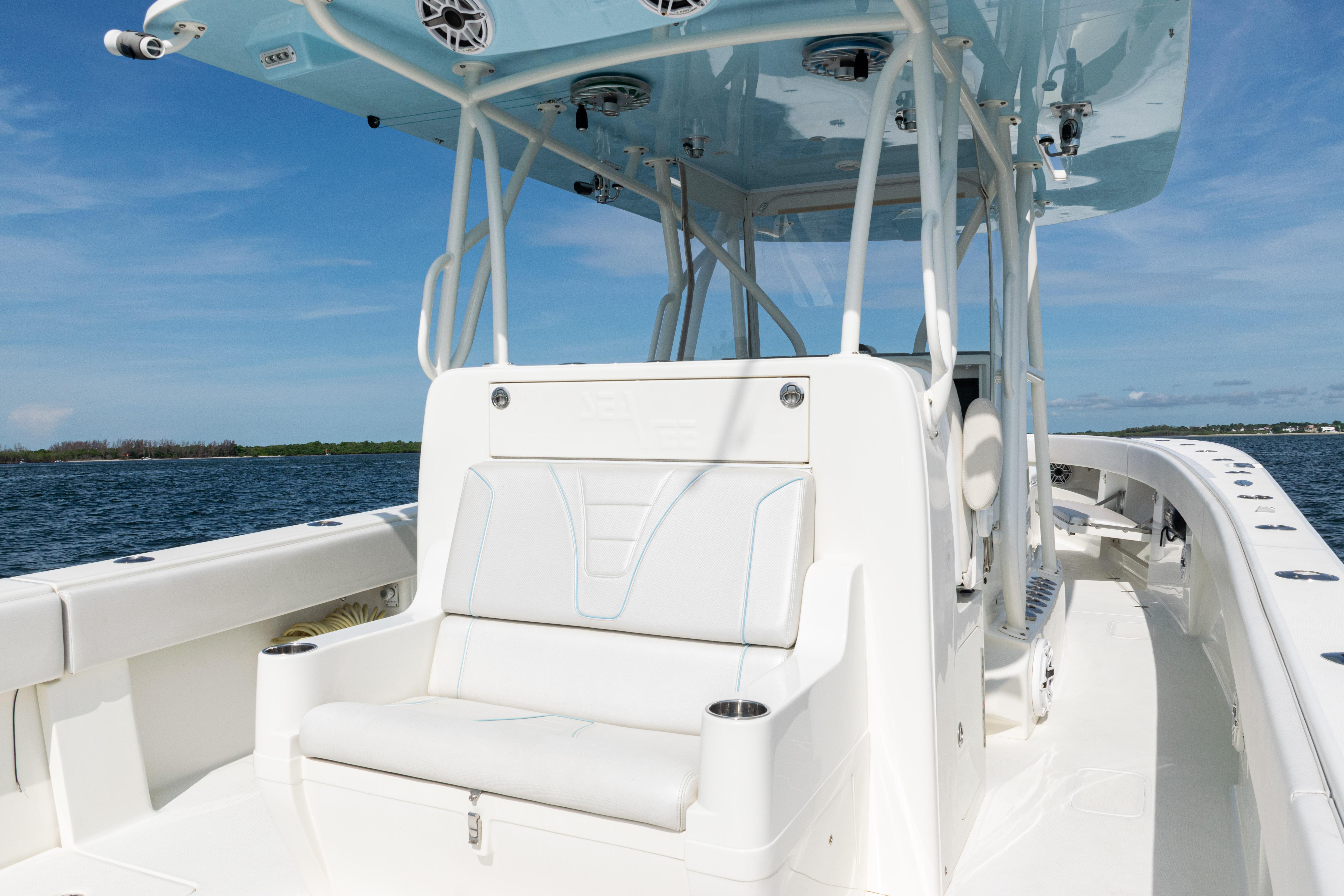 2021 SeaVee 390B – Quad Mercury Power – Lift KeptThis 2021 SeaVee 390B is a highly customized, lift-kept center console built for the serious angler who demands performance, reliability, and comfort. Powered by quad Warm White Fusion Mercury engines, this boat delivers speed and efficiency while offering an incredible array of features for both offshore fishing and luxury cruising. Every detail has been carefully spec’d — from upgraded Garmin electronics and JL Audio sound to custom baitwell systems, dive door, and premium seating.Highlights2021 SeaVee 390B – Lift KeptQuad Warm White Fusion Mercury EnginesCustom Hull Color: Entire Hull Light Blue with matching Hardtop UndersideOversized Powder-Coated T-Top with aft sun-shade, 6 rod holders, molded spreader lights & multicolor LED lightingBow Thruster for precise handlingFully loaded Garmin electronics package with dual 22" displays, radar, autopilot, CHIRP transducer & AISDeluxe Triple Helm Chairs with tackle station + rear-facing mezzanine seat w/ cooler & storageSea Chest Baitwell System with triple 1500 GPH pumps, forward baitwell & extensive rod holder setupJL Audio Premium Sound System with subs, amps, molded pods & Fusion Apollo MS-RA770 head unitCustom SeaVee Dive Door with integrated ladderEZ Anchor Puller Rebel 5 Winch with upgraded rode packageUnderwater Lights, Under-Gunnel Lighting, and Spot Trace GPS Security SystemDeck & SeatingTriple helm chair tackle station with power slidesDeluxe rear-facing mezzanine seat with cooler & tackle storageFold-out aft jump seats (Port & Starboard)Integrated forward seating with optional removable backrests & armrestsCoaming bolsters throughoutFishing EquipmentCustom SS Sea Chest Baitwell System – three 1500 GPH pumpsAdditional forward baitwellSliding door console rod holder + kingfish rod holders (set of 2)15° gunnel-mounted rod holders plus 4 swivel rod holders for electric reels4 electric reel 30A outlets with covers & breakersDual manual pancake teaser reels (anodized aluminum)Tilt shotgun rod holder on hardtop (custom)Rigged outriggers to customer spec (Taco Grand Slam 390 bases, 18’ telescoping poles)Washdowns & PlumbingFreshwater washdown with hose, nozzle & console sink/showerAdditional pull-out freshwater shower headFreshwater washdown in windlass compartmentSaltwater washdown with coiled hose (forward shelf)Manual freshwater flush for outboardsElectric head with holding tank & maceratorFishbox pump-out strainer system (dual box) with Y-valveElectronics & Navigation(2) Garmin 8622 GPS 22” displays with card readerGarmin 1204 X HD Open Array Radar (12kW, 4’)Garmin GSD-26 Network Sounder ModuleGarmin GHC-20 Autopilot with shadow drive & pumpGarmin GXM54 Marine Weather/Audio Satellite ReceiverGarmin AIS 800 Transmit/ReceiveGarmin GMS-10 Port ExpanderSimrad B275LHW 1kW CHIRP Thru-Hull TransducerICOM M400BB VHF Radio with 8’ antenna & mountPoly-Planar external VHF speakerSpot Trace GPS Security SystemLighting & ComfortUnder-gunnel lighting (blue)(3) Lumitec SeaBlaze X2 underwater lights (white/blue)Rigid Marine 30” LED Light Bar (fiberglass molded cover)Oversized hardtop with molded speaker pod and integrated JL speakersSeadek organizer (light grey)Audio & EntertainmentJL Audio M6 system:(3) pairs 7.7” coaxial(1) pair 8.8” coaxial(1) pair 10” subsJL Audio 400w, 600w, and 800w amplifiersFusion Apollo MS-RA770 entertainment system w/ AM/FM antennaElectrical & PowerQuad engine battery charger w/ galvanic isolator, 30A inlet, triple bank w/ echo chargeAdditional AGM batteryDual USB charger socketsOther NotablesCustom cutting board for transom rod holdersKing board dividers for rod storageCustom tackle storage + removable trash bin in leaning postPull-out divider for forward fishboxAft-facing Garmin VIRB cameraThis lift-kept 2021 SeaVee 390B is turnkey, tournament-ready, and built to the highest standards. It represents an incredible opportunity to own a fully loaded 39’ center console without the wait.