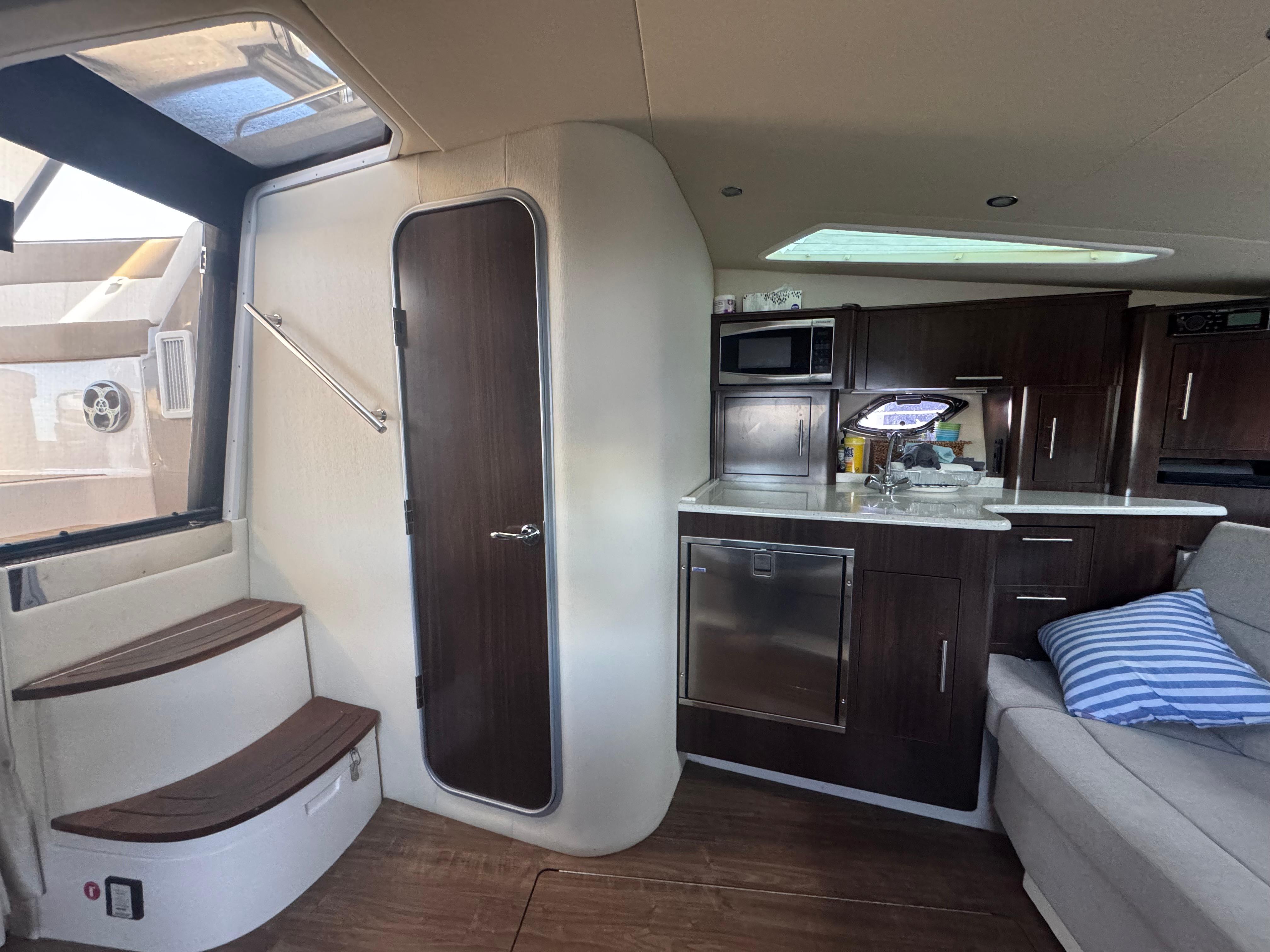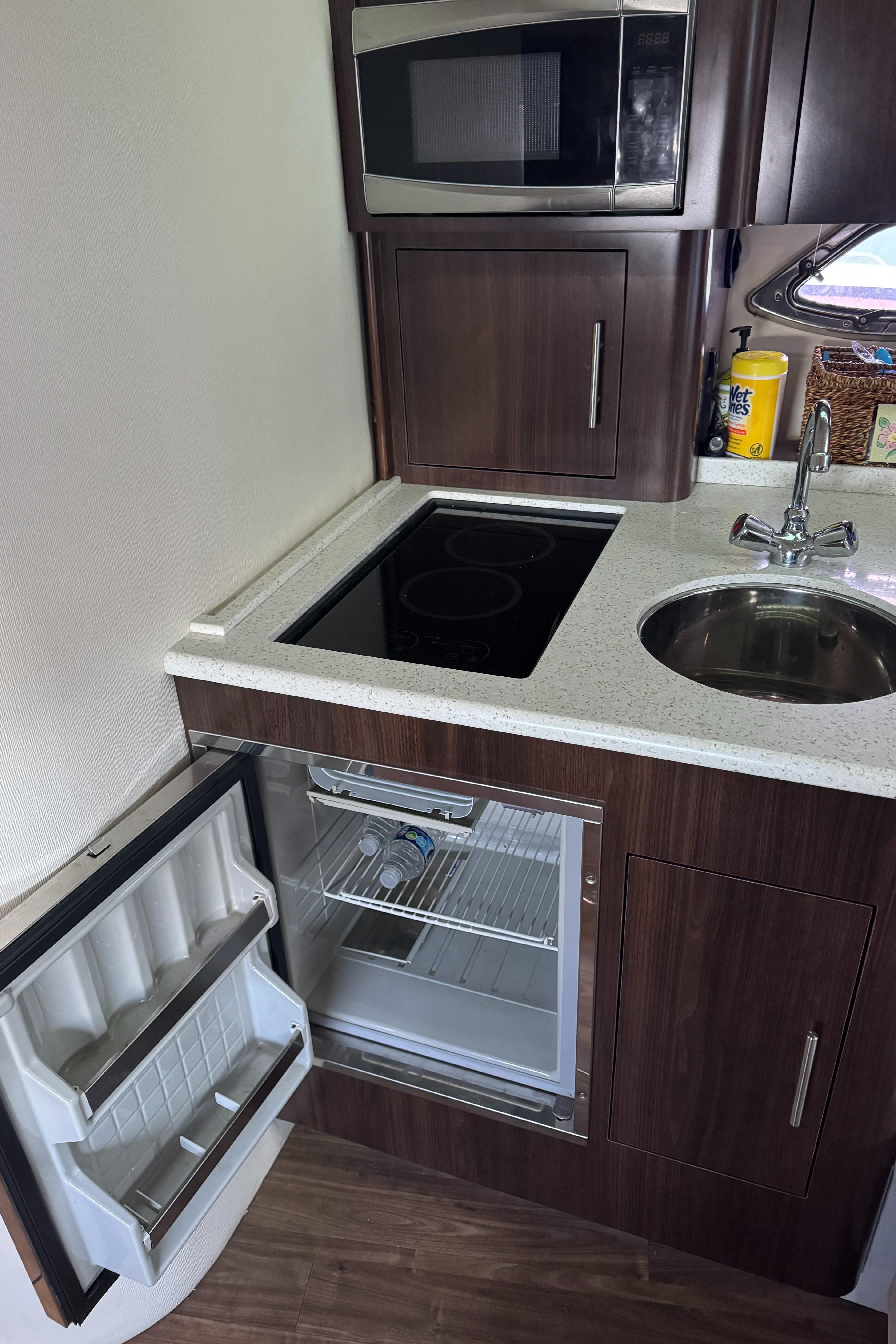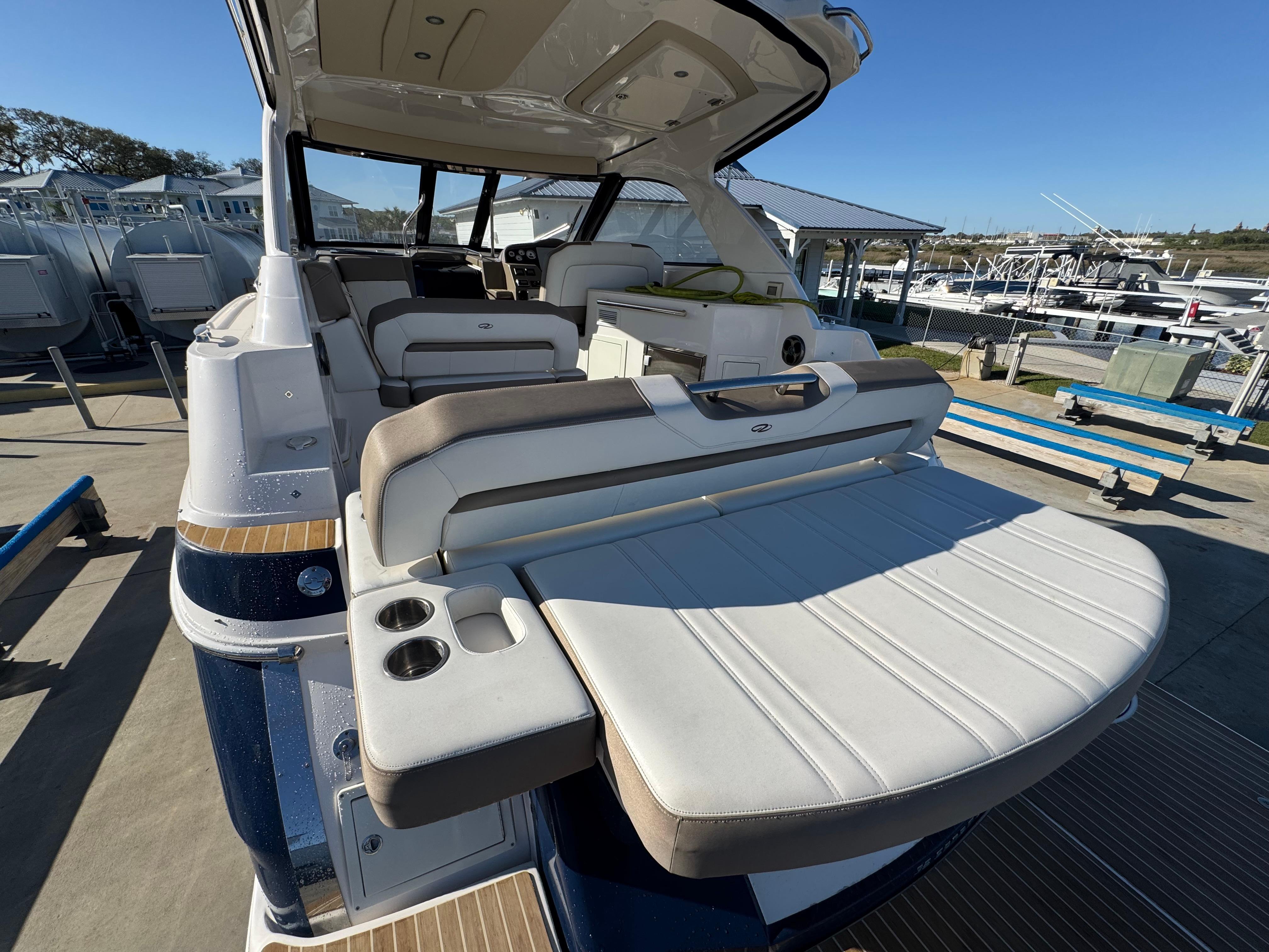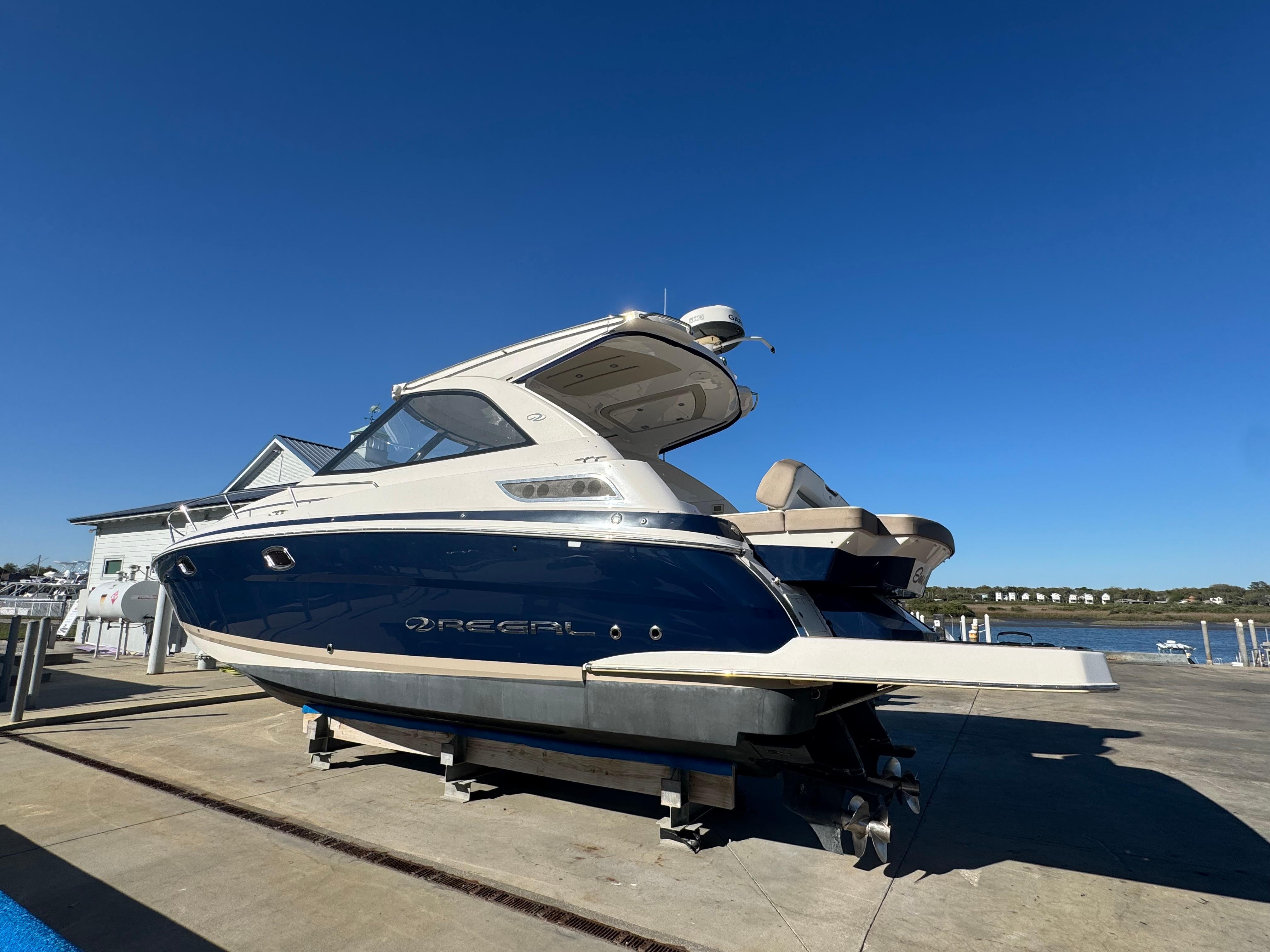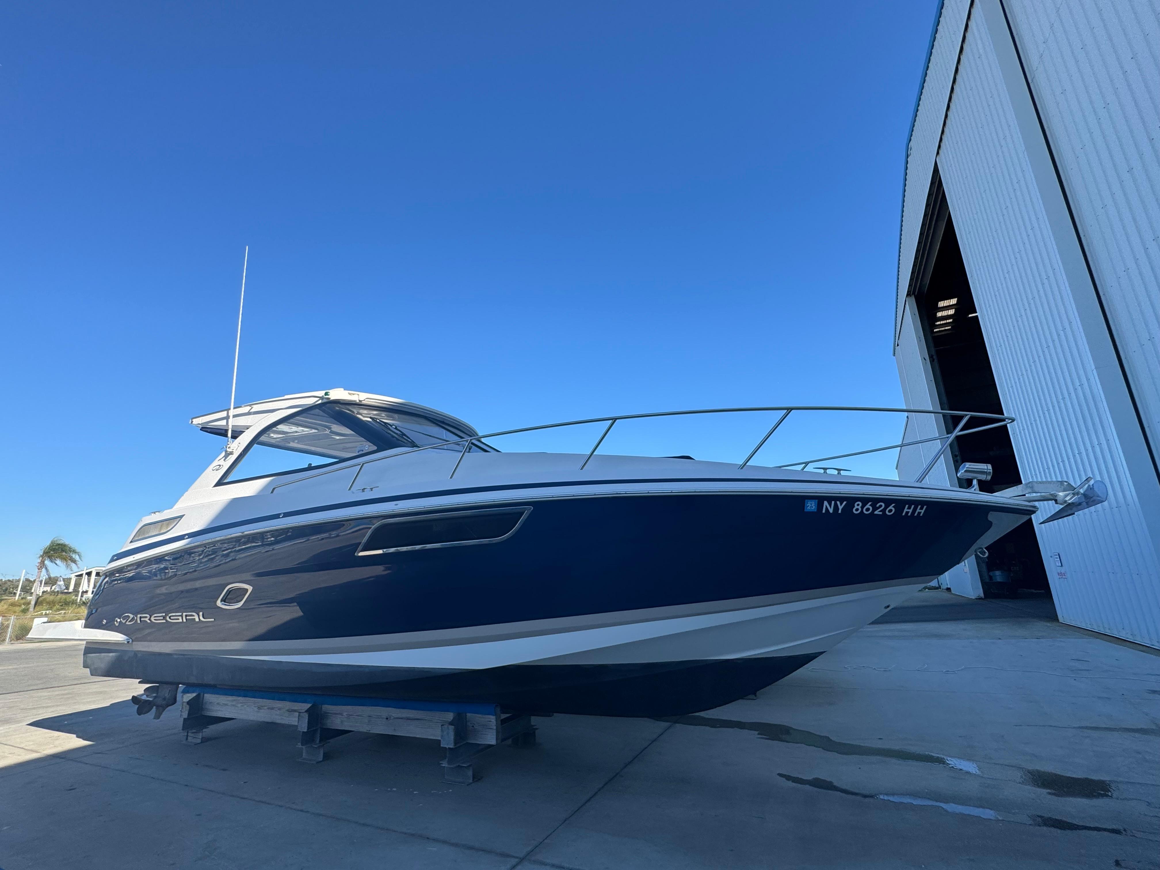The Regal 35 Sport Coupe features a length of 36' 10", a beam of 11' 4", and a dry weight of 13,300 lbs, with a fuel capacity of 158 gallons and a water capacity of 50gallons. The aft section of the L-shaped lounger also has a seat back that flips fore and aft. This will allow one to enjoy company at the forward end of the cockpit or the aft endThe full-beam, convertible hardtop electrically slides back from the windshield frame to reveal an enormous opening. Extend the cockpit 11” with just the push of a button.Featuring the largest sunlounge in its class, the multi-position backrest will keep four sun-bathers relaxed and tan. A relaxing living space by day becomes spacious overnight with the push of a button. Convert the salon sofa into a queen size berth perfect for ending the day’s adventure.Below deck, immerse yourself in leather, hardwoods, and great audio with our Fusion Marine Sound. The 35 Sport Coupe also showcases a best in class stereo system featuring a waterproof internal smart phone docking station, extra large LED display, AM/FM radio & Bluetooth.The height of the hardtop gave the bridge an airy feeling and our boat also featured Regal's optional cool cockpit ventilation system, which kept things comfortable in the hot and humid summer weather The stern got a lot of design attention. For a boat of this size, Regal's 35 Sport Coupe has a remarkably large swim platform for easy boarding and social space The stern got a lot of design attention. For a boat of this size, Regal's 35 Sport Coupe has a remarkably large swim platform for easy boarding and social space Here's a more detailed breakdown of the Regal 35 Sport Coupe specs: Dimensions & Weight: Length Overall: 36' 10" (11.23 meters) Beam: 11' 4" (3.45 meters) Dry Weight: Approximately 13,300 lbs (6033 kg) Draft:Drive Up/High Trim: 22 inches (0.5 meters) Drive Down: 35 inches (0.9 meters) Deadrise: 19 degrees Bridge Clearance: 9' 8" (2.95 meters) Tanks & Capacities: Fuel Capacity: 158 gallons (598 liters) Fresh Water Capacity: 50 gallons (189 liters) Waste Tank Capacity: 30 gallons (114 liters) Other Specifications: Maximum Capacity Persons: Yacht Certified (CE 9) Cockpit Depth - Helm: 36 inches (0.9 meters) Hull Material: GRP (Glass Reinforced Plastic) Superstructure: GRP Accommodation:Guests: 4 (Optional 2) Berth Details: 1 x Convertible Max Persons on-board: 9 Total Cabins: 1 Twin convert cabin: 1 Shared Bathroom: 1 Guest heads: 1 Engines:Twin Volvo Penta V8 380 6.2 Liter Joystick Docking System Speed:Max Speed: 44 Knots Cruising Speed: 26 Knots Max Range: 321nm @23 knots