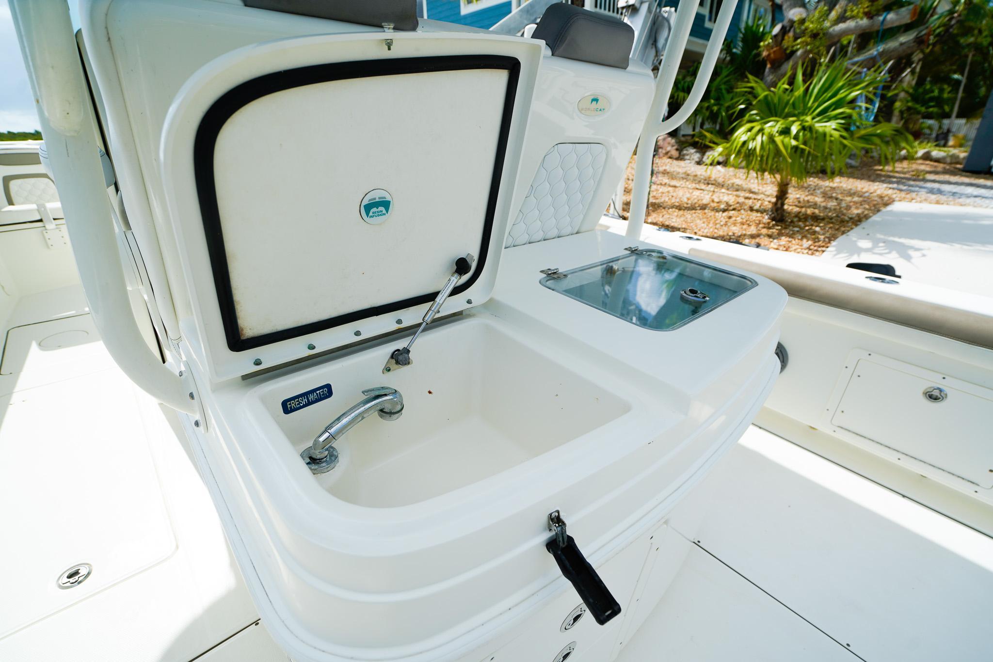 - Tackle center raw water washdown and storage drawers
