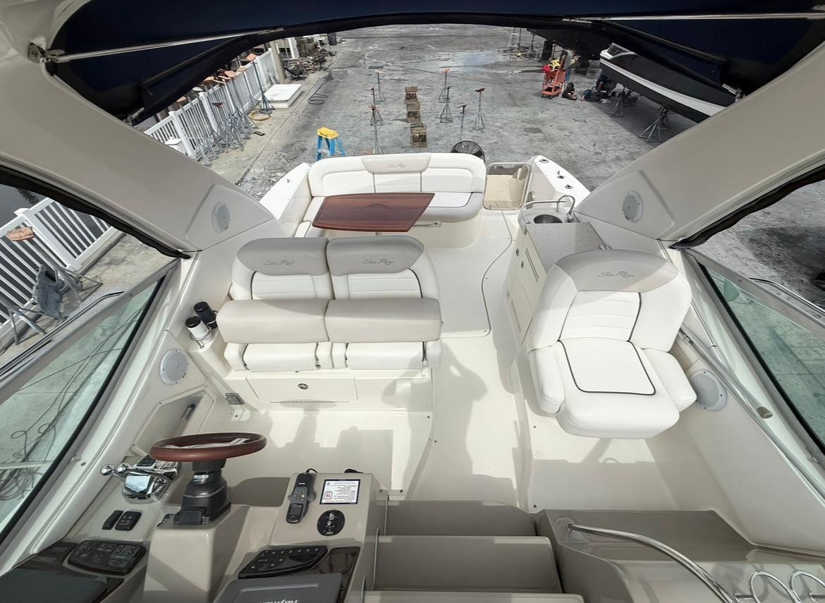 FOR SALE | Sea Ray 350 SundancerFinancing Available | Trades AcceptedThis 2011 Sea Ray 350 Sundancer has been maintained to the fullest & is powered by twin Merc Cruiser 8.2EC's! This Sundancer is TURN KEY! Prideful ownership can be seen throughout the entire boat. THE CLEANEST 350 SUNDANCER ON THE MARKET. Recent Services (07/2025):Engine ServiceFRESH detailBottom PaintCockpitWide bench-style helm seat with two flip-up thigh-rise bolstersRaymarine Hybrid Touch GPSRaymarine Hybrid Touch PlotterRaymarine RadarRaymarine Ray420 VHFSmartCraft digital throttle and shift controls (DTS)Standard SmartCraft DiagnosticsBOW THRUSTERCompassWindlass ControlsSpotlightTrim TabsElectrically actuated engine access hatch for easy access to the engine roomStereoCockpit GrillCockpit Wet BarCockpit RefrigeratorCockpit TableSnap-In CarpetFull EnclosureCockpit CoverAft Facing Transom SeatSeaDeck on Swim platformSwim LadderFresh Water ShowerGalleyRefrigeratorMicrowaveElectric CooktopGalley SinkSalon seatingTable with 2 fold-out LeafsAccommodationsElectrically Adjustable Forward BerthAft Seating Area Converts to Double BerthAir Conditioning with Heat PumpNew Smart TVCentral VacHeadElectric Vacuum HeadSinkShowerEquipped with an Onan Generator... Call today to schedule a showing on this Beautiful Sea Ray 350 Sundancer!