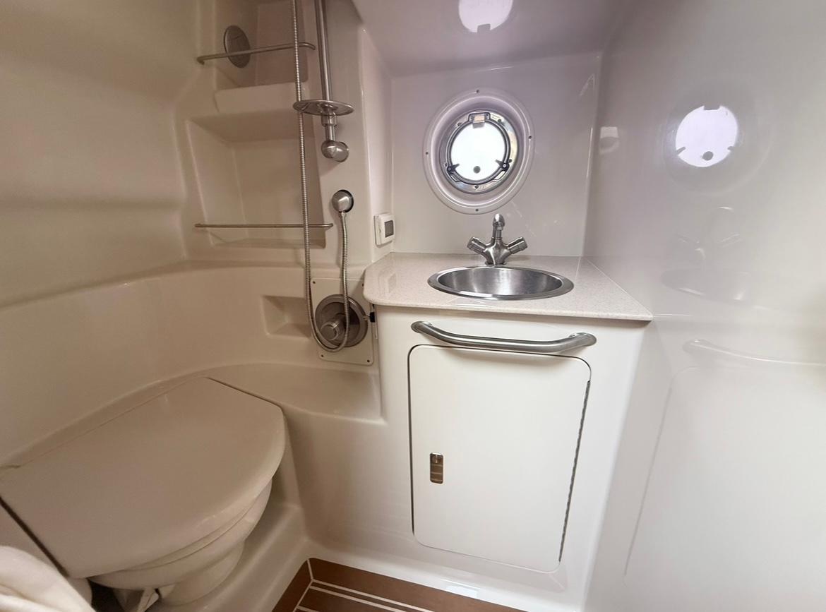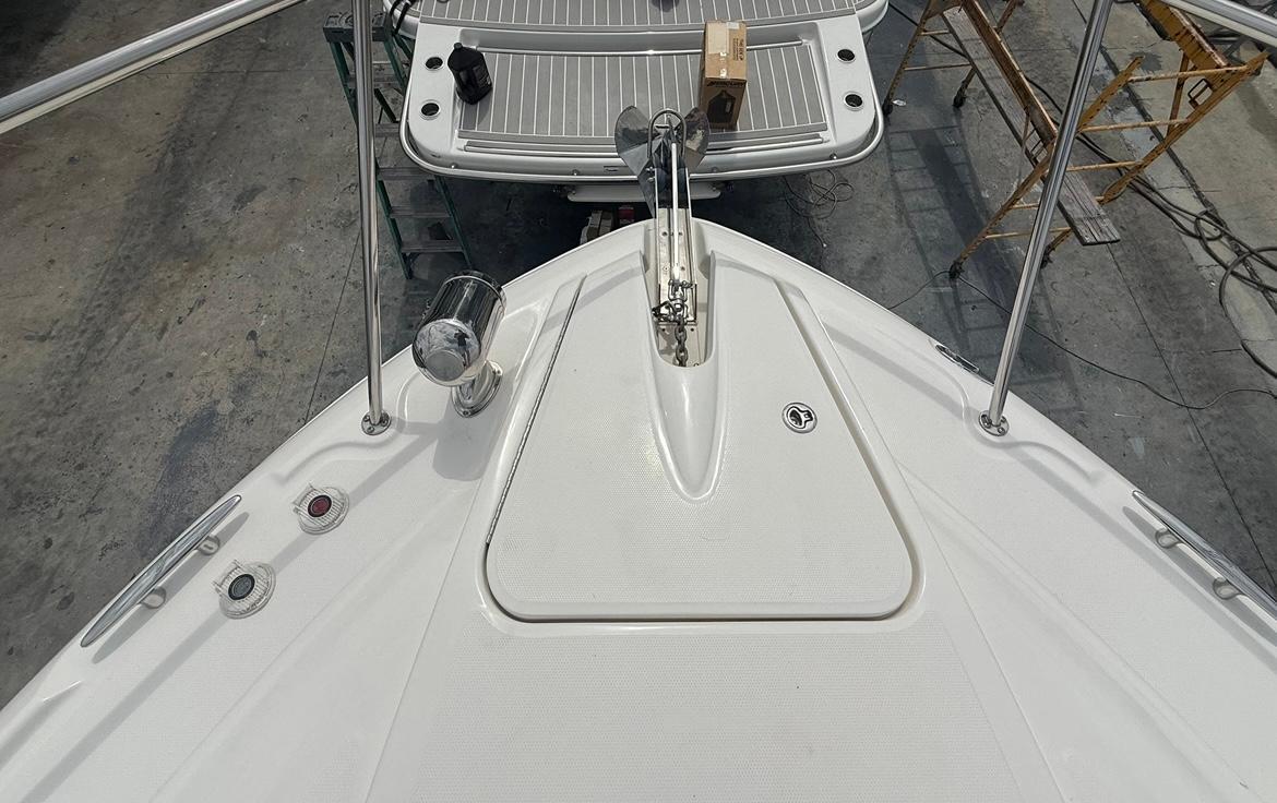 - Cockpit wet bar with solid-surface countertop and room for an optional refrigerator or icemaker.