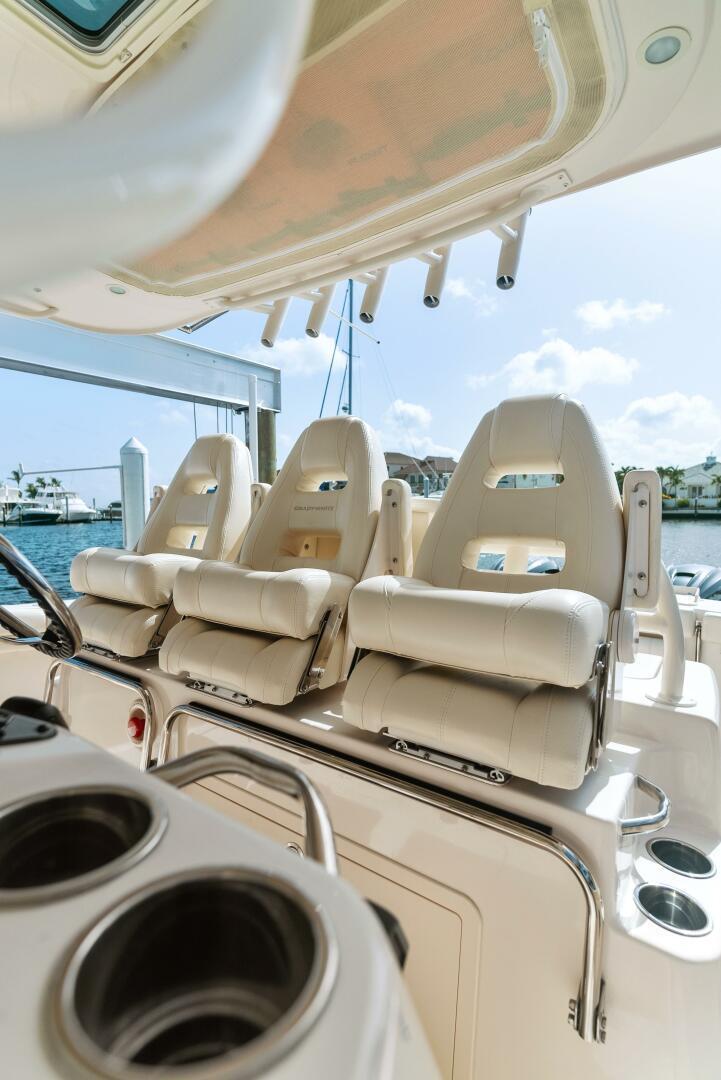 - Seating - lean bar mounted Command Elite horizontally adjustable contoured helm chairs w/deluxe cushioning & flip-up bolsters (3)