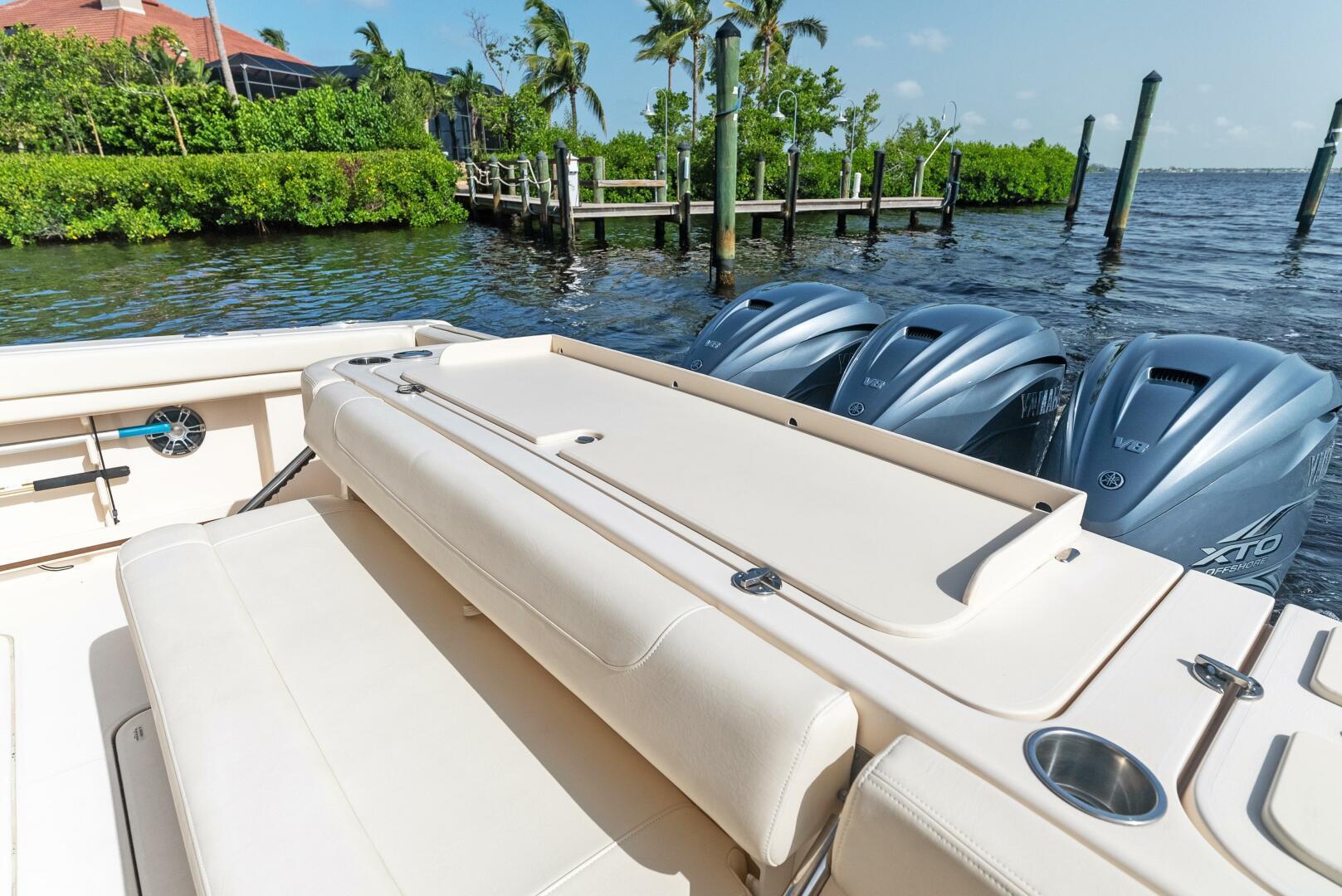 2021 37 Grady-White Canyon - "Galloway's Group" is a one-owner, lift kept and is ready for her next owner! With a wide beam, spacious air-conditioned console, top-of-the-line equipment, and the exceptional ride characteristics of her SeaV2 hull, this large center console can truly do it all. Low-hour triple Yamaha 425HP engines quickly get you where you need to go, and her SeaKeeper 6 will keep you comfortable while you’re there. To top it all off, Yamaha’s Helmaster Control System w/ Joystick and a bow thruster allow for effortless docking when it’s finally time to head home. Highlights Include: One Owner * Lift Kept * No Bottom PaintExcellent Condition!Triple Yamaha 425HP Engines– 145 HoursYamaha Factory Warranty Until 11/5/25 (Extended Warranties Available)Yamaha Helm Master Control System w/ JoystickFull Boat & Engine CoversBow ThrusterSeaKeeper 6 Gyrostabilizer w/ Extended Warranty until 5/26/26Dual Garmin GPSMAP – 8400/8600Open Array RadarAuto PilotGarmin VHF w/ electronically raising VHF AntennaBennett Trim TabsElectromechanically Operated Electronics Enclosure5 KW Fischer Panda Diesel Generator – 155 HoursAft Fish Box Refrigerator/Freezer w/Digitally Controlled ThermostatT-top Mounted Rod HoldersSureShade® Electrically Retractable Shade with Sunbrella® Canvas Dometic Cabin A/C w/ Helm VentsDometic HeadUpgraded Deluxe Stereo SystemSand Gelcoat