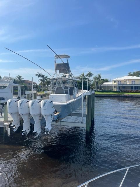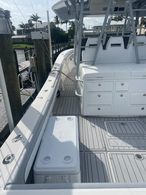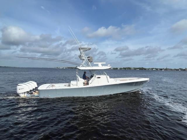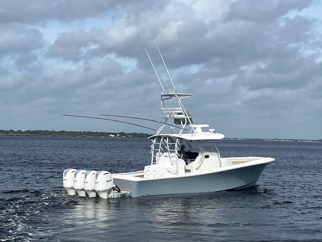 Options InstalledQuad Yamaha 350s only 360 hours with full service in October 2021 Generator full service in October 2021 8 new gell cell batteries in August 2021 Helmaster Flir Back up Camera Full Garmin electronics Storm Grey Hull Motors, Bolsters, Helm, Upper Station Covers Sea Deck Sea Keeper Like New Condition Custom Painted Engines (Quads) Dual Station Tower w/ Controls & Hardtop T-Top Underside to Match Hull Sides Taco Grand Slam 380 Outrigger Bases w/ 20' Carbon Fiber Telescoping Poles Dove Gray Upholstery Cockpit Freshwater Engine Flush (Single) Edson Elite Carbon Wheel w/ Power Knob Edson Elite Carbon Wheel w/ Power Knob (Tower) Multi-Colored Underwater LED Lights (2) Refrigerated Transom Fishbox Remote-Controlled ACR RCL-100 LED Spotlight Factory Installed Garmin Offshore 41 Package: Triple 17" GPSMAP 8617 Multi-touch Widescreen Chartplotter/Sonar Displays, VHF 210 Radio with 8' Digital VHF Antenna, GMR 624 xHD2 6kW Open-Array Radar, Airmar B275LHW, 1 kW CHIRP Transducer, & Autopilot w/ Black Flushmount Face & mic