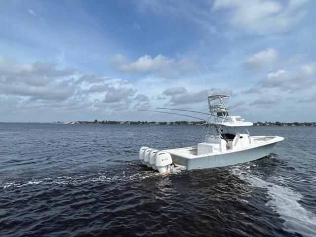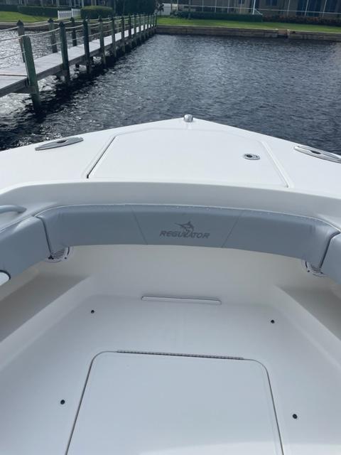 2018 Regulator 41' Quad Yamaha F350 4-Stroke Engines with Digital Electronic Controls and Yamaha Helm Master w/ Set Point with 360 HoursCustom Painted Engines (Quads)Dual Station Tower w/ Controls & HardtopT-Top Underside to Match Hull SidesTaco Grand Slam 380 Outrigger Bases w/ 20' Carbon Fiber Telescoping PolesDove Gray UpholsteryCockpit Freshwater Engine Flush (Single)Edson Elite Carbon Wheel w/ Power KnobEdson Elite Carbon Wheel w/ Power Knob (Tower)Multi-Colored Underwater LED Lights (2)Refrigerated Transom FishboxRemote-Controlled ACR RCL-100 LED SpotlightFactory Installed Garmin Offshore 41 Package: Triple 17" GPSMAP 8617 Multi-touch Widescreen Chartplotter/Sonar Displays, VHF 210 Radio with 8' Digital VHF Antenna, GMR 624 xHD2 6kW Open-Array Radar, Airmar B275LHW, 1 kW CHIRP Transducer, & Autopilot w/ Black Flushmount Face & mic Generator 150 HoursAll soft goods and motors coveredNight vision Introducing the 2018 Regulator 41' - A Masterpiece of Yacht Engineering Prepare to be captivated by the sheer beauty and exceptional performance of this 2018 Regulator 41'. With an impeccable blend of power and luxury, this vessel represents the pinnacle of maritime craftsmanship. Boasting a remarkable set of features and meticulously maintained, it's a yacht that's ready to make your nautical dreams a reality. Quad Yamaha F350 4-Stroke Engines: The heart of this majestic vessel is powered by four Yamaha F350 4-Stroke Engines, all equipped with Digital Electronic Controls and Yamaha Helm Master featuring Set Point. These high-performance engines deliver a total of 1400 horsepower, ensuring smooth and precise control, with only 360 hours of operation, demonstrating the care and precision with which this yacht has been maintained.Custom Painted Engines: Not only is the performance extraordinary, but the aesthetics are equally impressive. The engines have been custom painted to match the yacht's sleek and distinctive appearance, reflecting the attention to detail that sets this Regulator 41' apart. Dual Station Tower: Enhancing your command over the seas, this yacht features a Dual Station Tower with full controls and a hardtop. With this bird's eye view, you'll be able to navigate through even the most challenging waters with confidence and ease. T-Top Underside Matching Hull Sides: Every inch of this vessel is a testament to its elegance and coherence. The T-Top's underside matches the hull sides, creating a harmonious and visually striking impression that will turn heads wherever you sail. Taco Grand Slam 380 Outrigger Bases: A fishing enthusiast's dream come true, this yacht is equipped with Taco Grand Slam 380 Outrigger Bases, accompanied by 20' Carbon Fiber Telescoping Poles. These top-tier outriggers ensure your fishing adventures are nothing short of spectacular.Dove Gray Upholstery: Stylish and practical, the dove gray upholstery throughout the vessel adds a touch of sophistication to every corner of the yacht, making relaxation at sea an exquisite experience. Cockpit Freshwater Engine Flush: For your convenience, a cockpit freshwater engine flush system has been installed, ensuring the longevity of your investment. Edson Elite Carbon Wheel: The Edson Elite Carbon Wheel with a power knob ensures precise and effortless steering both at the helm and atop the tower, enhancing your control and comfort. Multi-Colored Underwater LED Lights: After the sun sets, the underwater world comes to life with the addition of two multi-colored LED lights. These underwater lights create an enchanting ambiance that's perfect for evening cruises and fishing excursions. Refrigerated Transom Fishbox: The fishing amenities continue with a refrigerated transom fishbox, providing the perfect storage for your prized catches. Remote-Controlled ACR RCL-100 LED Spotlight: For added safety and convenience, this Regulator 41' is equipped with a remote-controlled ACR RCL-100 LED Spotlight, ensuring you have clear visibility in all conditions. Factory Installed Garmin Offshore 41 Package: Navigating the seas is made simple with the factory-installed Garmin Offshore 41 Package. This includes triple 17" GPSMAP 8617 Multi-touch Widescreen Chartplotter/Sonar Displays, a VHF 210 Radio with an 8' Digital VHF Antenna, GMR 624 xHD2 6kW Open-Array Radar, Airmar B275LHW, 1 kW CHIRP Transducer, and Autopilot with a black flushmount face and microphone. Generator: This vessel is equipped with a generator that has only 150 hours of operation, ensuring you have a reliable power source for extended journeys. All Soft Goods and Motors Covered: Your investment is protected, with all soft goods and motors meticulously covered and maintained, ensuring they remain in pristine condition. Night Vision: For those adventurous night cruises or nocturnal fishing expeditions, night vision equipment is included, adding an extra layer of safety and excitement to your voyages. The 2018 Regulator 41' is more than just a yacht; it's an embodiment of excellence, a statement of luxury, and a vessel ready to take you on unforgettable journeys. Don't miss the opportunity to own this masterpiece of the sea, meticulously cared for and equipped with everything you need for a superior yachting experience.