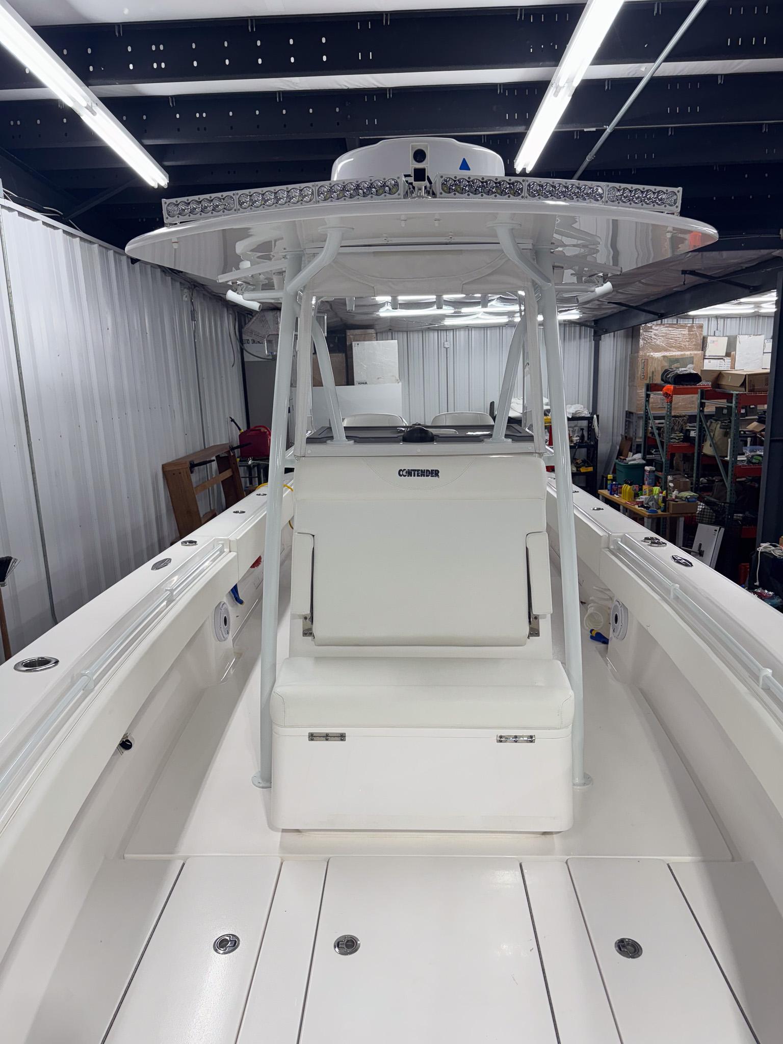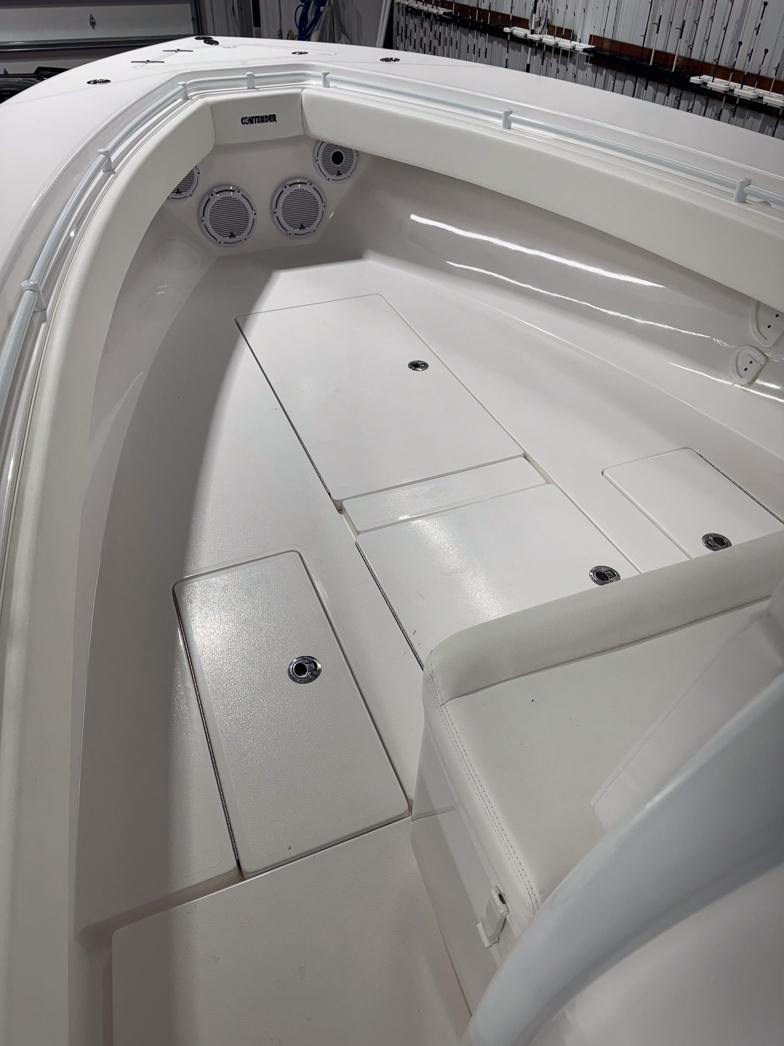 32 ft 2022 Contender 32 STTwin Yamaha 300 HP 4-stroke IDES outboards with Yamaha Helm Master EX steeringGarmin 8612 & 8612XSV chartplotters, GMR 24xHD radar, GXM 54, dual VHF 210, B265LH transducer, Fusion RA 770, JL Audio (4× 8.8″, 2× 10″ subs, 2× 7.7″ on hardtop), USB outlets, night-track camera, high-speed compassHand-laid fiberglass hull with foam flotation and 32’ step design; custom sport console w/ LED dome light, sink/shower, porthole and locking electronics box; fiberglass T-top w/ three-sided polycarb enclosure, spreader lights, antenna mounts, outriggers and rod holders; self-bailing cockpit, integrated dive platform with full transom door; electric head, freshwater system, dual bilge pumps, salt-water washdown, Lenco trim tabs, multicolor under-gunnel and underwater lights; leaning post w/ slide-out cooler; livewell plumbing and fish box; pop-up cleats and stainless cup holders; premium Snow White Boltaflex upholstery.Sport-trail aluminum trailer w/ 4-wheel stainless disc brakes and boat cover—Every detail on this 32 ST works for your day on the water. Twin Yamahas and Helm Master EX put you on plane instantly and make tight turns or slipside docking effortless. Garmin’s dual-screen network, radar and night-track camera keep you on course in any condition, while Fusion and JL Audio set the soundtrack.The cockpit’s self-bailing sole and integrated dive platform mean safe, easy water access. Furling outriggers, flush-mounted scoops and livewell lights turn fishing into a pro-level game. When it’s time to unwind, the custom console’s sink/shower and convenient freshwater system let you rinse off before grabbing a drink from the slide-out cooler.Fully loaded and turnkey, this Contender 32 ST and its trailer with cover are ready for fishing, cruising, or watersports. Today!