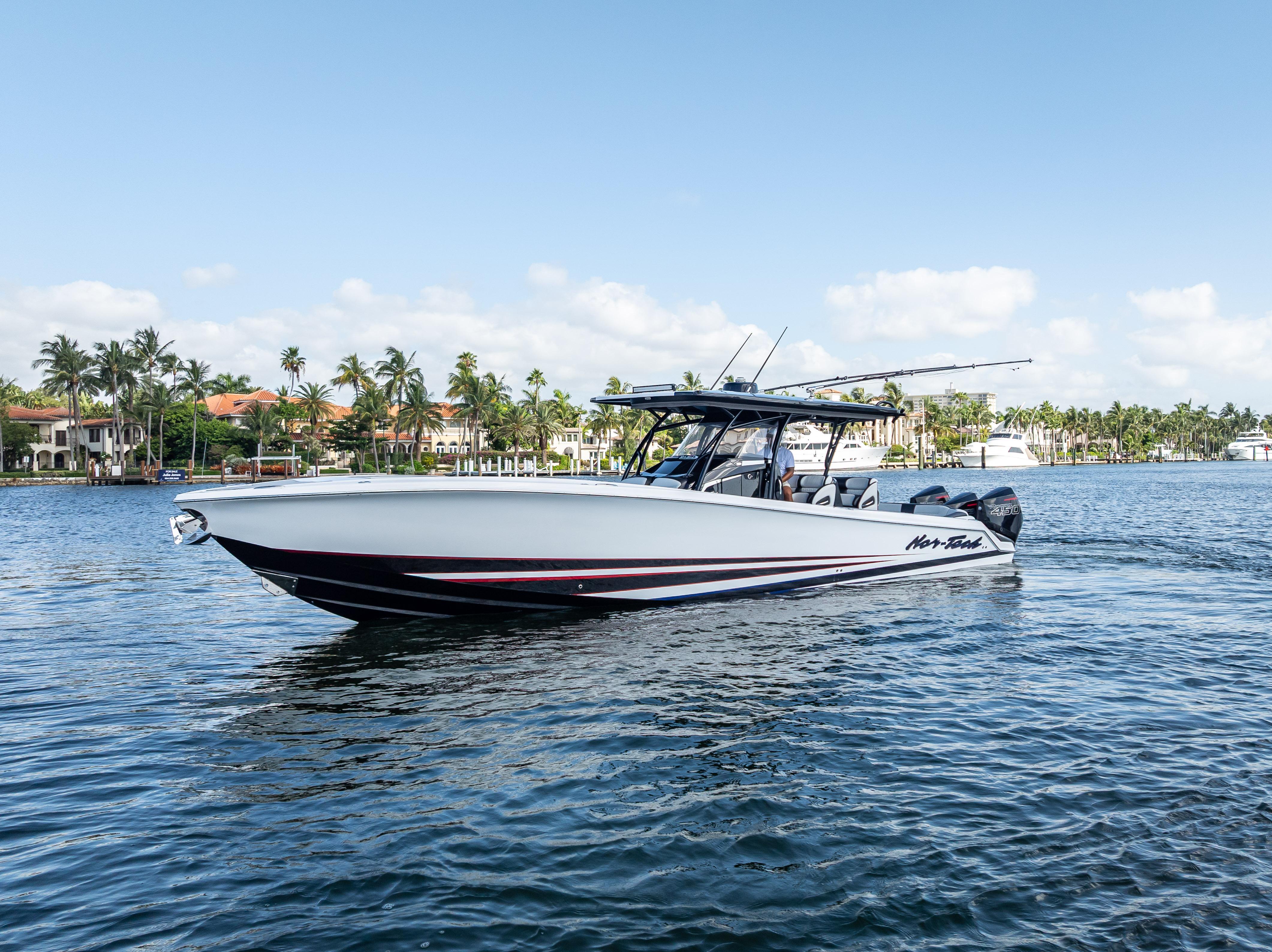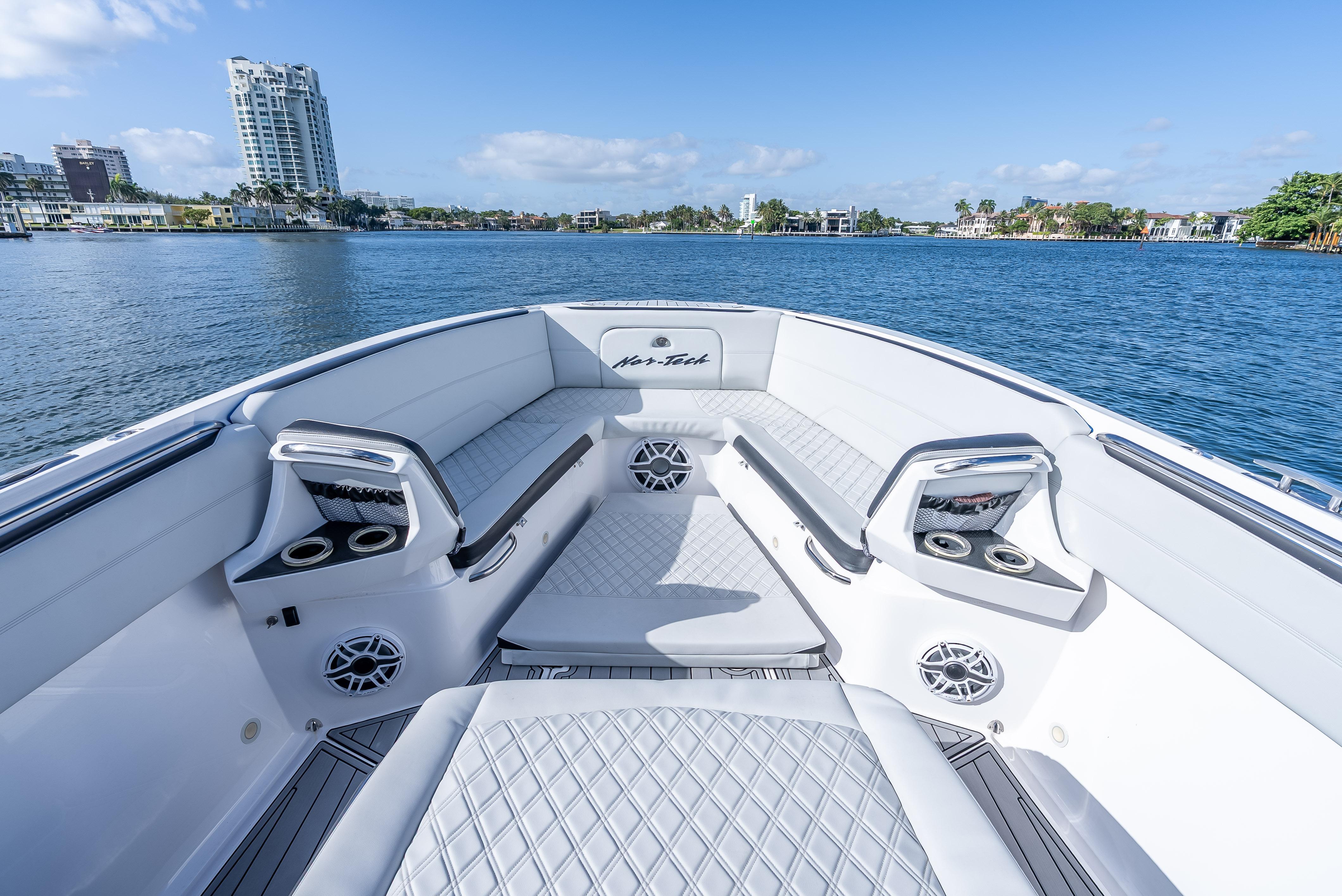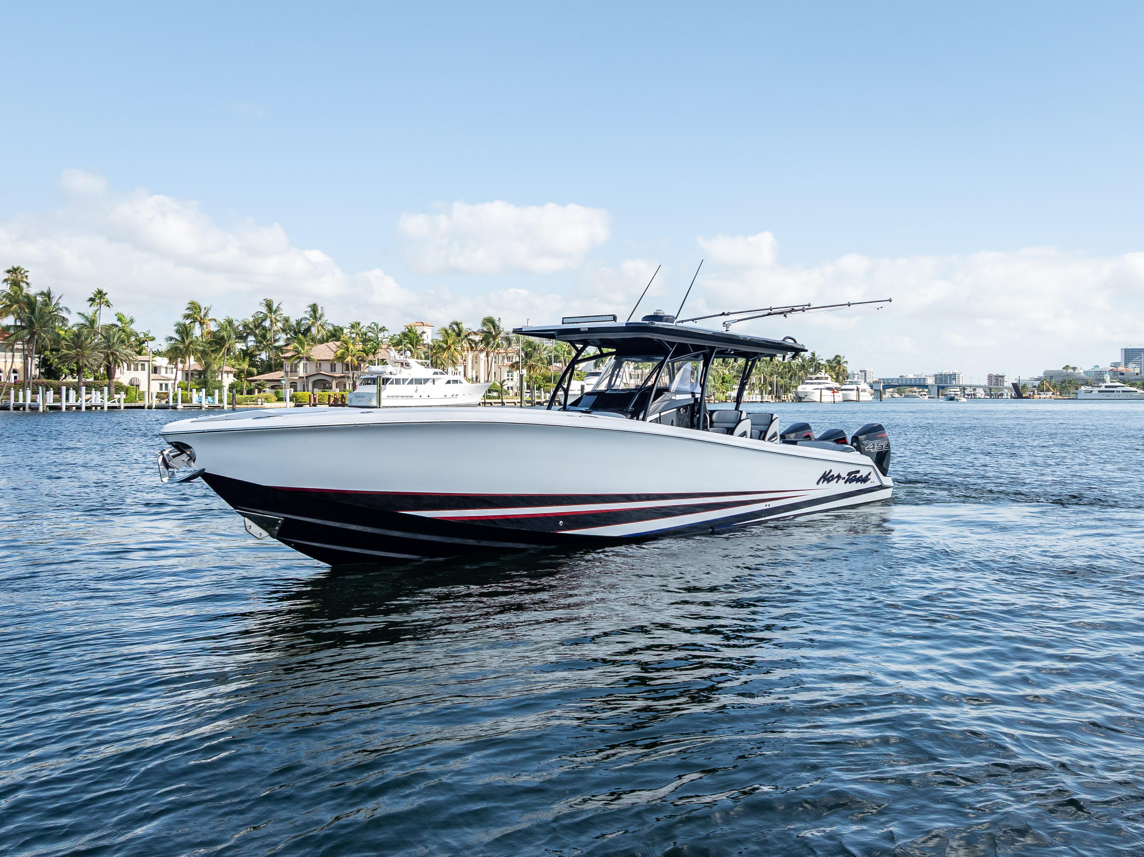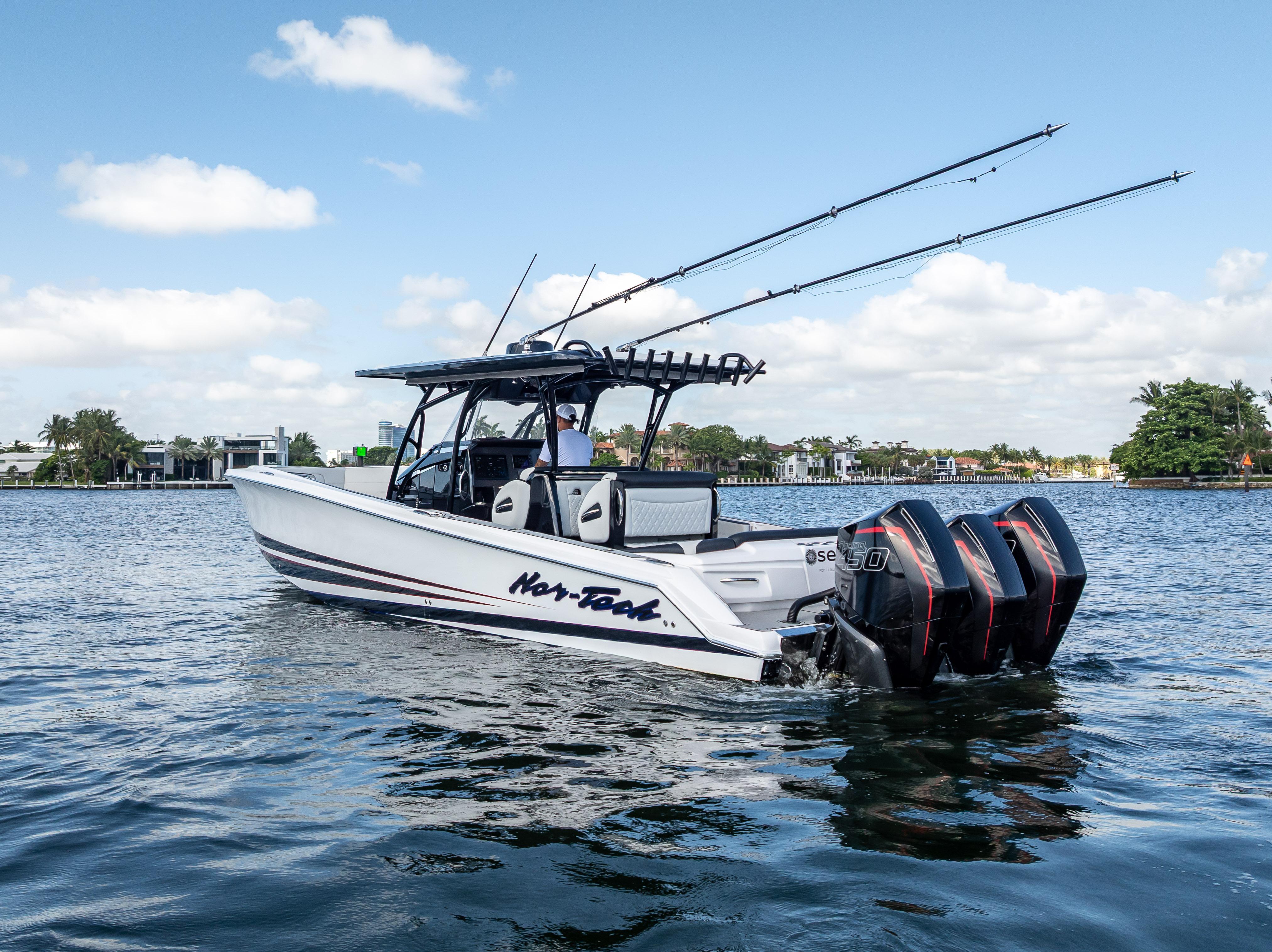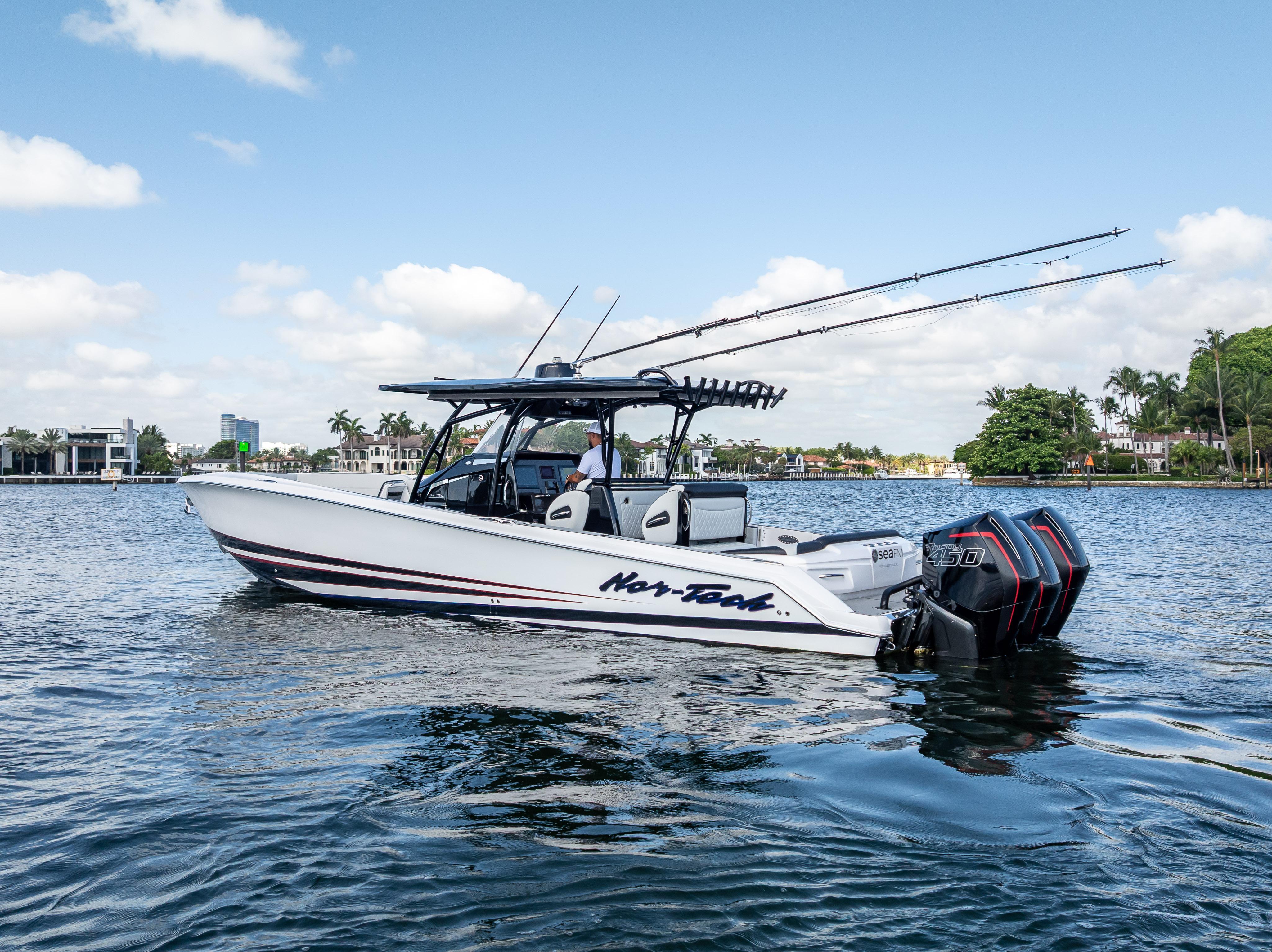 This low-hour, performance-driven Nor-Tech 390 Sport is an absolute head-turner, finished in a stunning white and black paint scheme with metallic red and blue accents. Meticulously maintained and loaded with premium options, it offers a perfect blend of luxury, speed, and offshore capability.This 390 Sport is your opportunity to own a top-tier performance center console that delivers on both style, performance, and substance.Key Features:Triple Mercury Racing 450R Engines- Low hours, blistering performanceSecond Row Helm Seating- Comfort for extended runsClub Sport Transom Layout- perfect for entertaining and loungingLumishore Underwater Lighting - Vibrant Color Changing LED SystemFLIR Night- Enhanced Visibility and safety after darkBow Thruster Effortless docking and maneuverabilityMercury Racing Digital Controls - Precision handling at speedOversized Garmin Displays - Dual XL screens for navigation and systemsAutopilot & HD48 Open Array Radar- Confident long range cruising Power Sunshade-automated shade system for cockpit comfortElectric Antennas- Sleek, convenient functionalityOversized LED light bar illuminate your surroundings with authorityFull forward sunshade with 4 carbon fiber polesCustom T-Top rod rack