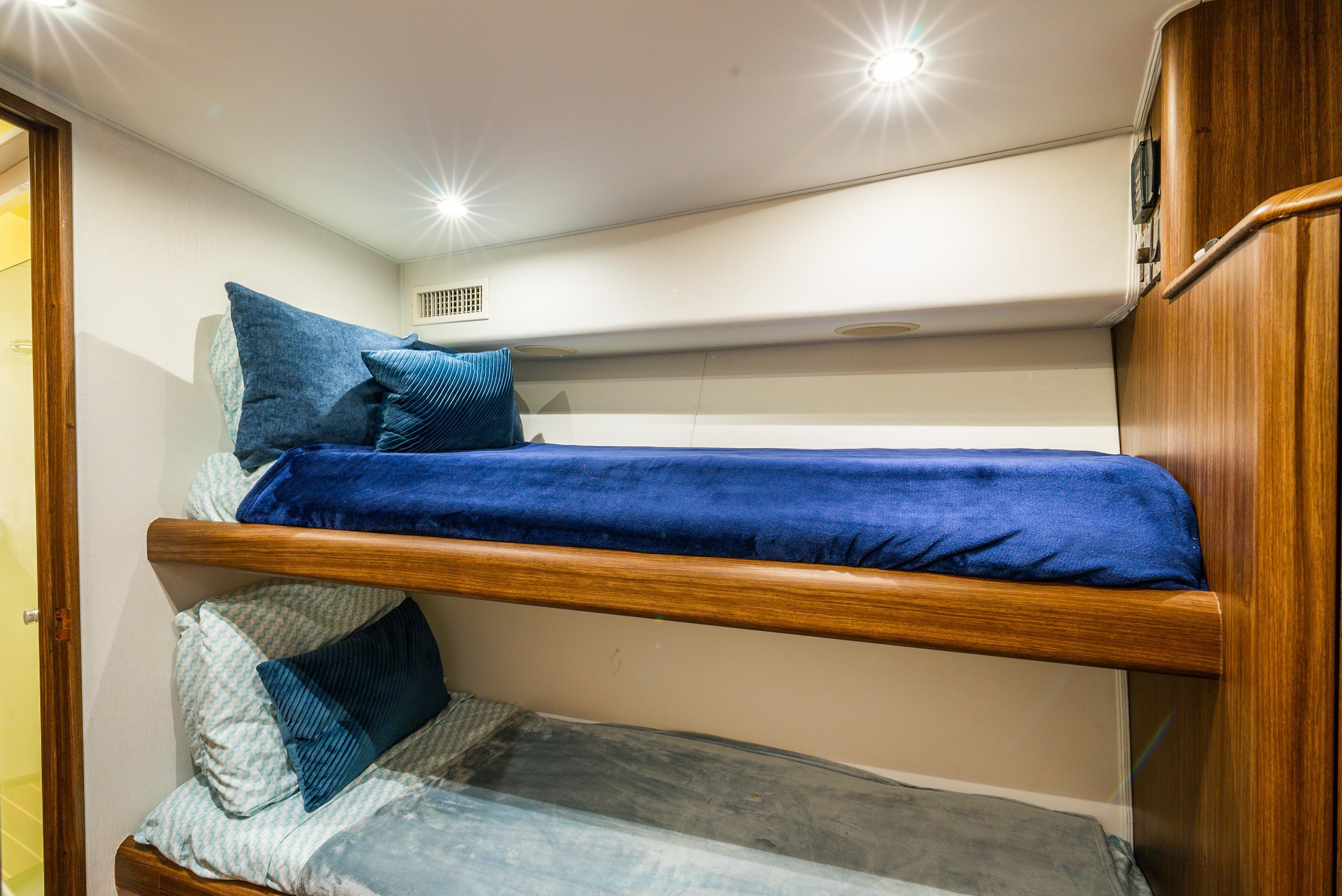 KNOTTY GIRL is a well-maintained 2005 Viking 52’ Convertible, designed for both serious offshore fishing and comfortable cruising. Powered by twin MAN 1300s, she delivers a perfect blend of performance and reliability, making her a top contender for tournament fishing or extended travel. With two 21.5kW generators, she ensures ample power for all onboard systems, and recent upgrades have kept her in peak condition. Stepping into the expansive salon, you’ll find a warm, inviting space designed for relaxation and entertaining. The L-shaped sofa to port offers ample seating, while the dinette to starboard provides a convenient space for meals or rigging tackle. The built-in entertainment center aft ensures you have access to your favorite media while unwinding after a long day on the water. Large windows bring in natural light, enhancing the open feel of the space. Moving forward, the galley is fully equipped for extended stays onboard. It features high-end appliances, ample counter space, and plenty of storage, allowing for easy meal preparation. With undercounter refrigeration and a cooktop, this space is both functional and elegant, seamlessly blending into the salon area. Below deck, KNOTTY GIRL offers a three-stateroom, two-head layout, providing comfortable accommodations for guests and crew. The midship primary stateroom to port features a walkaround queen berth, generous storage, and an ensuite head, creating a private retreat. The starboard guest cabin is thoughtfully designed with stacked single berths, offering comfortable sleeping quarters with direct access to the shared day head. The VIP stateroom forward maximizes space with stacked berths, including an oversized lower berth, and ample storage, making it ideal for additional guests or family. A practical feature in the companionway is a dedicated storage closet in place of a washer and dryer, providing convenient space for fishing gear, extra provisions, or other essentials. Designed with anglers in mind, KNOTTY GIRL boasts one of the largest cockpits in her class, fully outfitted for serious sportfishing. The molded console includes a rigging station, bait freezer, tackle locker, and engine room access, ensuring that every tool and piece of equipment is within easy reach. A ladder to starboard leads to the flybridge and full tuna tower, providing exceptional visibility for spotting fish and navigating offshore waters. Recent upgrades enhance both performance and aesthetics, including Garmin electronics and autopilot, a newly updated interior, marine PPF film with ceramic coating, and must-have offshore equipment like a watermaker and ice chipper. These improvements ensure KNOTTY GIRL is turnkey and ready for her next adventure. With a proven Viking pedigree, tournament-ready fishing capabilities, and a refined interior, KNOTTY GIRL offers the best of both worlds. Whether you’re looking for a high-performance sportfish yacht or a well-appointed cruiser, she is fully equipped and ready to go. Notable Features & Upgrades:Twin 21.5kW GeneratorsGarmin ElectronicsAutopilotFull Tuna TowerUpdated InteriorMarine PPF Film & Ceramic CoatingSignificant Services and UpgradesWatermakerIce Chipper