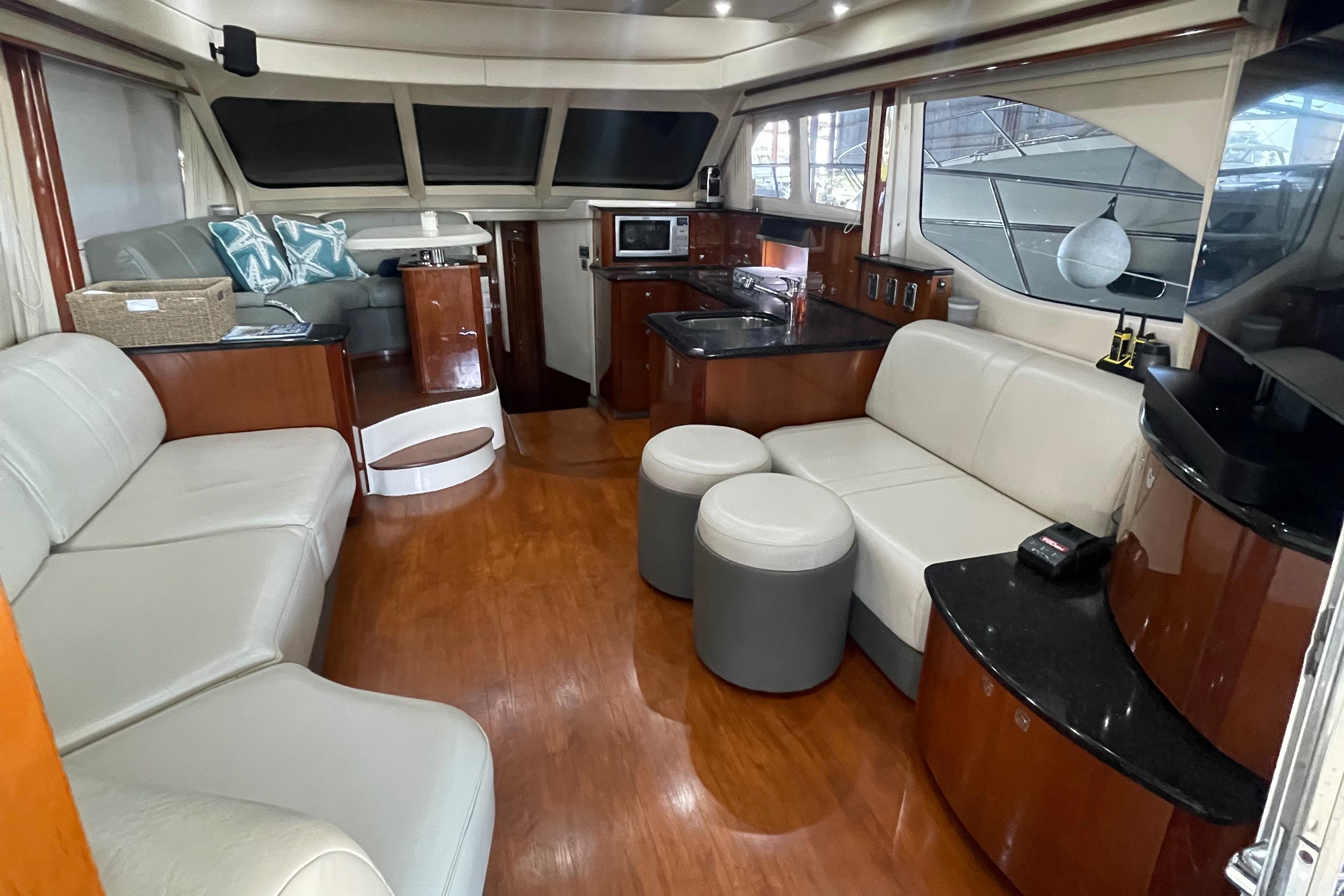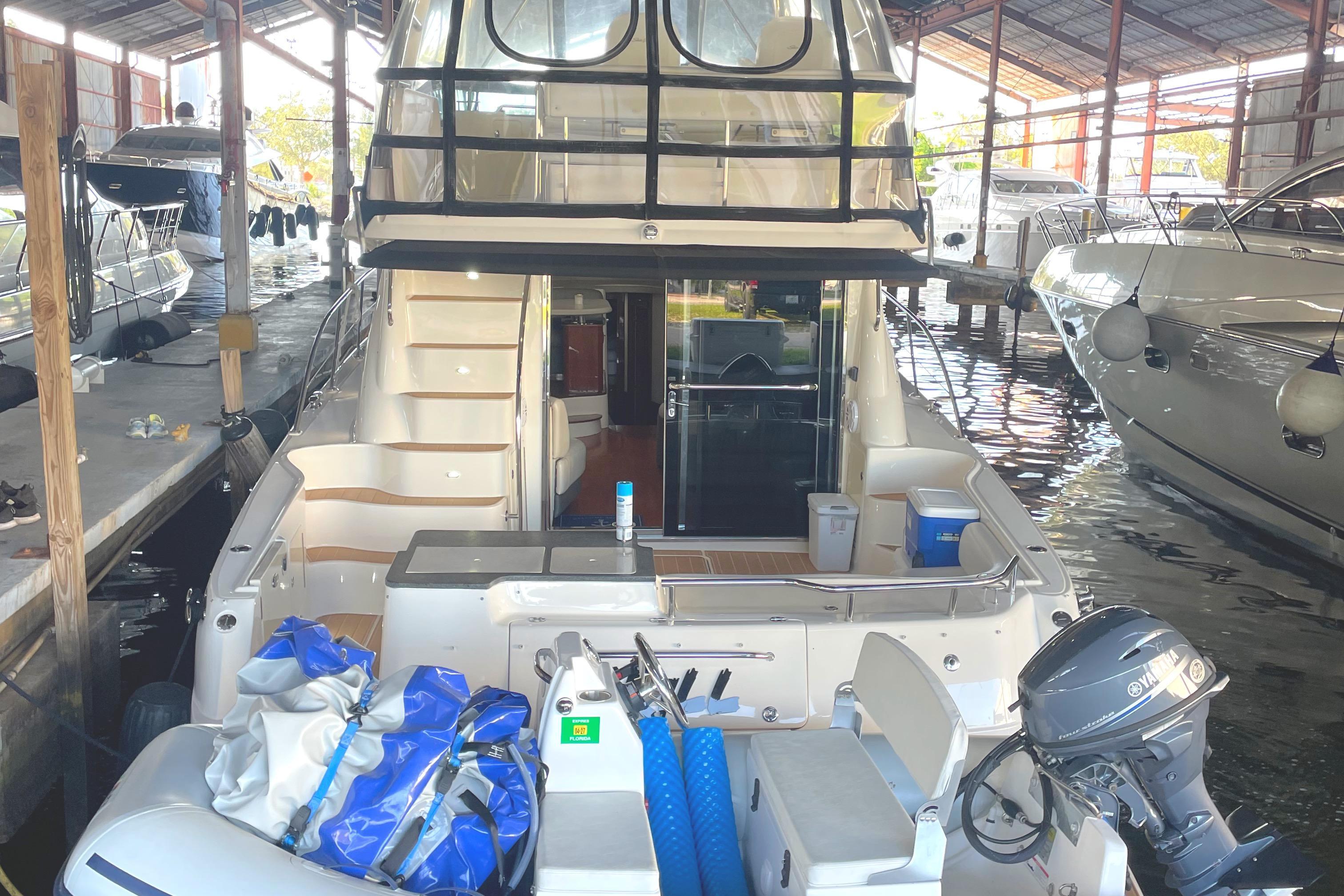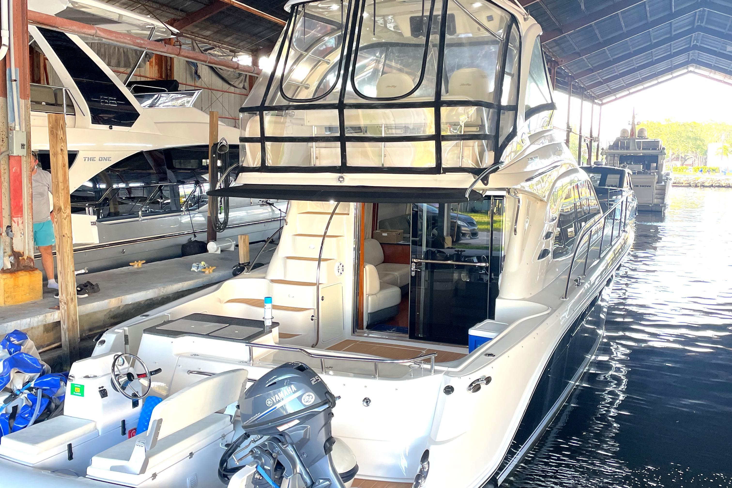 Exterior• Original Searay laydown matt• Original bridge floor carpentry• New leather steering wheel• Original black cockpit cover• Sea deck nonskid flooring• Original bridge hard top enclosure• New vinyl upholstery for exterior top and bottom• Hydraulic platform with ladder• Electric Kenyon grill• Two sinks• Platform washdown shower• Two Isotherm fridges• 20,000 BTU Domitec AC unit for bridge• Lumitec underwater lights• LED bridge ceiling white lights• LED after cabin color changing lights• Exterior LED courtesy lights• Electric anchor with winch• Bow thrusters with Joystick controls• Two Garmin 8616 GPS 16 Inch units• Three Fusion stereos all around• JL audio system with subwoofer• Garmin VHF marine radio• Garmin 7-inch chart Plotter• Starlink• AB Mares 10VX 2023 DinghyMechanical• Cummins Onan Generator• Two new AC water pumps• New Duracell Batteries• Two Rebuilt Macerator pumps• Hydraulic power steering serviced up to date• Bottom PaintInterior• New carpet all around• New upholstery all around• Four new mattresses• Sofa bed• Two showers• Two toilets• Kitchen sink• Two serviced up to date Dometic AC units• Two serviced fully functional Isotherm fridges• Smart TVs in all cabin rooms• 43-inch Samsung smart TV, living room• Sonos soundbar audio system• Washing machine with dryer (2 in 1)• Electric cooktop stove• Water heater• Interior LED lights all around