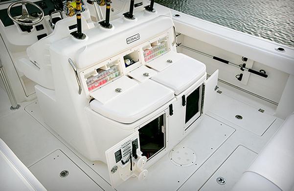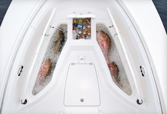 - 55 Quart Cooler Molded under Center Casting Deck Hatch