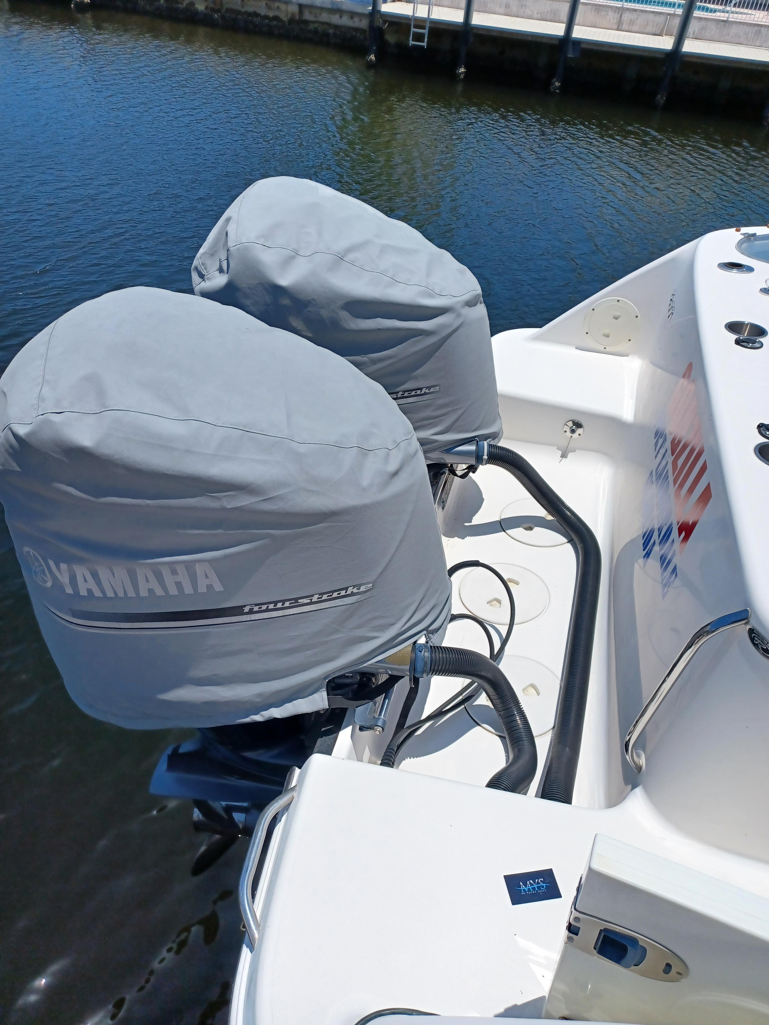 This 2016 Robalo R300 center console has only 663 hours on twin Yamaha 300's on it. Equipped with forward and aft extendible shade screens. Interior is in excellent condition with convenient head, bow and aft seating, twin Garmins and radar. Boat has been kept covered on a boat lift. A very good value at this asking price.