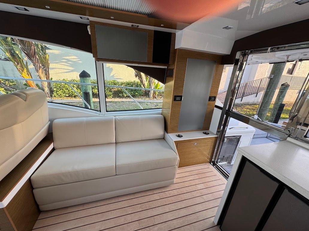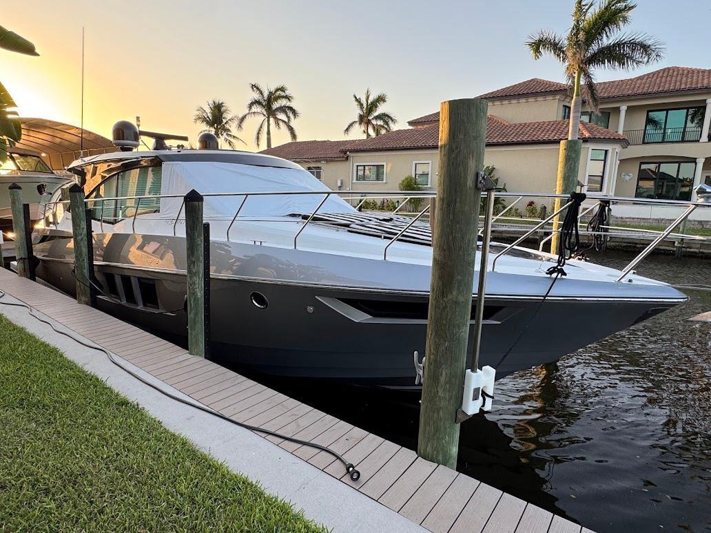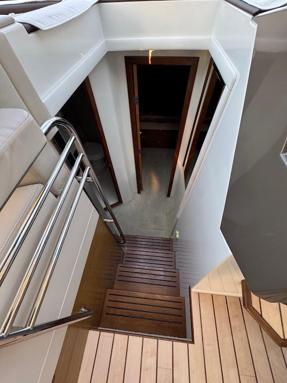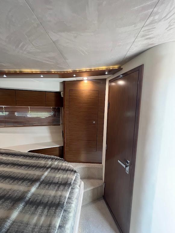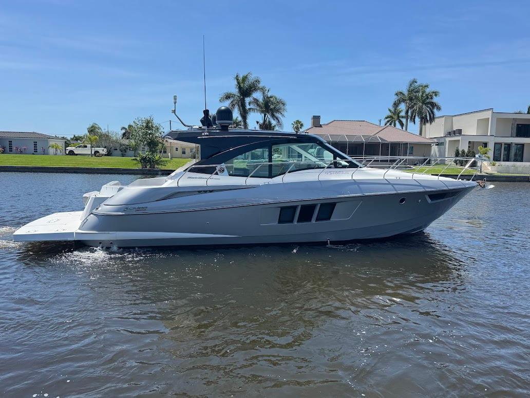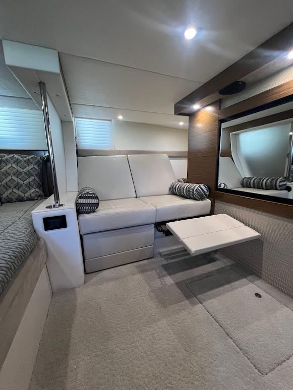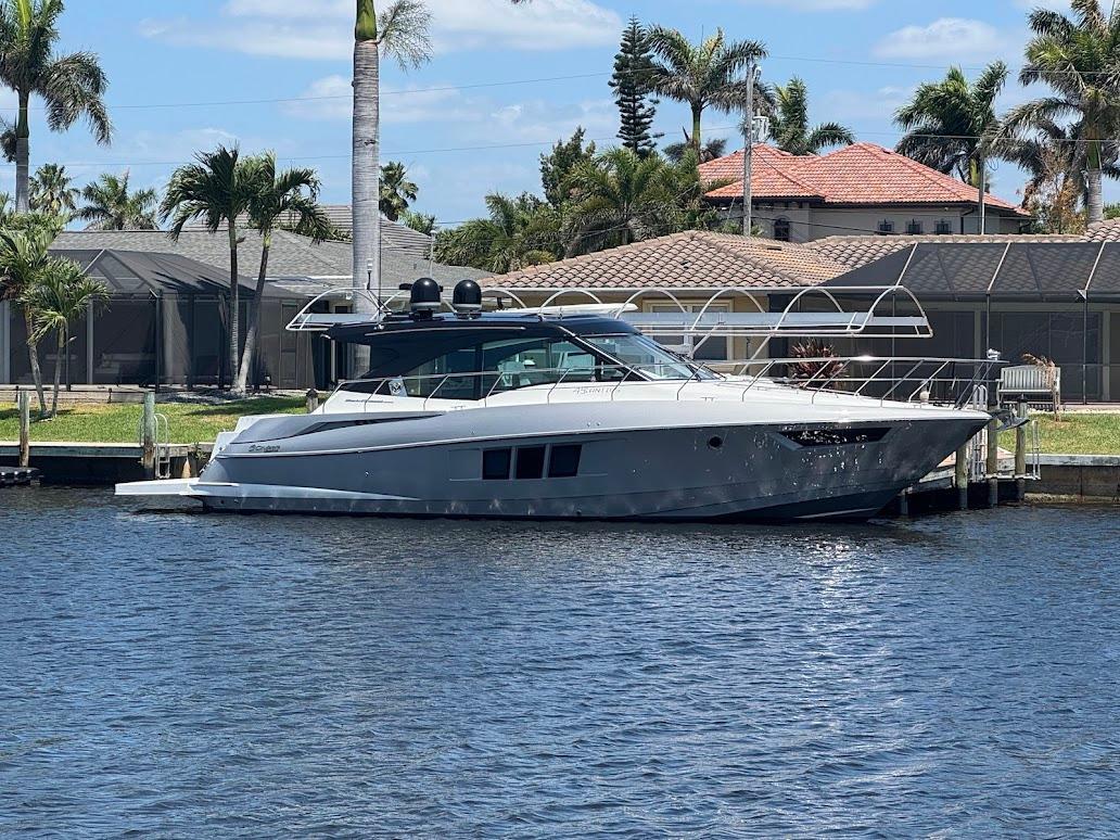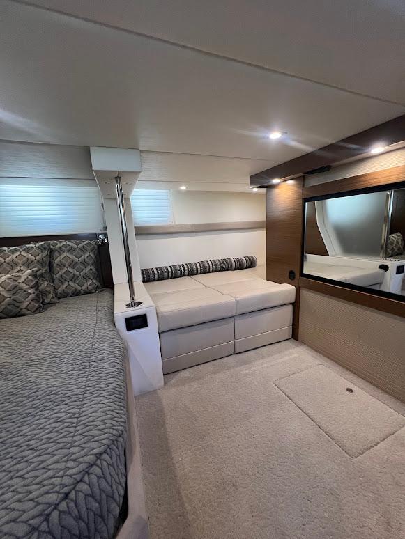 Introducing a 2014 45 Cruisers Cantius Black Diamond Limited Edition with about 750hrs on the recently serviced Volvo IPS D6 435hp pod drives with Joystick Docking and approximately 265hrs on Generator. Options include Hydraulic Swim Platform, Huge Power Sunroof, Dual 12" Garmin Displays with integrated GPS, Radar, and Autopilot. Cockpit features upgraded options including a grill, icemaker and refrigerator. Aft seating converts to a sunpad. Down below the aft stateroom situated with a queen berth and an additional full sized sleeping space that converts to dual recliners when not in use which is a perfect flex space for families if needed (as seen in the pictures). Forward is a full-sized berth with split hanging lockers and plenty of storage...and an en-suite dry head. With the smooth integration of lavish indoor spaces and the great outdoors, the remarkable 45 Cantius offers a seamless flow that feels refreshingly unlike any other on-water lifestyle. With spacious entertaining areas, a full glass enclosure and unprecedented sightlines, the 45 expands your experience beyond the horizon.Galley and HeadsGalley is conveniently located aft of the Salon with direct access to the cockpitSynthetic wood flooring in the galley for easy clean-up and water resistanceSolid Surface galley countersStainless steel microwave/convection ovenSide-by side under-counter Refrigerator and freezerStainless steel galley sink with combination faucet and pull-out sprayer(2) burner electric stove11 gallon hot water tank(2) heads, each with Dometic electric flushing toiletsBathroom vanity sinks with storage compartmentsRaised dinette for excellent visibilityAccommodationsCruisers Yachts makes the best use of space in their boats and the layout of this 45 is amazing, with storage space “everywhere”. Plenty of natural light flows through the large windows onboard, including a huge power sunroof and fully glass-enclosed Salon / Helm area that opens up to the cockpit. The Salon/Helm/Galley space blends seamlessly with the Cockpit to make this the Perfect Boat for Entertaining. Forward Queen Master Berth in private cabin with en-suite head/showerOverhead hatch with screen/shadeCedar lined closetExcellent storage optionsSpecialized lighting and overhead valancesAt the bottom of the steps is the common area, with day head access to the 2nd head and shower.central vacuum systemWasher/Dryer with dedicated laundry storageBright, open and spacious (with light from the Helm/Dinette area)The Mid-Cabin space in this boat is Simply Awesome! With an award winning design, there are Large hull side windows that lend to a very open feel.Lockable door for privacy when desiredPort side lounge/sofa (a perfect place for reading or watching TVStereo system, dedicated to this spaceFlat Screen TV (Sat/local) mounted on swing-arm mount for easy viewing throughout the space(2) Port side Recliners (that also turn into a 2 person sleeper)Aft double berth, capable of sleeping 2 adultsThe Master Stateroom is forward in the boat, and features a lockable door for privacy when desired. Tastefully decorated with specialized lighting and an over head valance. Excellent storage including a mix of hanging lockers, drawers and cabinets.Queen-sized, pedestal mounted bedcedar lined closetFlat Screen TV (Sat/Local)Dedicated stereo system for this stateroomHull side windows with wood blindsOverhead hatch with screen/shadeReading lampsEnsuite Head and showerDecorator-style bowl sink with combination faucetVanity with mirrored medicine cabinetStand-up shower with bi-fold glass door, niche' for shower items includedDometic electric flushing toiletMechanical ItemsReverse Cycle Heat/Air Conditioner (40,000 btu's)On-Board battery charging systemBattery IsolatorBattery Parallel switchBilge Pumps with automatic float switches and Hi Water Alarms(3) Carbon Monoxide detectorsCockpit engine room hatch (easy engine room access)Automatic Fire Suppression system13kw Diesel Powered Generator in sound shield (202 hrs) with remote start/stop50 amp shore power connectionCablemaster for retrieval of 50 amp shore power cordPrimary Fuel Filters with easy service accessAnchor windlass with helm and foot pedal controlsSplendide' washer/dryerCentral vacuum systemOil change system for engines and generatorExteriorBack-to-back cockpit seating, converts into a Sun Pad (with sunbrella covers)Hydraulic swim/dinghy platformPull-out swim ladderPort side transom gateSure Shade electric cockpit sun shadePort side cockpit grill and RefrigeratorStbd side Ice Maker and meal Prep SpaceCockpit stereo speakers(2) removable cockpit bar stools with direct access to Galley Counter/BarFull Glass/Stainless framed cockpit bulkhead, stbd side "dutch door"Overhead lightingFender/Dockline storage compartmentCockpit hot/cold showerWide sidewalk spaceForedeck Sun lounges with adjustable backrests and removable cushions (with Sunbrella covers)Removable Windshield screenWelded Stainless Steel bow railingAnchor Windlass with foot pedal controls at the bow(2) large windshield wipers with washerSteering SystemJoystick Control