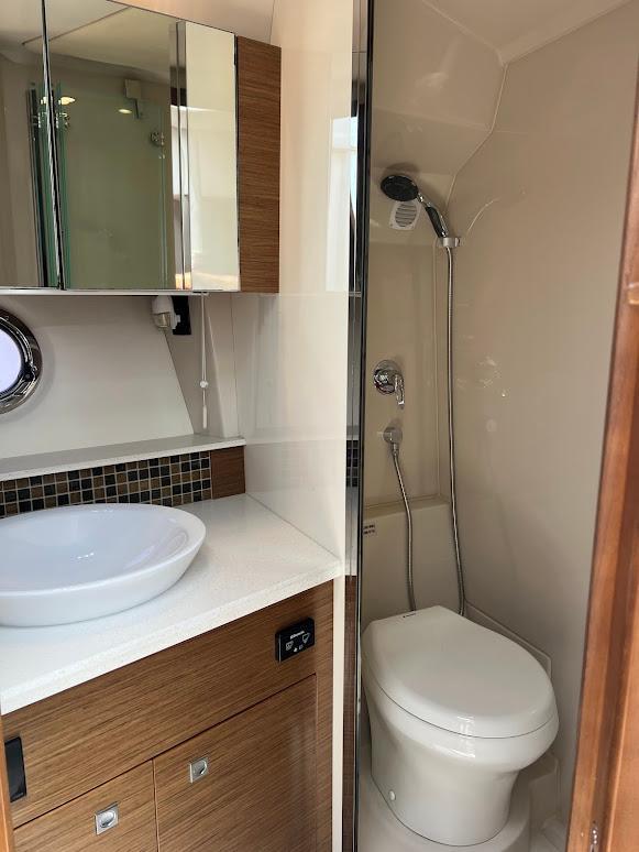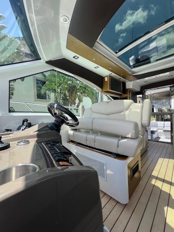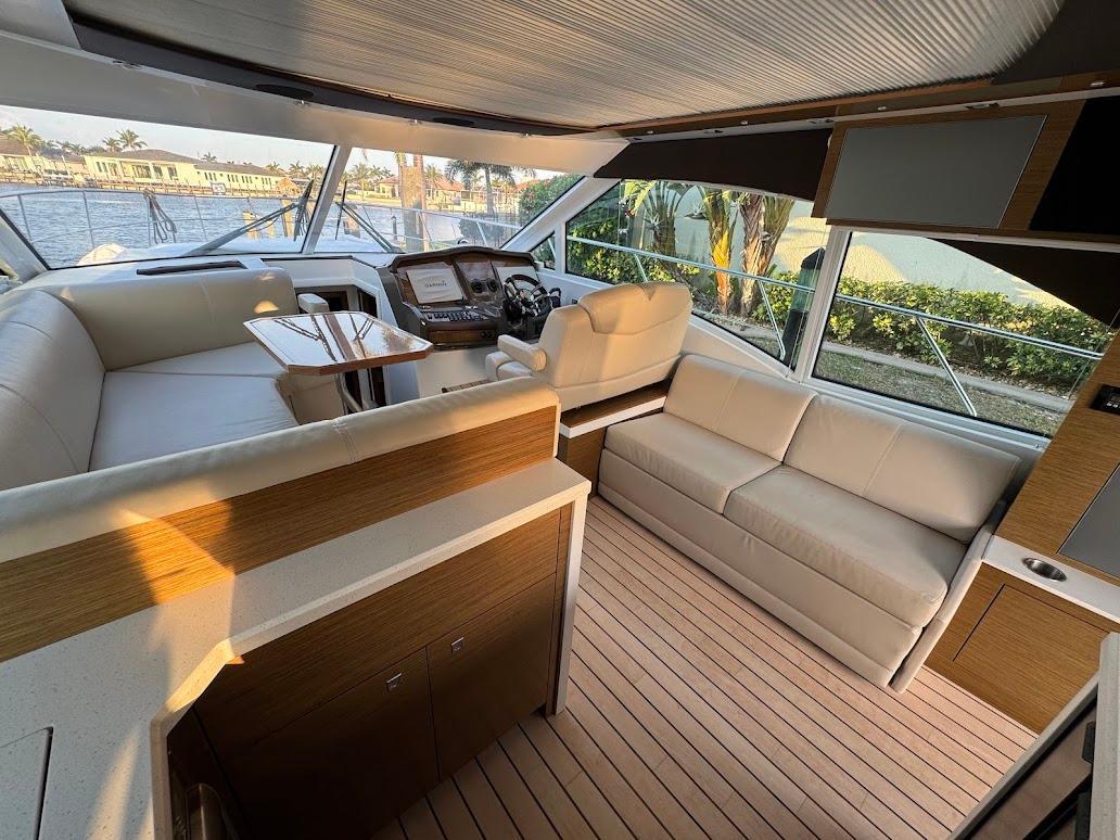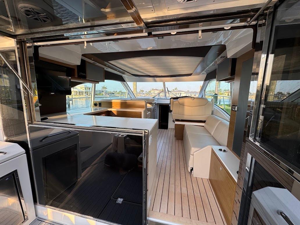 Have the best of both worlds aboard the 45 Cantius by Cruisers Yachts with luxurious and comfortable interiors that beautifully integrate the wind, sun, and water around you. The remarkable 45 Cantius has a feeling of confident ease with its surroundings which will put everyone aboard feeling at home on this elegantly designed yacht. With spacious entertaining areas, a full glass enclosure, and unprecedented sight-lines, the Cruisers Yachts 45 Cantius expands your experience beyond the horizon. Aboard the 45 Cantius, the spacious and integrated cockpit features wrap-around seating that converts to a plush sun lounge with fore/aft bolsters. A perfect blend of luxurious and organic comfort is brought to you by the Amtico flooring with the amenities needed to entertain with ease. Cruisers Yachts deliberately engineered the cockpit of the 45 Cantius to have two removable cockpit tables, an ice chest on the starboard side, and a hot/cold cockpit shower giving you the amenities needed for a remarkable time on the water. Available cockpit options include a grill, refrigerator, and stools if you're interested in a custom experience aboard the 45 Cantius.