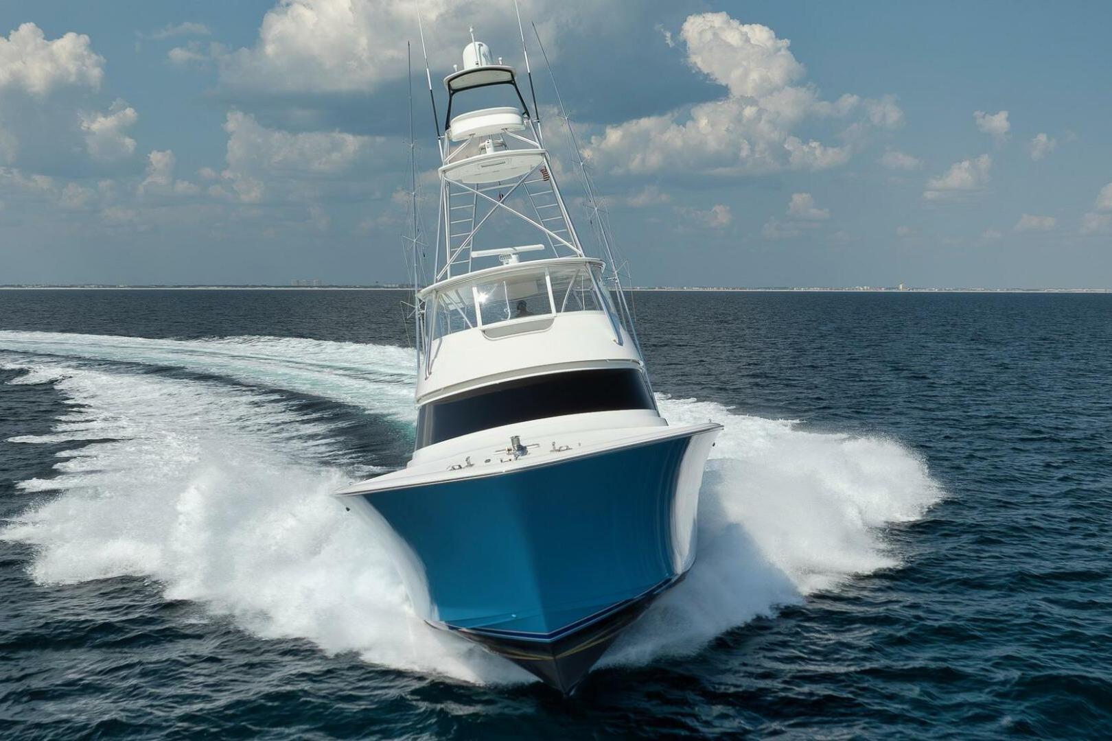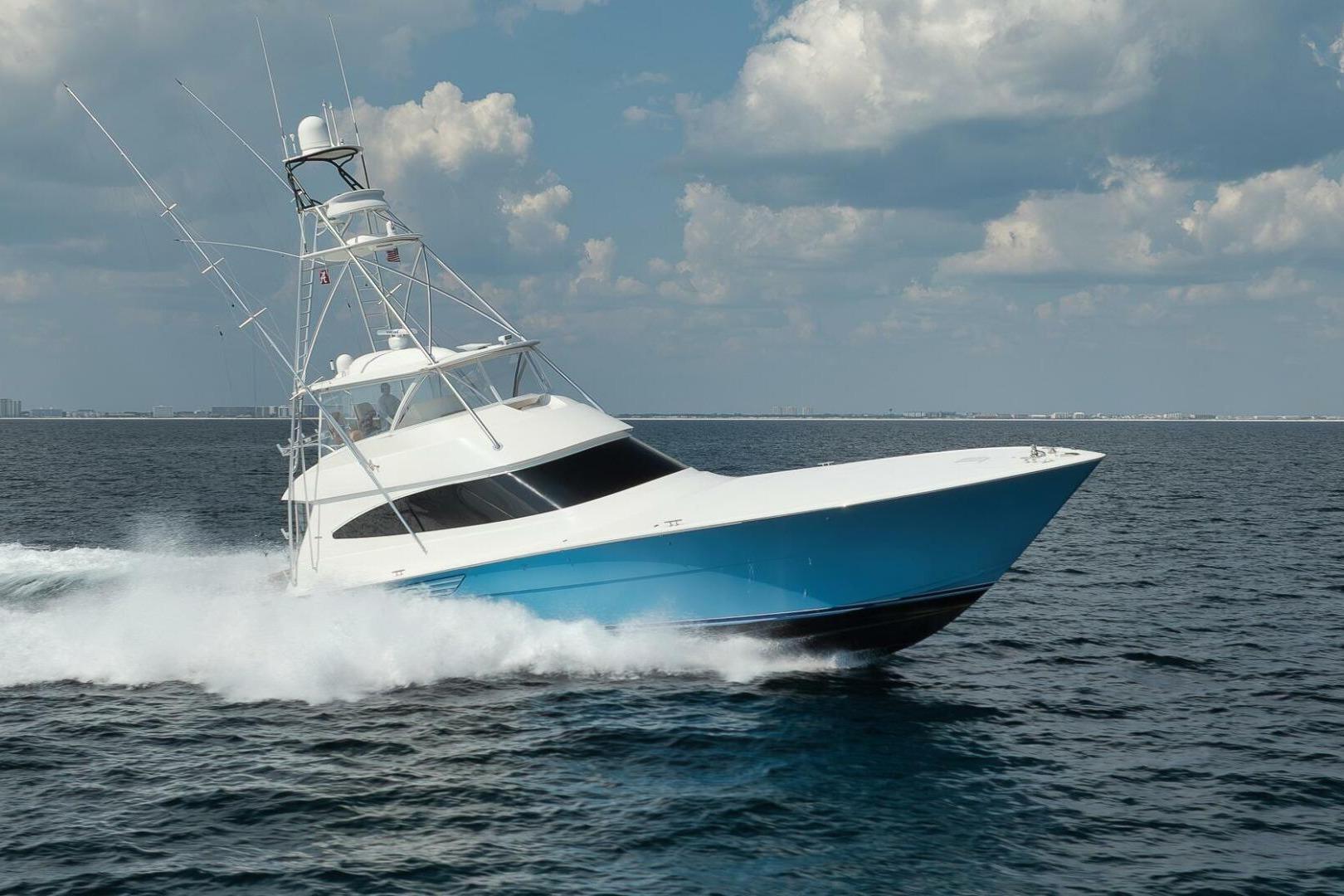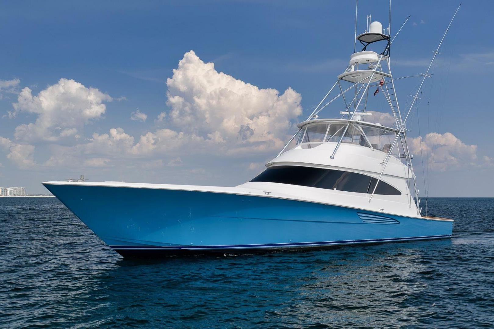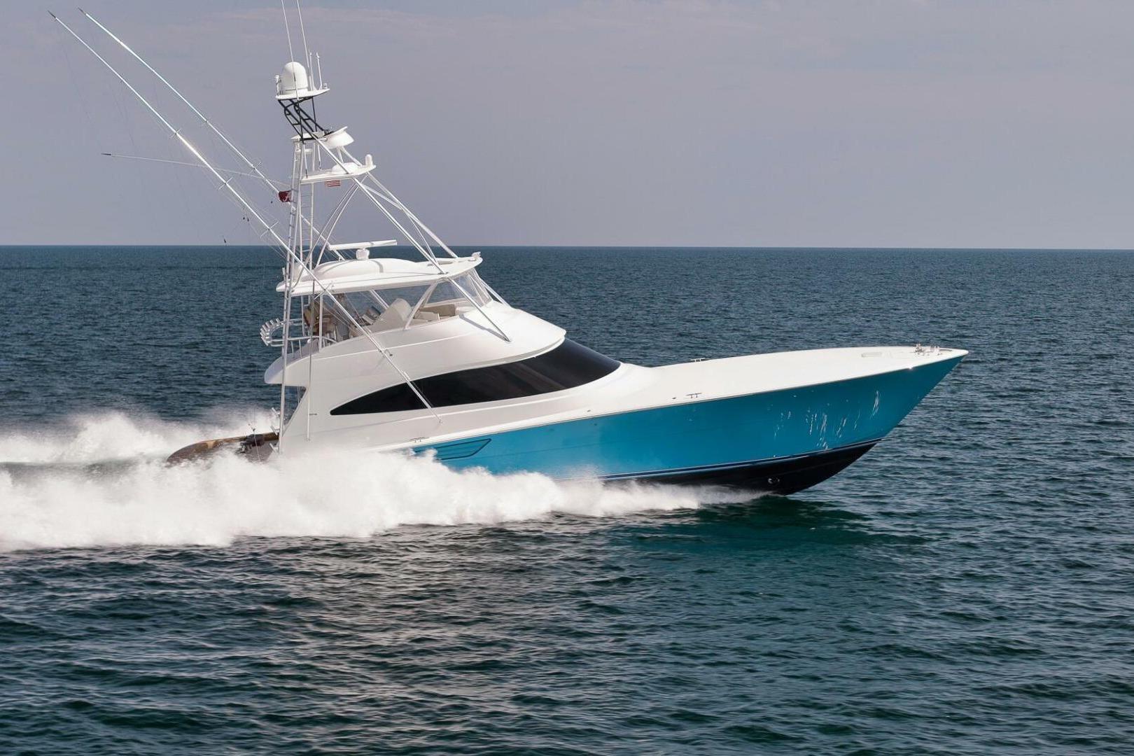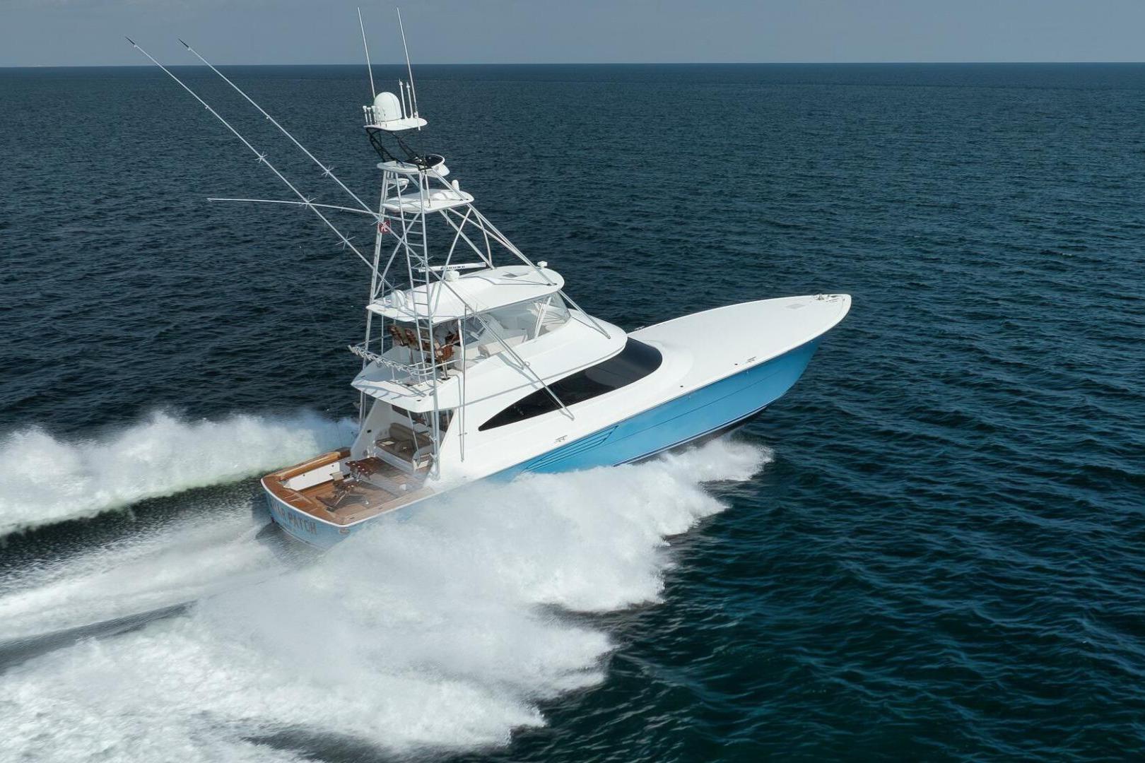 2019 68' Viking Convertible "Galati Yacht Sales Incoming Trade" for sale- She encompasses a truly exceptional build, dialed in to the highest degree. Very well maintained from both an aesthetic and mechanical perspective. The 68 offers a spectacular 4-stateroom, 4.5-head layout, coupled with a smooth, quiet, and dry ride. Propelled with proven MTU 12V 2000 M96Ls, She offers a comfortable 34-knot cruise and a 40-knot barrier top end. Other than the ’68’s stellar performance, the true attraction of this vessel lies within its spacious salon with raised dinette and open galley island arrangement. View the pop-up TV on a mechanical lift to starboard from any vantage point, or the second additional TV mounted forward above the dinette. The large and spacious walk-in pantry forward of the galley is a game-changer and sure to please those looking for convenient access to organized storage space. Just forward down the companionway from the pantry, you will find easy access to the generous crew’s quarters with a second Octoplex control and access to the engine room. With her eye-catching Bahama Blue Hull, she is fully equipped with tournament-rigged gear, including a second Seakeeper, which further enhances the already impressive roll reduction. She is ready to travel or hit the tournament circuit with services up to date and the balance of engine warranty in place until October 30, 2026, or 4495 hours, whichever comes first. Take advantage of this extensive build, complete with hours of painstaking detail! The first-class tuna tube set-up includes a full-depth live well, on-deck livewell feeds, and electric reel outlets. Her Release Marine trillion helm and fighting chair package, omni sonar, upgraded AC vents in mezzanine armrests set this boat apart. Our trade will not disappoint. It checks all the boxes to be a turn-key tournament-winning Sportfish.