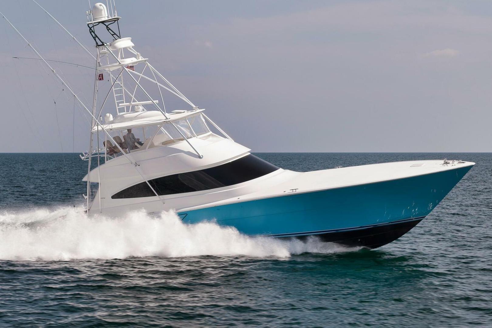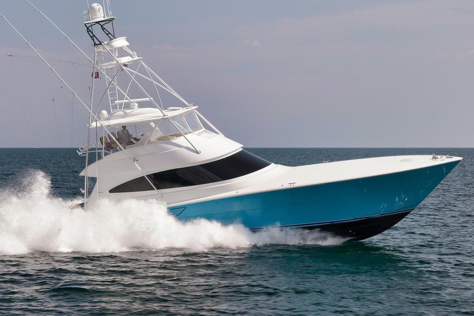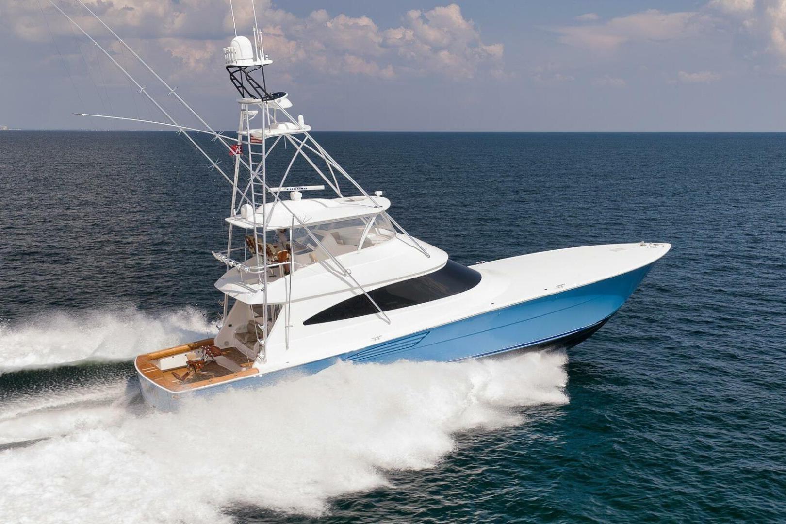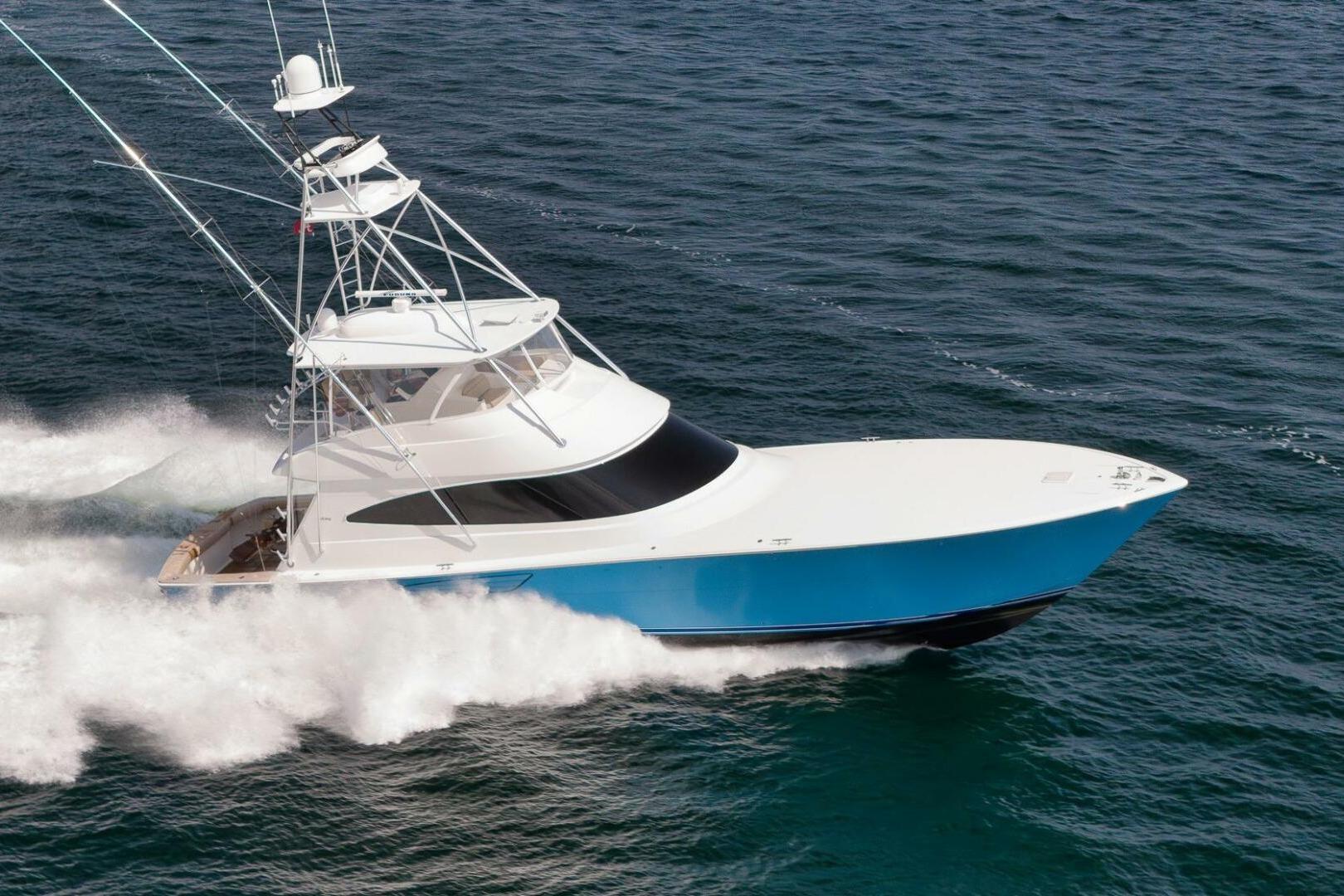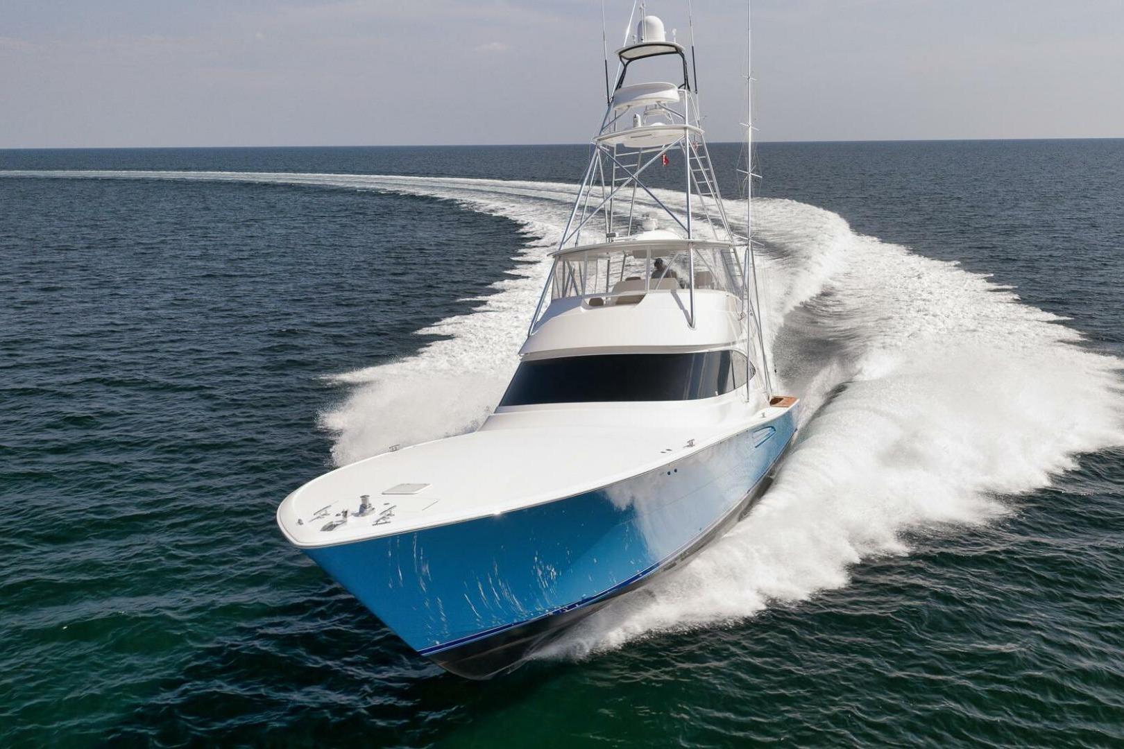 2019 68' Viking Convertible "Galati Yacht Sales Incoming Trade" for sale- She encompasses a truly exceptional build, dialed in to the highest degree. Very well maintained from both an aesthetic and mechanical perspective. The 68 offers a spectacular 4-stateroom, 4.5-head layout, coupled with a smooth, quiet, and dry ride. Propelled with proven MTU 12V 2000 M96Ls, She offers a comfortable 34-knot cruise and a 40-knot barrier top end. Other than the ’68’s stellar performance, the true attraction of this vessel lies within its spacious salon with raised dinette and open galley island arrangement. View the pop-up TV on a mechanical lift to starboard from any vantage point, or the second additional TV mounted forward above the dinette. The large and spacious walk-in pantry forward of the galley is a game-changer and sure to please those looking for convenient access to organized storage space. Just forward down the companionway from the pantry, you will find easy access to the generous crew’s quarters with a second Octoplex control and access to the engine room. With her eye-catching Bahama Blue Hull, she is fully equipped with tournament-rigged gear, including a second Seakeeper, which further enhances the already impressive roll reduction. She is ready to travel or hit the tournament circuit with services up to date and the balance of engine warranty in place until October 30, 2026, or 4495 hours, whichever comes first. Take advantage of this extensive build, complete with hours of painstaking detail! The first-class tuna tube set-up includes a full-depth live well, on-deck livewell feeds, and electric reel outlets. Her Release Marine trillion helm and fighting chair package, omni sonar, upgraded AC vents in mezzanine armrests set this boat apart. Our trade will not disappoint. It checks all the boxes to be a turn-key tournament-winning Sportfish.