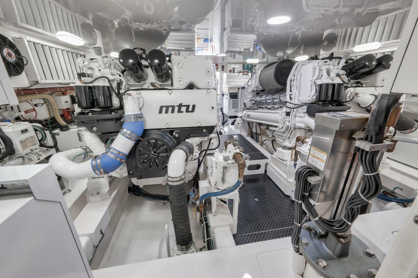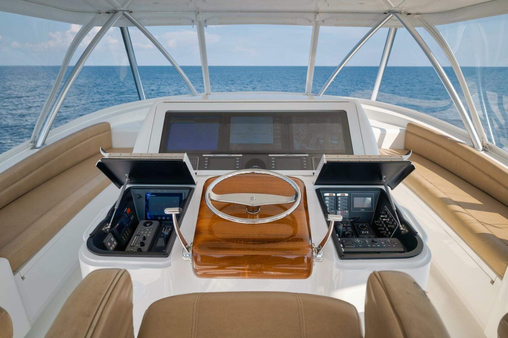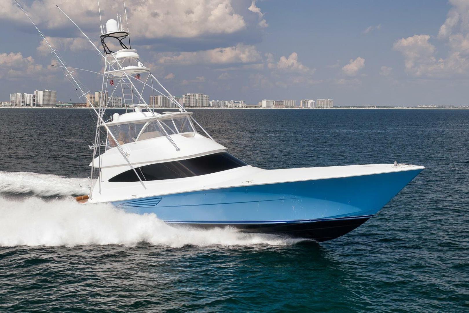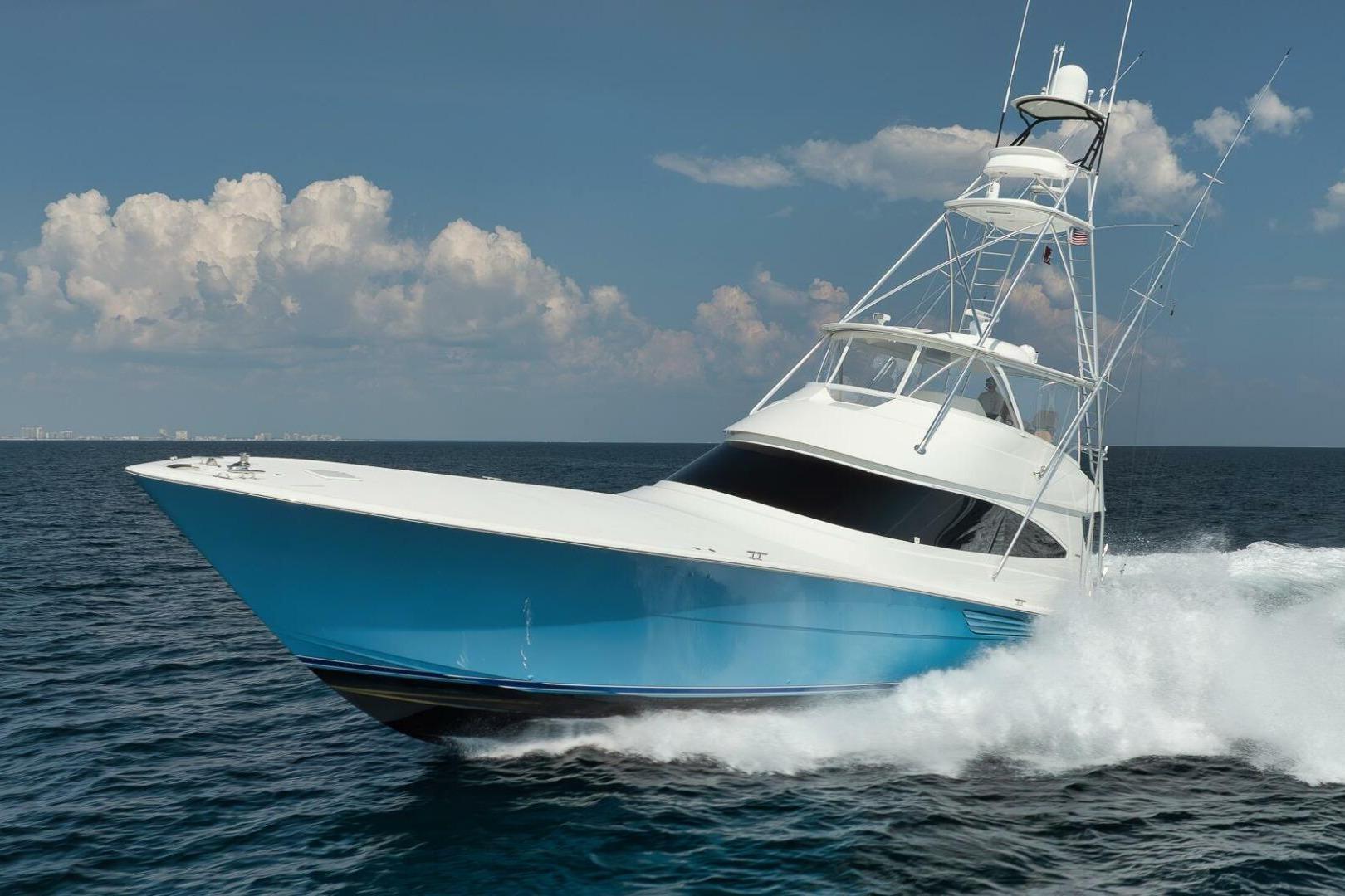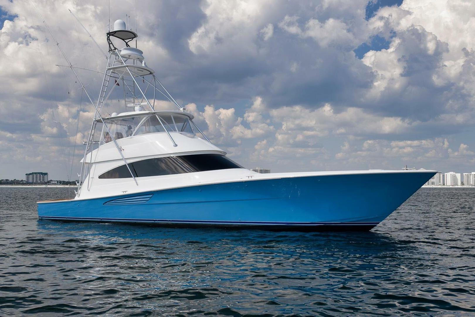 2019 68' Viking Convertible "Galati Yacht Sales Incoming Trade" for sale- She encompasses a truly exceptional build, dialed in to the highest degree. Very well maintained from both an aesthetic and mechanical perspective. The 68 offers a spectacular 4-stateroom, 4.5-head layout, coupled with a smooth, quiet, and dry ride. Propelled with proven MTU 12V 2000 M96Ls, She offers a comfortable 34-knot cruise and a 40-knot barrier top end. Other than the ’68’s stellar performance, the true attraction of this vessel lies within its spacious salon with raised dinette and open galley island arrangement. View the pop-up TV on a mechanical lift to starboard from any vantage point, or the second additional TV mounted forward above the dinette. The large and spacious walk-in pantry forward of the galley is a game-changer and sure to please those looking for convenient access to organized storage space. Just forward down the companionway from the pantry, you will find easy access to the generous crew’s quarters with a second Octoplex control and access to the engine room. With her eye-catching Bahama Blue Hull, she is fully equipped with tournament-rigged gear, including a second Seakeeper, which further enhances the already impressive roll reduction. She is ready to travel or hit the tournament circuit with services up to date and the balance of engine warranty in place until October 30, 2026, or 4495 hours, whichever comes first. Take advantage of this extensive build, complete with hours of painstaking detail! The first-class tuna tube set-up includes a full-depth live well, on-deck livewell feeds, and electric reel outlets. Her Release Marine trillion helm and fighting chair package, omni sonar, upgraded AC vents in mezzanine armrests set this boat apart. Our trade will not disappoint. It checks all the boxes to be a turn-key tournament-winning Sportfish.
