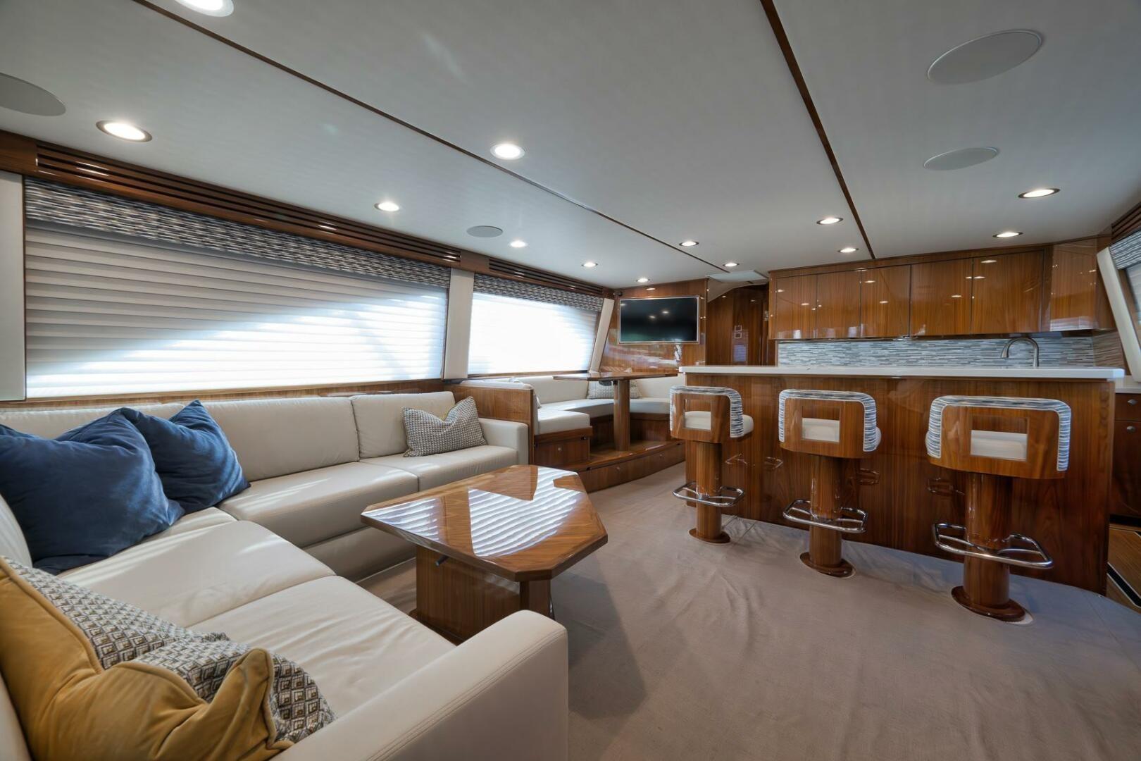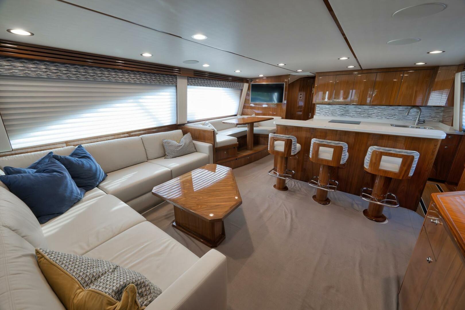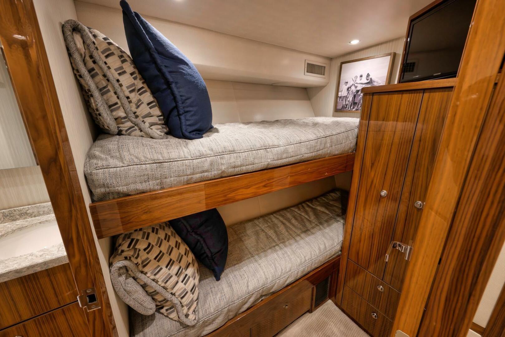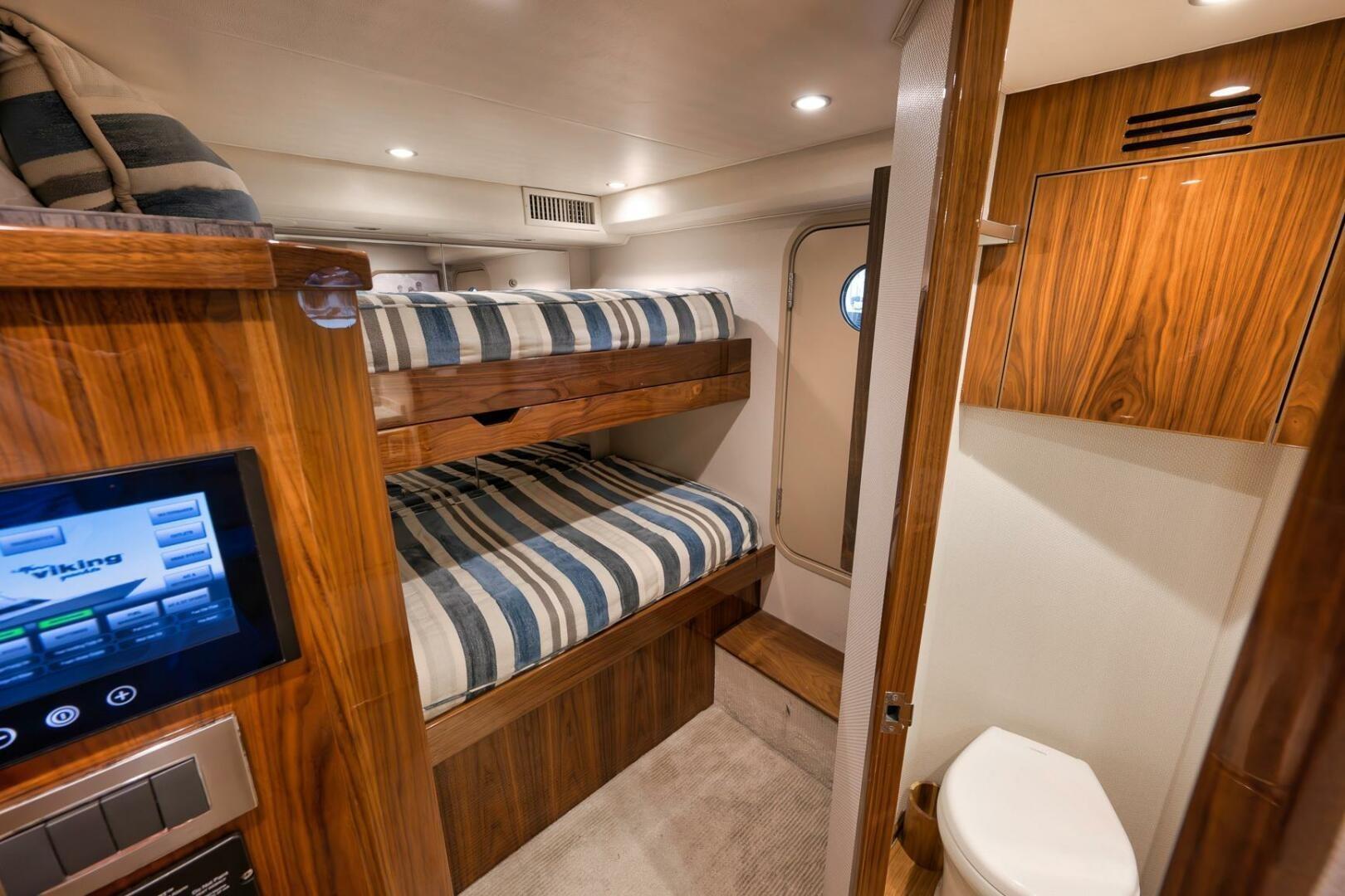 2019 68' Viking Convertible "Galati Yacht Sales Incoming Trade" for sale- She encompasses a truly exceptional build, dialed in to the highest degree. Very well maintained from both an aesthetic and mechanical perspective. The 68 offers a spectacular 4-stateroom, 4.5-head layout, coupled with a smooth, quiet, and dry ride. Propelled with proven MTU 12V 2000 M96Ls, She offers a comfortable 34-knot cruise and a 40-knot barrier top end. Other than the ’68’s stellar performance, the true attraction of this vessel lies within its spacious salon with raised dinette and open galley island arrangement. View the pop-up TV on a mechanical lift to starboard from any vantage point, or the second additional TV mounted forward above the dinette. The large and spacious walk-in pantry forward of the galley is a game-changer and sure to please those looking for convenient access to organized storage space. Just forward down the companionway from the pantry, you will find easy access to the generous crew’s quarters with a second Octoplex control and access to the engine room. With her eye-catching Bahama Blue Hull, she is fully equipped with tournament-rigged gear, including a second Seakeeper, which further enhances the already impressive roll reduction. She is ready to travel or hit the tournament circuit with services up to date and the balance of engine warranty in place until October 30, 2026, or 4495 hours, whichever comes first. Take advantage of this extensive build, complete with hours of painstaking detail! The first-class tuna tube set-up includes a full-depth live well, on-deck livewell feeds, and electric reel outlets. Her Release Marine trillion helm and fighting chair package, omni sonar, upgraded AC vents in mezzanine armrests set this boat apart. Our trade will not disappoint. It checks all the boxes to be a turn-key tournament-winning Sportfish.