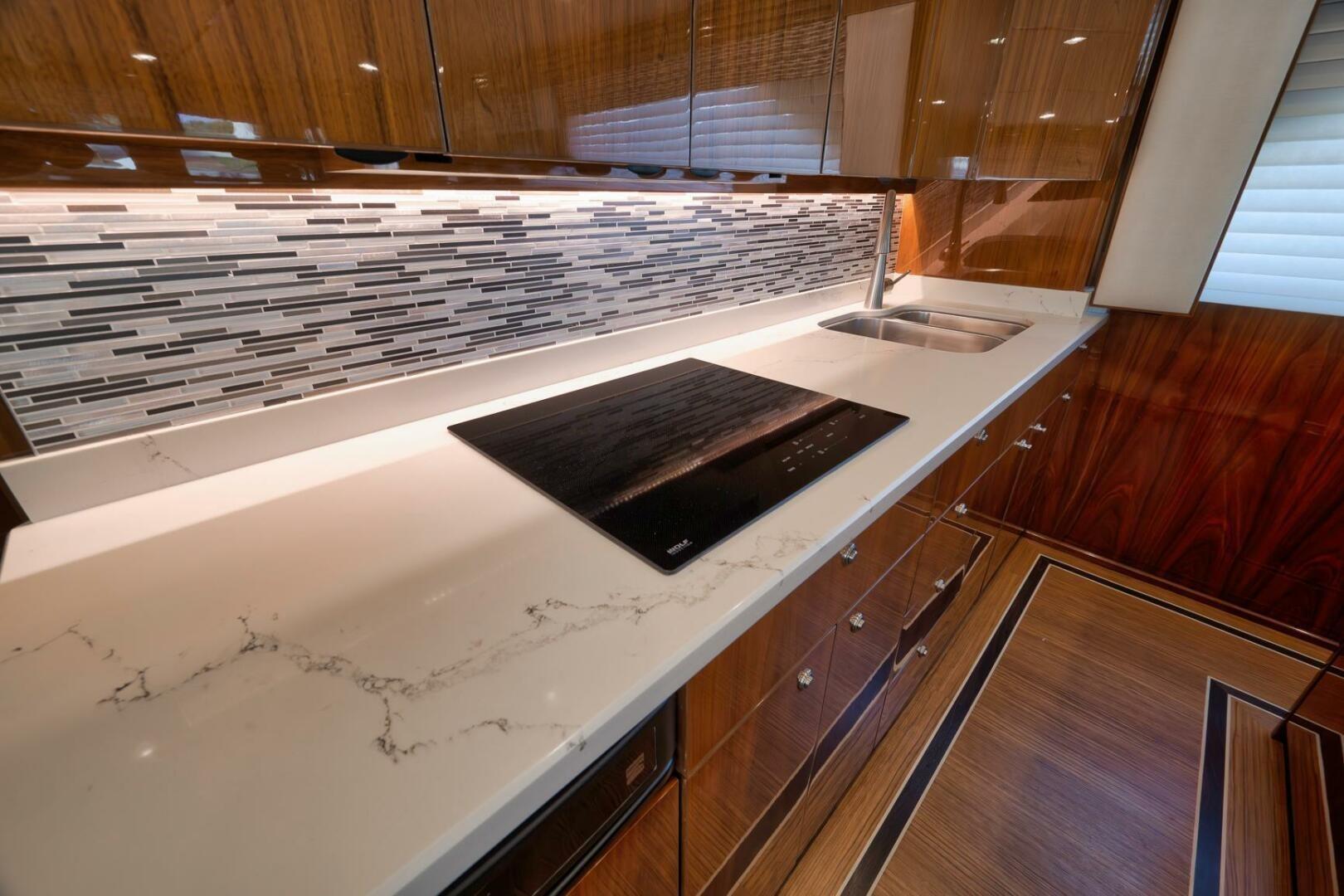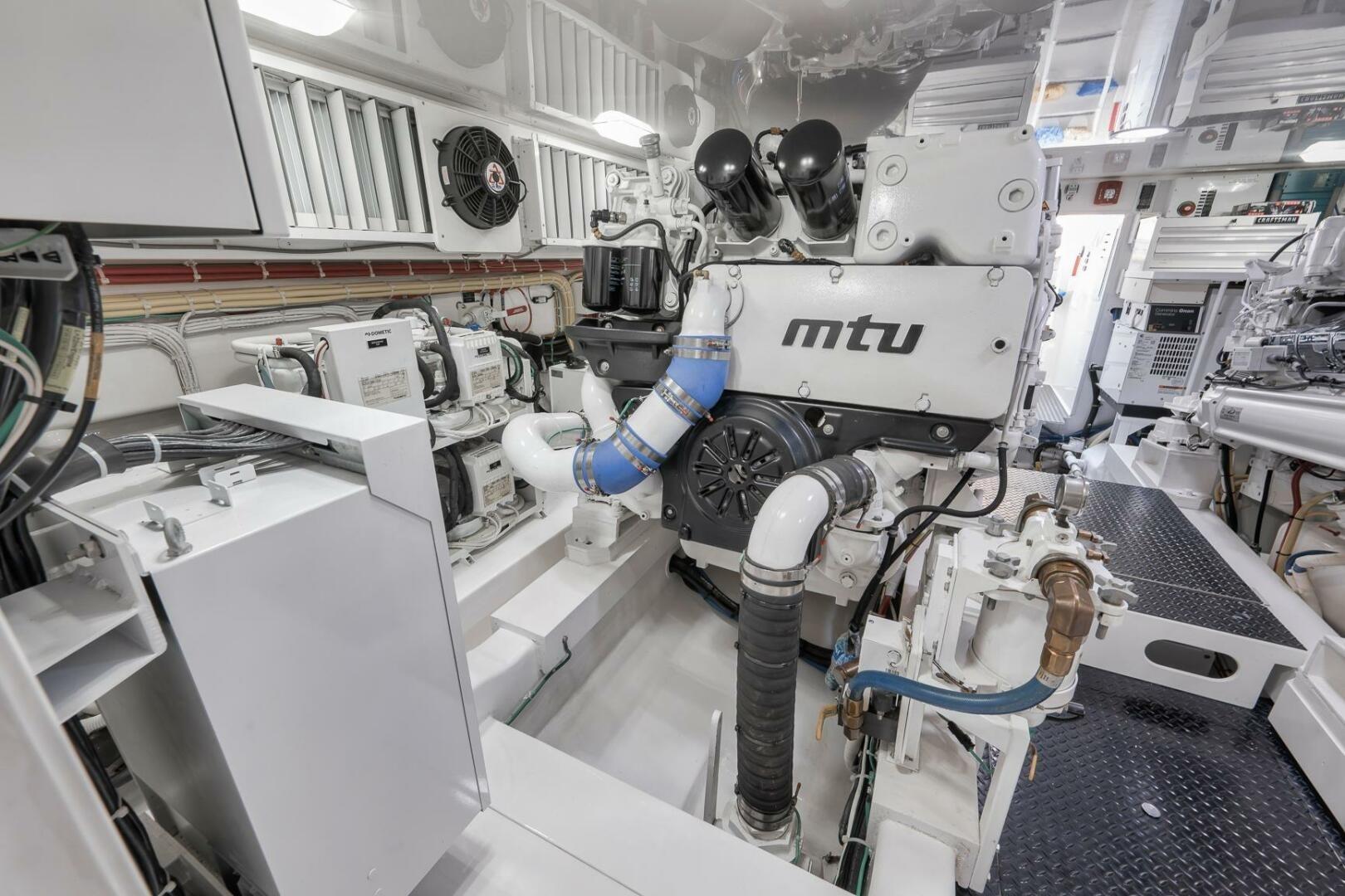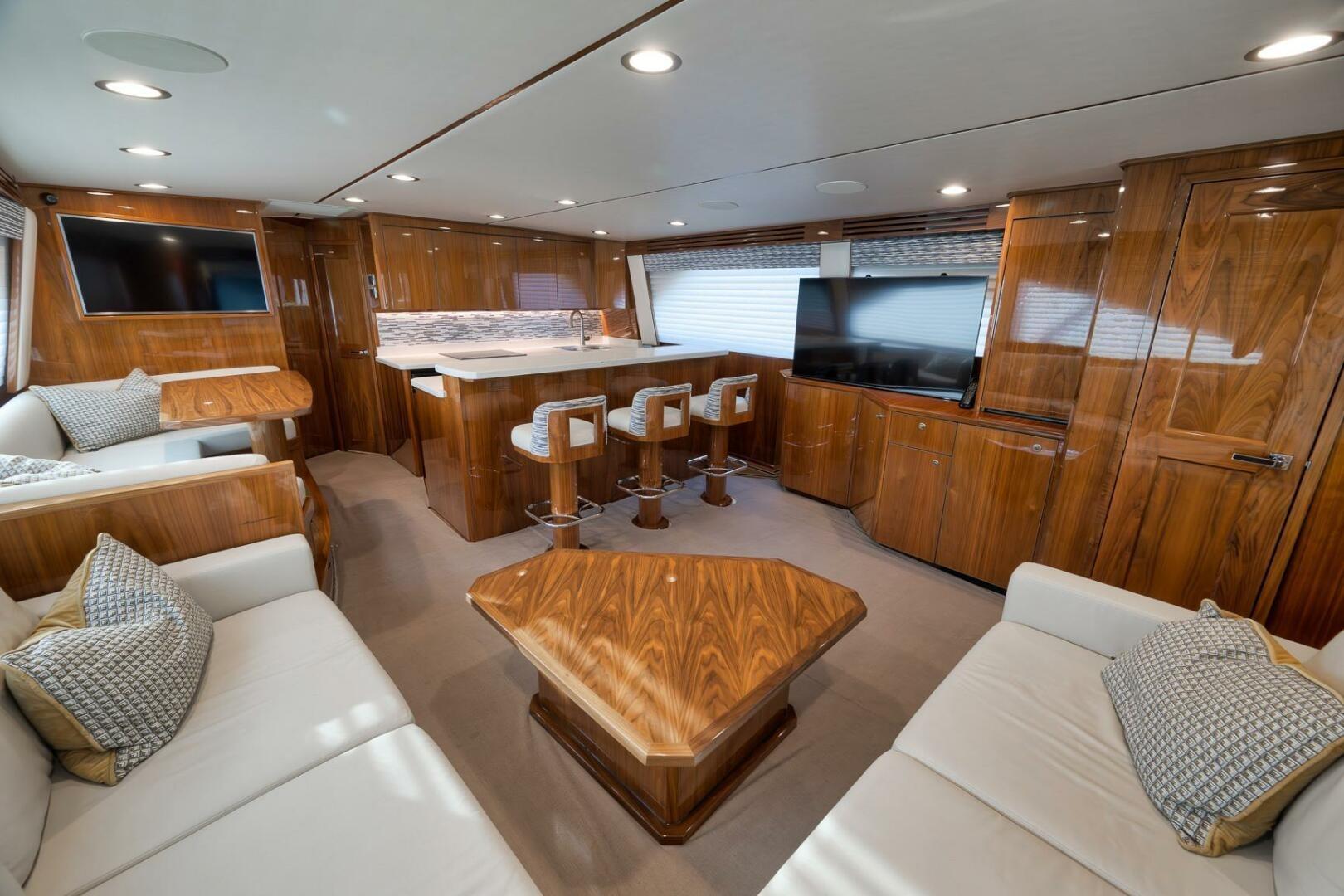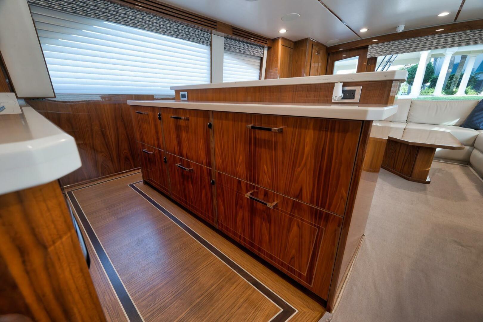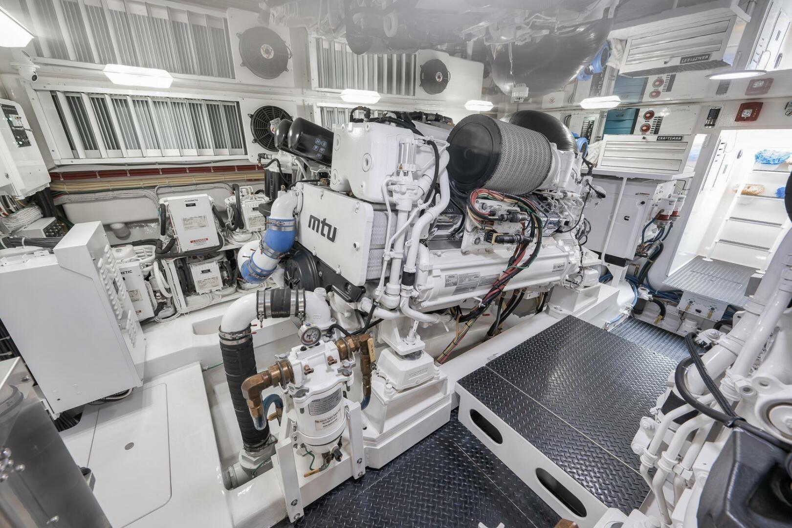 2019 68' Viking Convertible "Galati Yacht Sales Incoming Trade" for sale- She encompasses a truly exceptional build, dialed in to the highest degree. Very well maintained from both an aesthetic and mechanical perspective. The 68 offers a spectacular 4-stateroom, 4.5-head layout, coupled with a smooth, quiet, and dry ride. Propelled with proven MTU 12V 2000 M96Ls, She offers a comfortable 34-knot cruise and a 40-knot barrier top end. Other than the ’68’s stellar performance, the true attraction of this vessel lies within its spacious salon with raised dinette and open galley island arrangement. View the pop-up TV on a mechanical lift to starboard from any vantage point, or the second additional TV mounted forward above the dinette. The large and spacious walk-in pantry forward of the galley is a game-changer and sure to please those looking for convenient access to organized storage space. Just forward down the companionway from the pantry, you will find easy access to the generous crew’s quarters with a second Octoplex control and access to the engine room. With her eye-catching Bahama Blue Hull, she is fully equipped with tournament-rigged gear, including a second Seakeeper, which further enhances the already impressive roll reduction. She is ready to travel or hit the tournament circuit with services up to date and the balance of engine warranty in place until October 30, 2026, or 4495 hours, whichever comes first. Take advantage of this extensive build, complete with hours of painstaking detail! The first-class tuna tube set-up includes a full-depth live well, on-deck livewell feeds, and electric reel outlets. Her Release Marine trillion helm and fighting chair package, omni sonar, upgraded AC vents in mezzanine armrests set this boat apart. Our trade will not disappoint. It checks all the boxes to be a turn-key tournament-winning Sportfish.