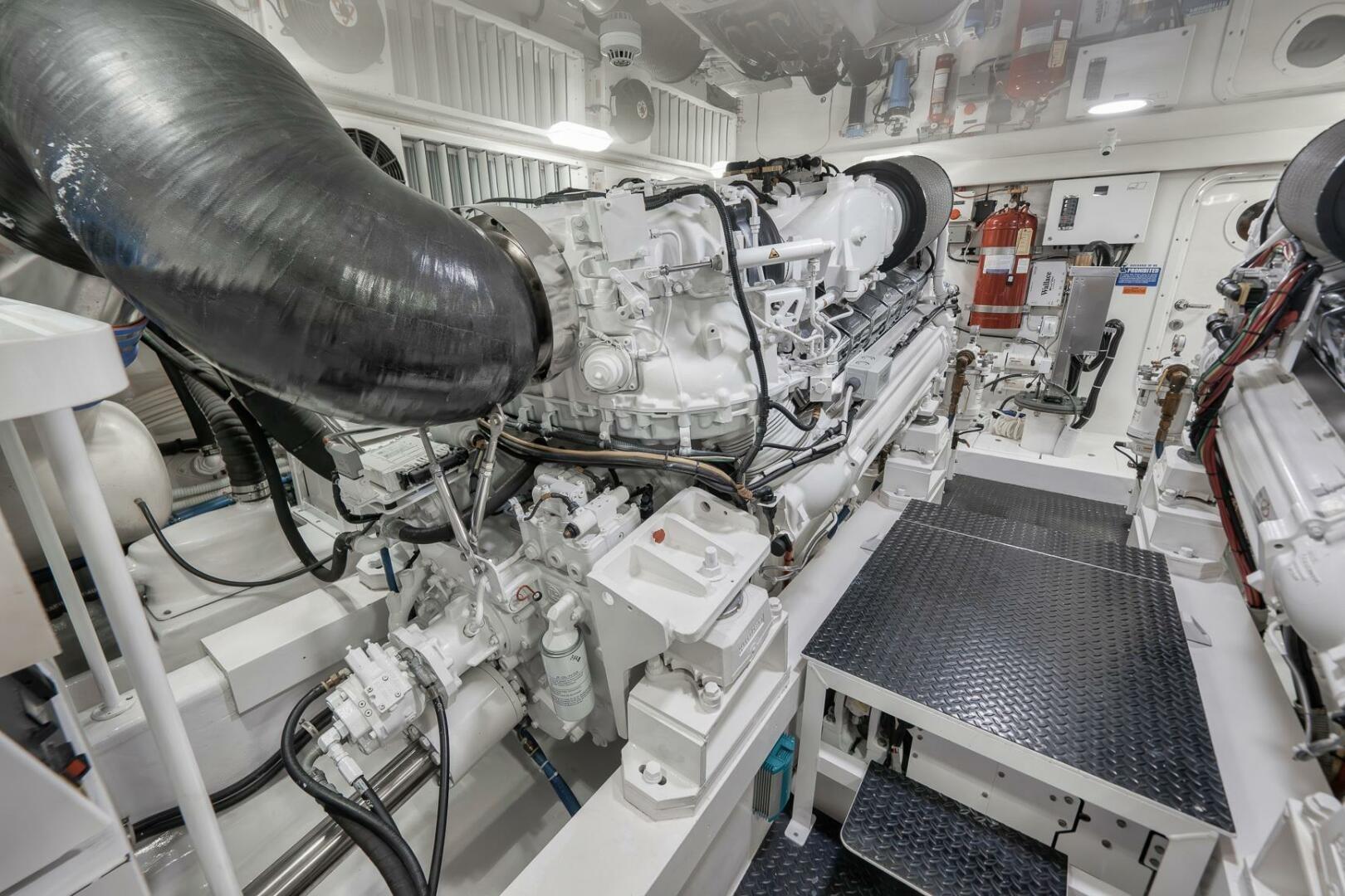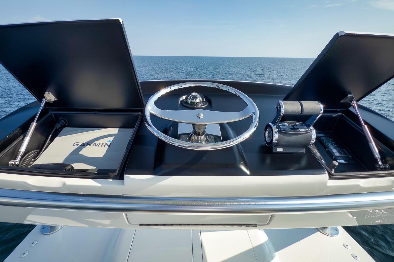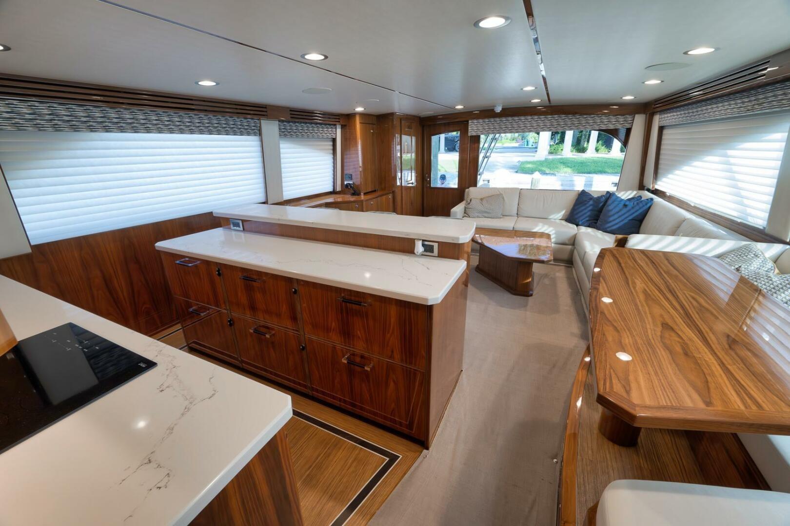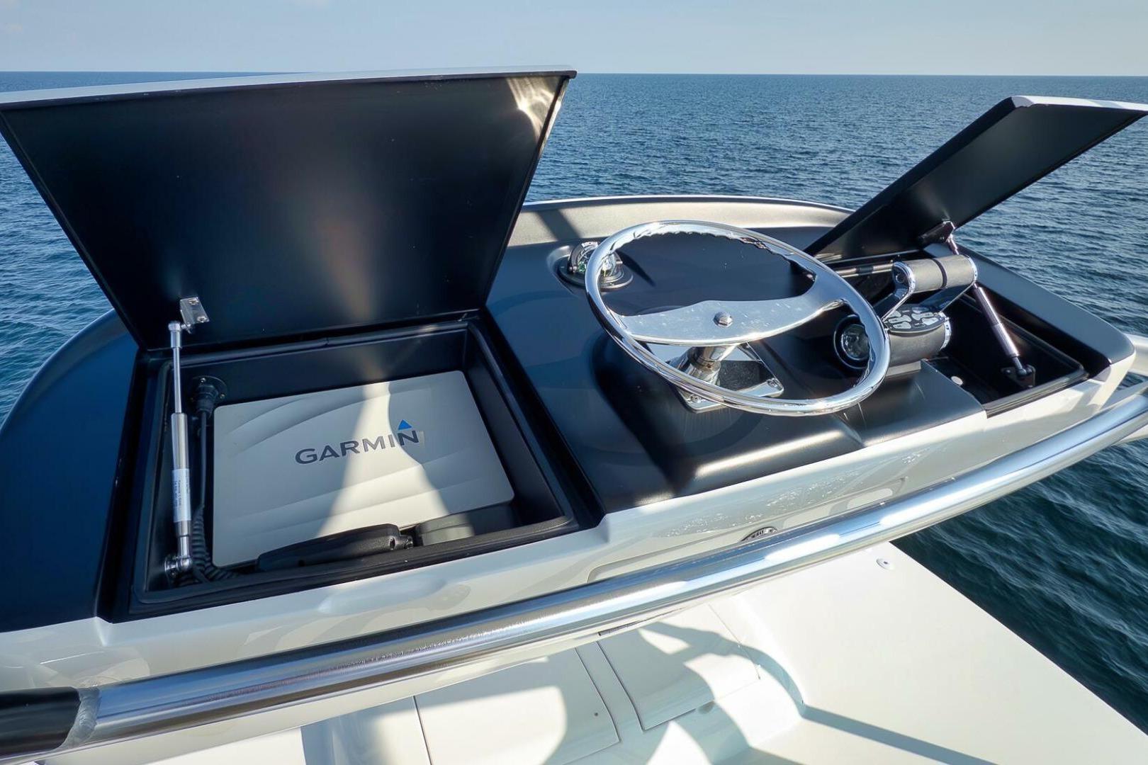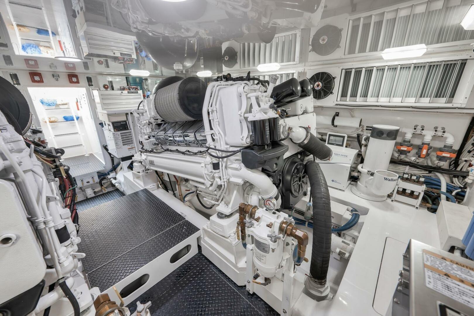 2019 68' Viking Convertible "Galati Yacht Sales Incoming Trade" for sale- She encompasses a truly exceptional build, dialed in to the highest degree. Very well maintained from both an aesthetic and mechanical perspective. The 68 offers a spectacular 4-stateroom, 4.5-head layout, coupled with a smooth, quiet, and dry ride. Propelled with proven MTU 12V 2000 M96Ls, She offers a comfortable 34-knot cruise and a 40-knot barrier top end. Other than the ’68’s stellar performance, the true attraction of this vessel lies within its spacious salon with raised dinette and open galley island arrangement. View the pop-up TV on a mechanical lift to starboard from any vantage point, or the second additional TV mounted forward above the dinette. The large and spacious walk-in pantry forward of the galley is a game-changer and sure to please those looking for convenient access to organized storage space. Just forward down the companionway from the pantry, you will find easy access to the generous crew’s quarters with a second Octoplex control and access to the engine room. With her eye-catching Bahama Blue Hull, she is fully equipped with tournament-rigged gear, including a second Seakeeper, which further enhances the already impressive roll reduction. She is ready to travel or hit the tournament circuit with services up to date and the balance of engine warranty in place until October 30, 2026, or 4495 hours, whichever comes first. Take advantage of this extensive build, complete with hours of painstaking detail! The first-class tuna tube set-up includes a full-depth live well, on-deck livewell feeds, and electric reel outlets. Her Release Marine trillion helm and fighting chair package, omni sonar, upgraded AC vents in mezzanine armrests set this boat apart. Our trade will not disappoint. It checks all the boxes to be a turn-key tournament-winning Sportfish.