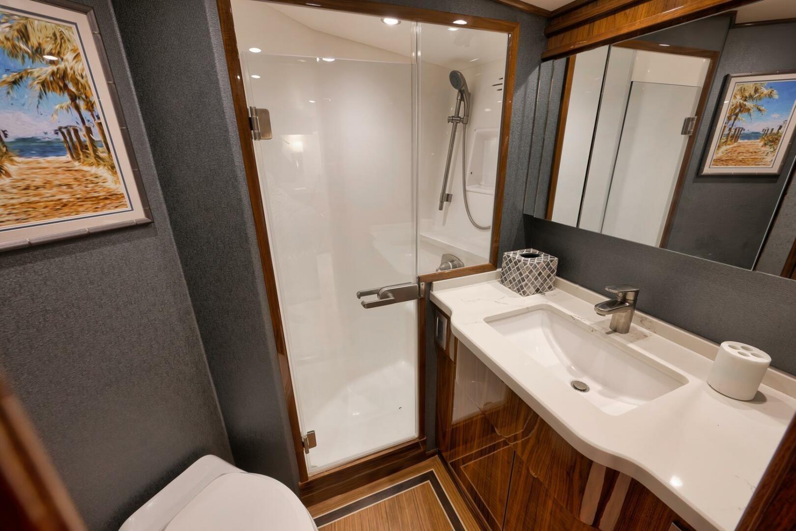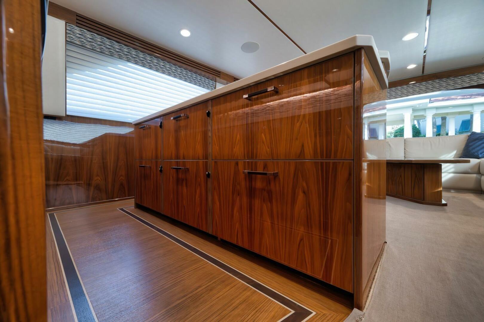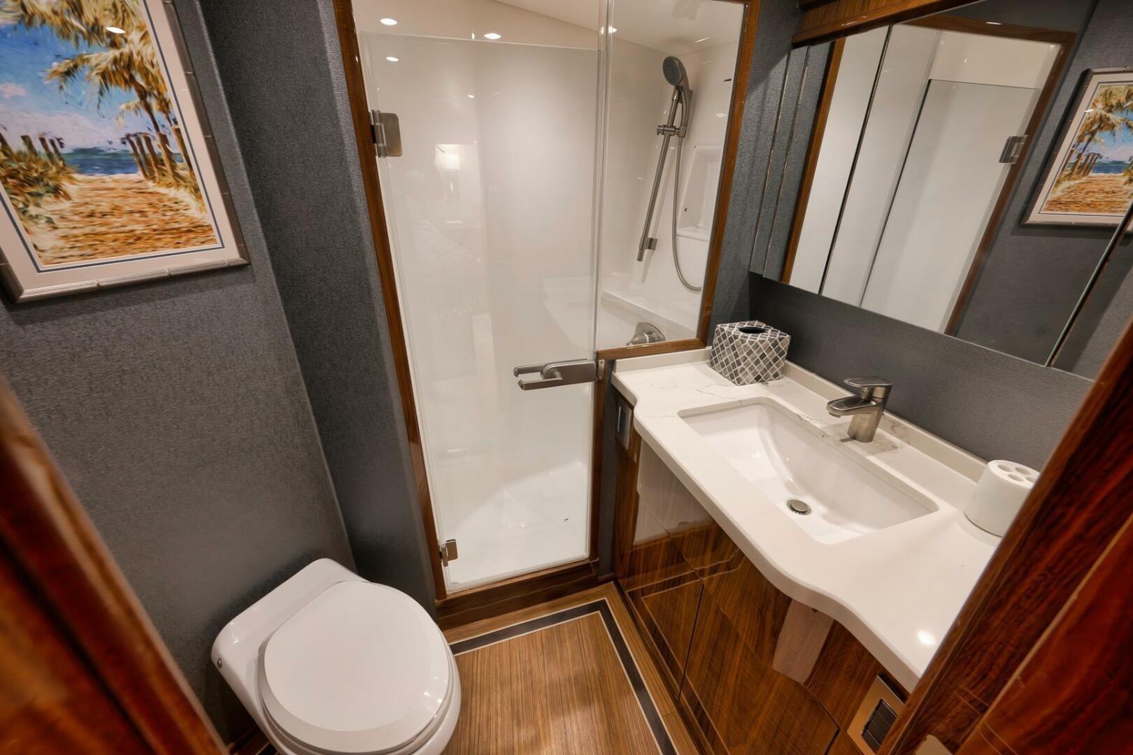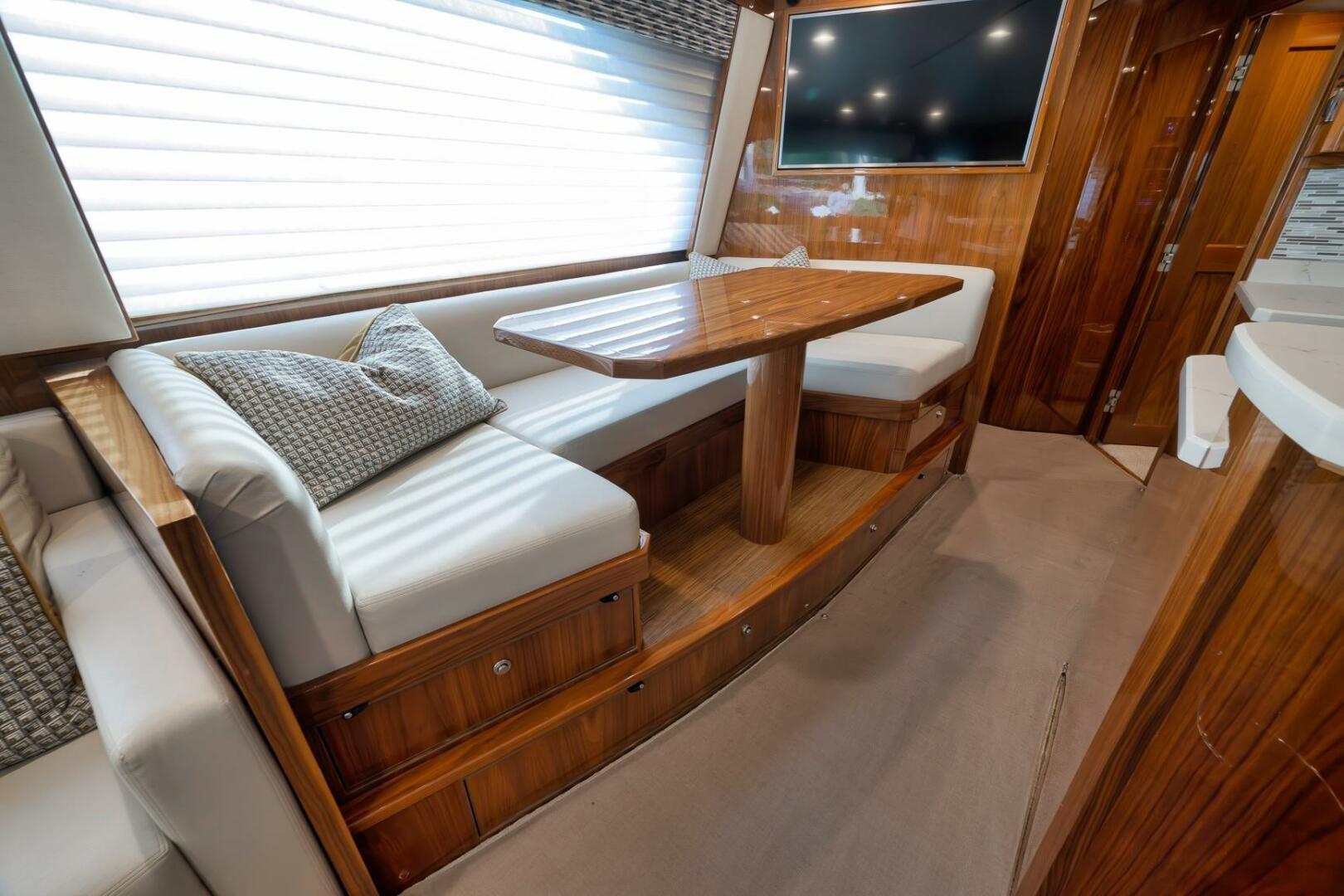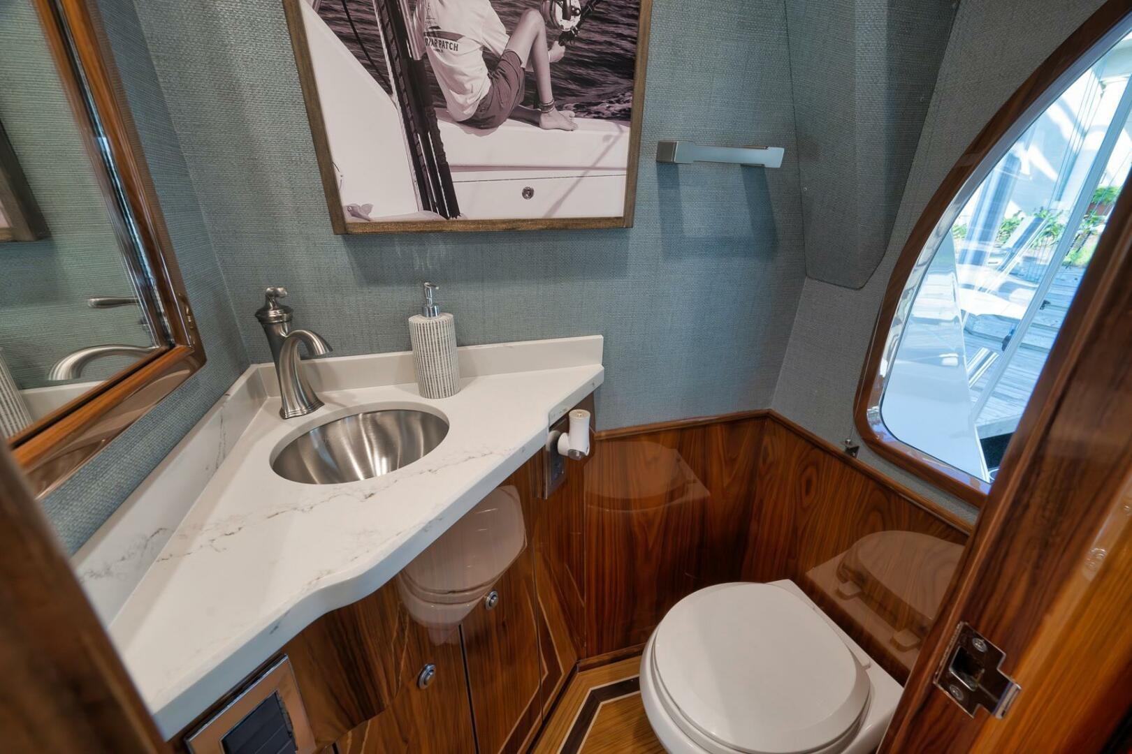 2019 68' Viking Convertible "Galati Yacht Sales Incoming Trade" for sale- She encompasses a truly exceptional build, dialed in to the highest degree. Very well maintained from both an aesthetic and mechanical perspective. The 68 offers a spectacular 4-stateroom, 4.5-head layout, coupled with a smooth, quiet, and dry ride. Propelled with proven MTU 12V 2000 M96Ls, She offers a comfortable 34-knot cruise and a 40-knot barrier top end. Other than the ’68’s stellar performance, the true attraction of this vessel lies within its spacious salon with raised dinette and open galley island arrangement. View the pop-up TV on a mechanical lift to starboard from any vantage point, or the second additional TV mounted forward above the dinette. The large and spacious walk-in pantry forward of the galley is a game-changer and sure to please those looking for convenient access to organized storage space. Just forward down the companionway from the pantry, you will find easy access to the generous crew’s quarters with a second Octoplex control and access to the engine room. With her eye-catching Bahama Blue Hull, she is fully equipped with tournament-rigged gear, including a second Seakeeper, which further enhances the already impressive roll reduction. She is ready to travel or hit the tournament circuit with services up to date and the balance of engine warranty in place until October 30, 2026, or 4495 hours, whichever comes first. Take advantage of this extensive build, complete with hours of painstaking detail! The first-class tuna tube set-up includes a full-depth live well, on-deck livewell feeds, and electric reel outlets. Her Release Marine trillion helm and fighting chair package, omni sonar, upgraded AC vents in mezzanine armrests set this boat apart. Our trade will not disappoint. It checks all the boxes to be a turn-key tournament-winning Sportfish.