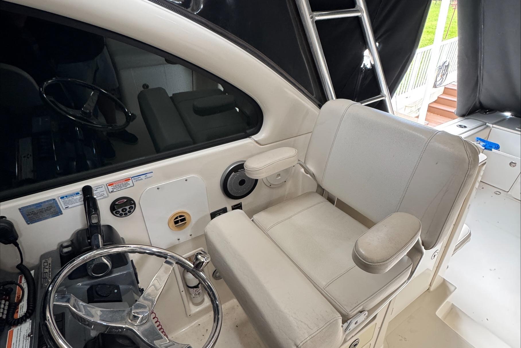 **PRELIMINARY LISTING**2007 Pursuit 335 Offshore with twin Yamaha 250hp fourstroke engines with 600hrs. Boat has been lift kept and well maintained. Equipment Includes:Westerbeke 5KW GeneratorAnchor Windlass10,000 BTU A/C with additional vent and fan installed at helmBow ThrusterDeep Drop Reel Plugs (2)Under Water Lights (2)ACR SpotlightCustom Seats (2)16' Telescopic OutriggersRefrigerator in cabinCustom Cover with Motor CoversElectronics:Raymarine E127 Hybrid Touch (SideVue, DownVue, Chirp Sonar & 1k Traditional Sonar)Raymarine A128 Touch Raymarine Dome RadarRaymarine ST6002 AutopilotRaymarine ST40 Digital DepthSAT WeatherCameras (2)A triple axle aluminum trailer is included "AS IS" with the boat.