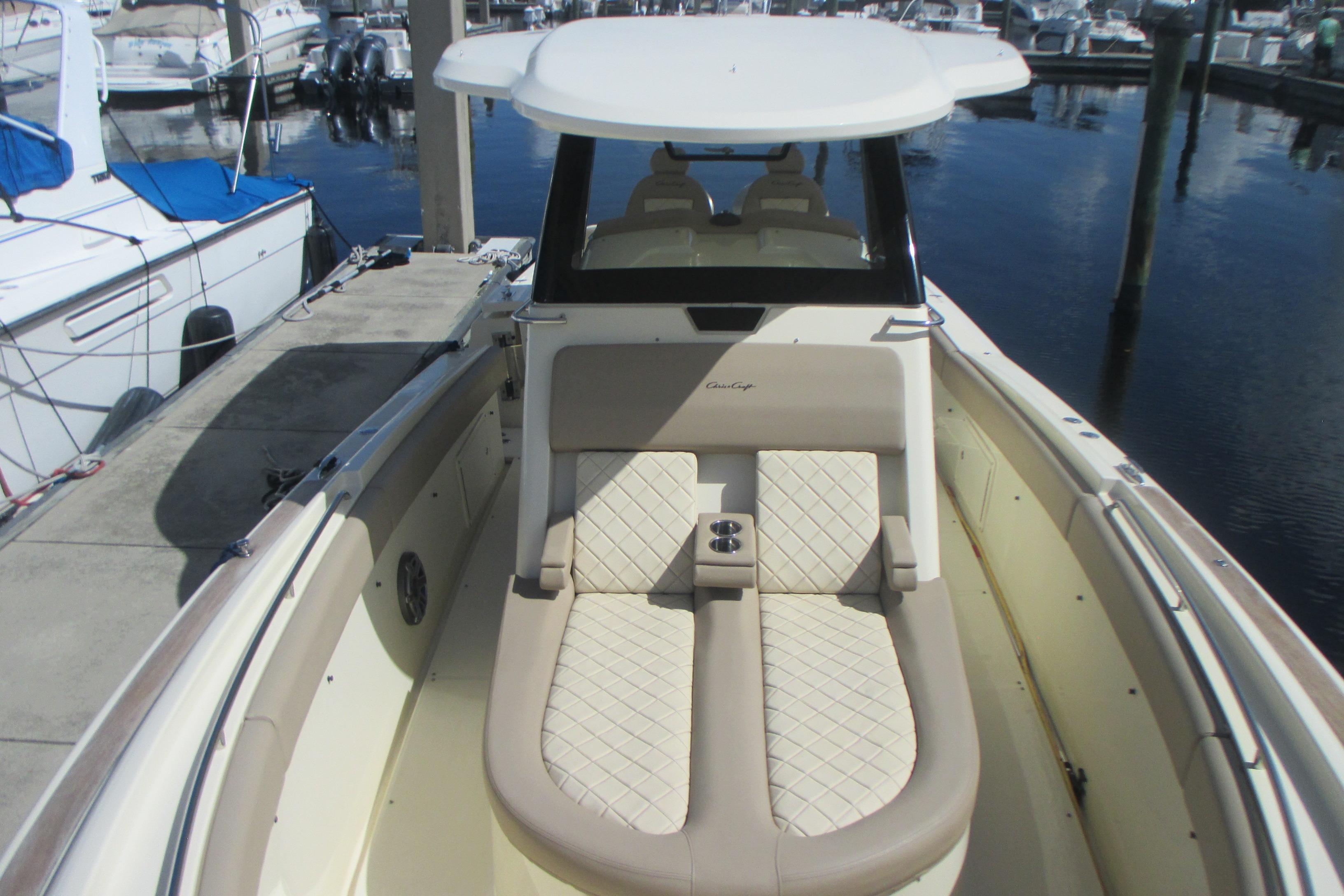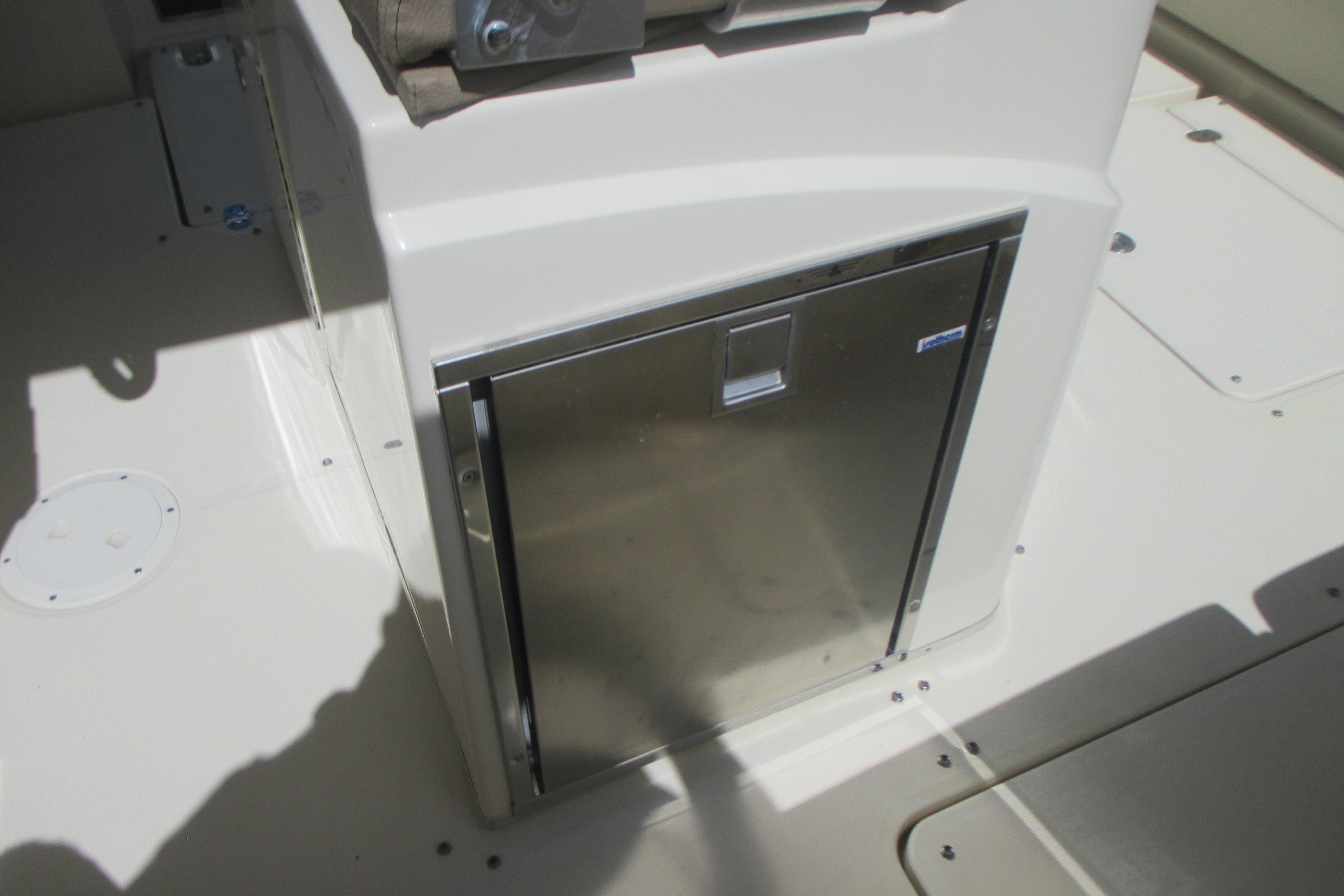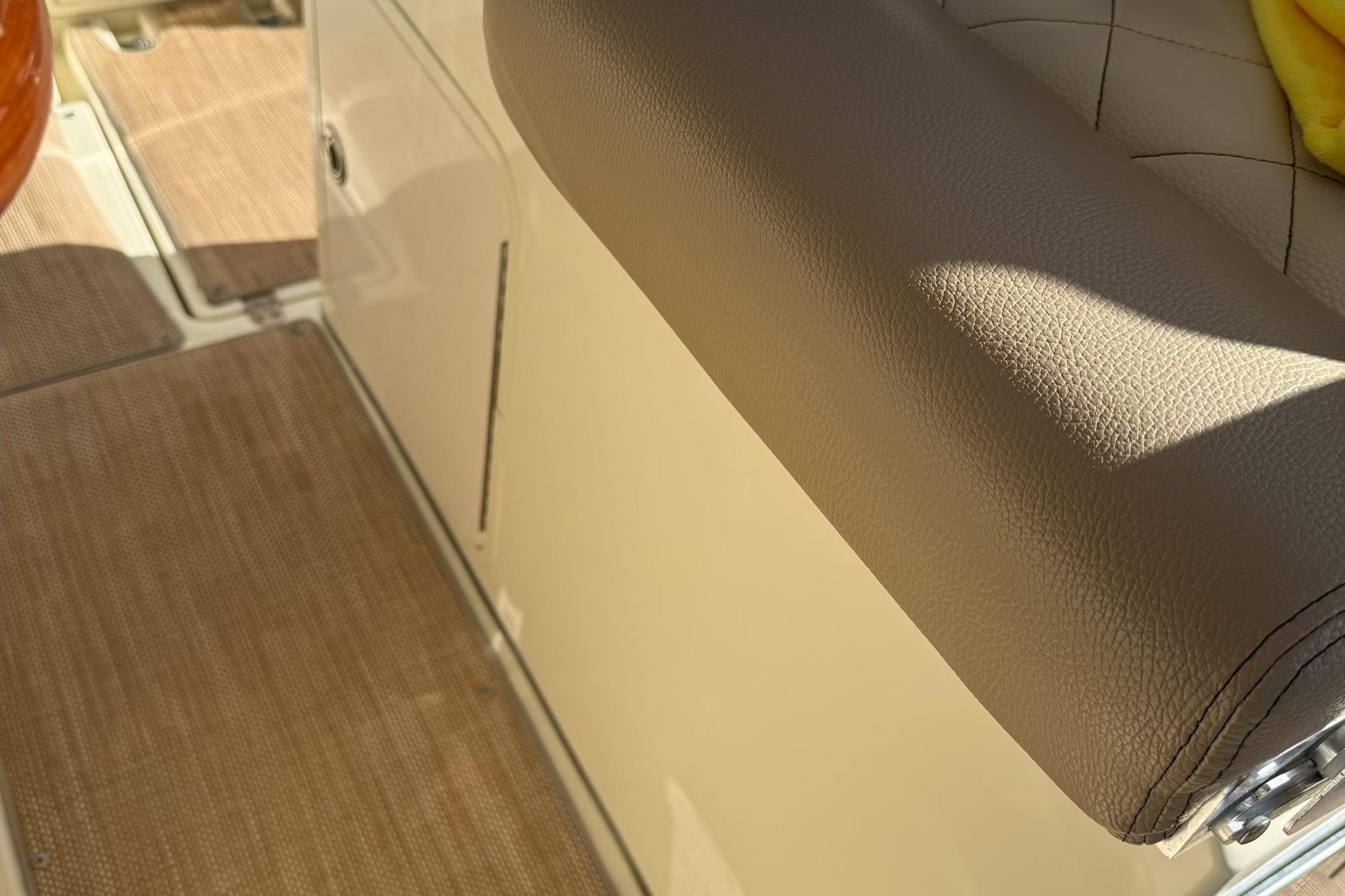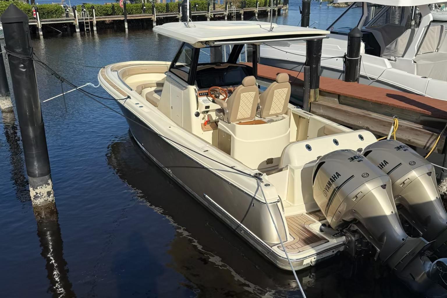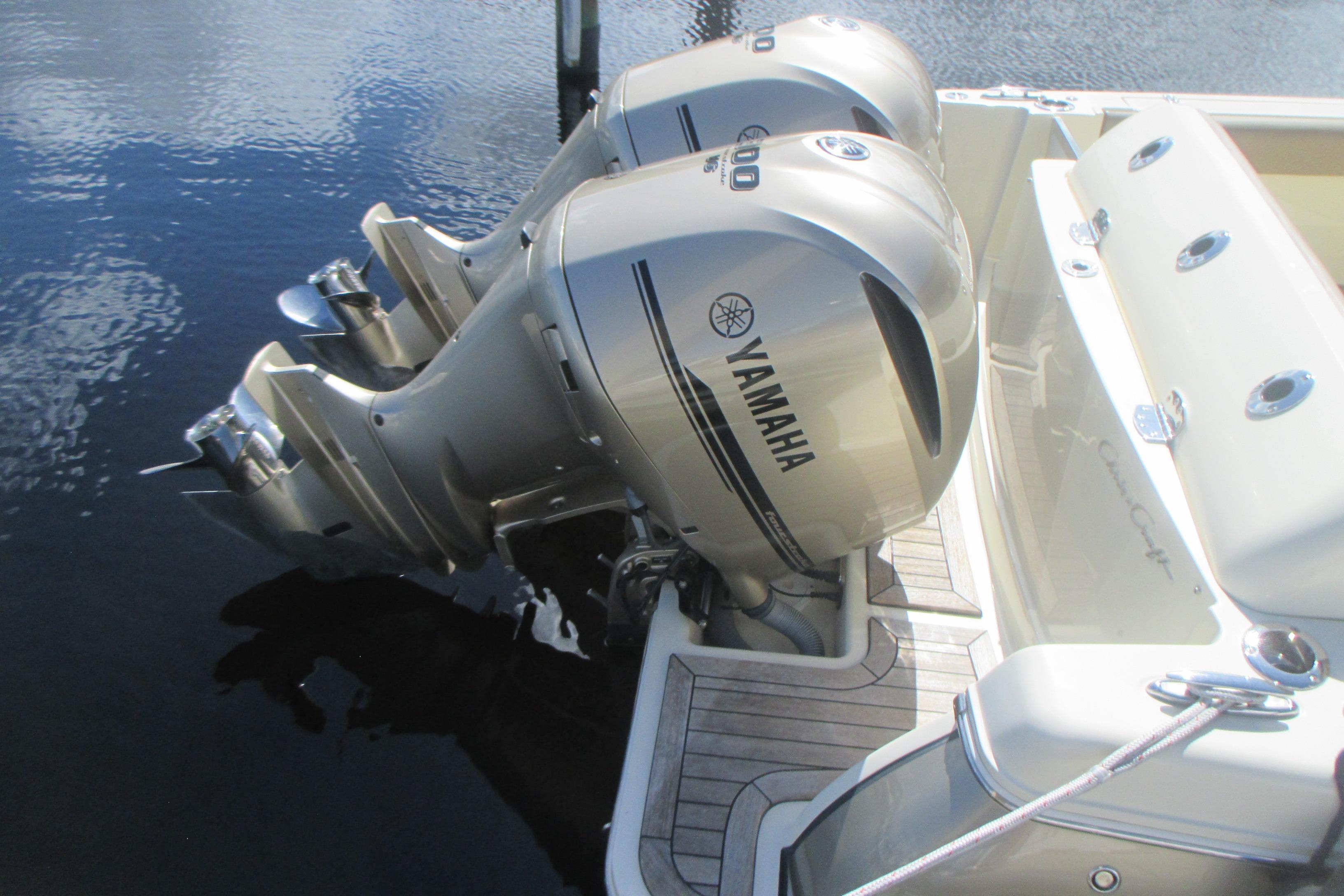 A luxury Center console that can fish, cruise or even weekend on! Beautiful Champagne hull color! Powered with the all new color matched Yamaha 300 HP with Joystick docking! Dometic DC Air Conditioning with Inverter, 3 battery chargers, Convertible aft lounge seating. Forward seating with sun pad, Isotherm, Cockpit fridge with wet bar and table, Enclosed head with Vacuflush toilet and Vanity, DC water heater, Double berth in cabin, Electric cockpit Sun shade, Auto anchor windlass with remote, Dual Garmin 16" screen with GPS plotter, sounder, auto pilot and VHF radio, Fusion Premium sound system with color matched JL audio speakers, Live well, Rod holders, Covers for everything plus a full mooring cover! SPOTLESS!