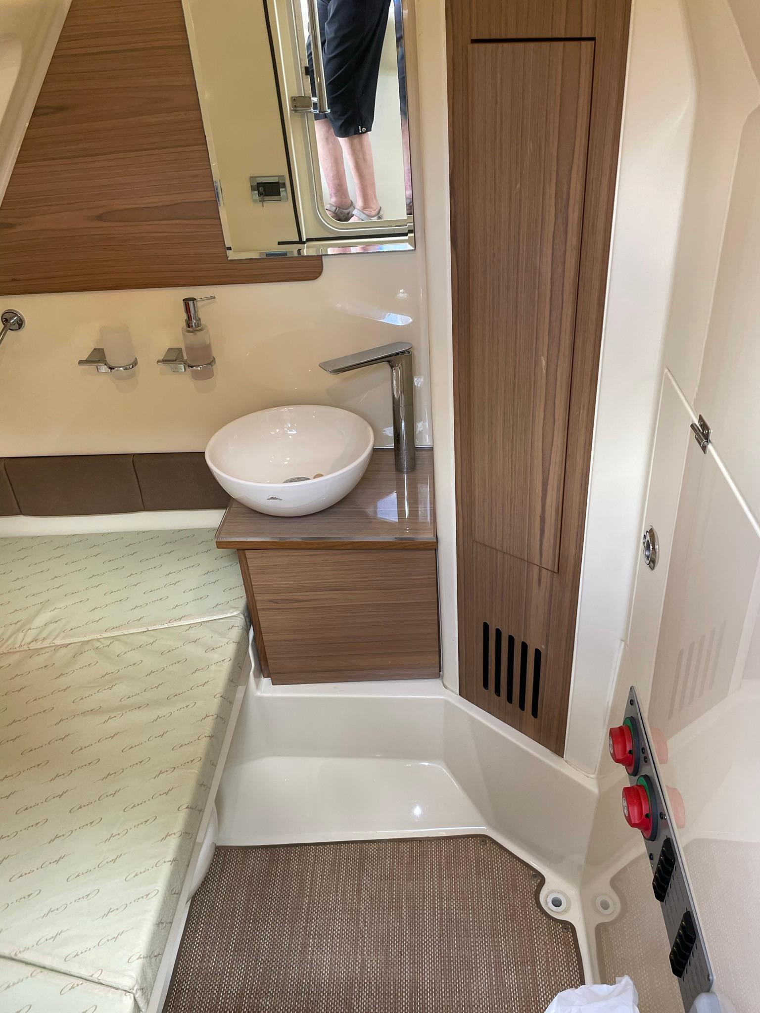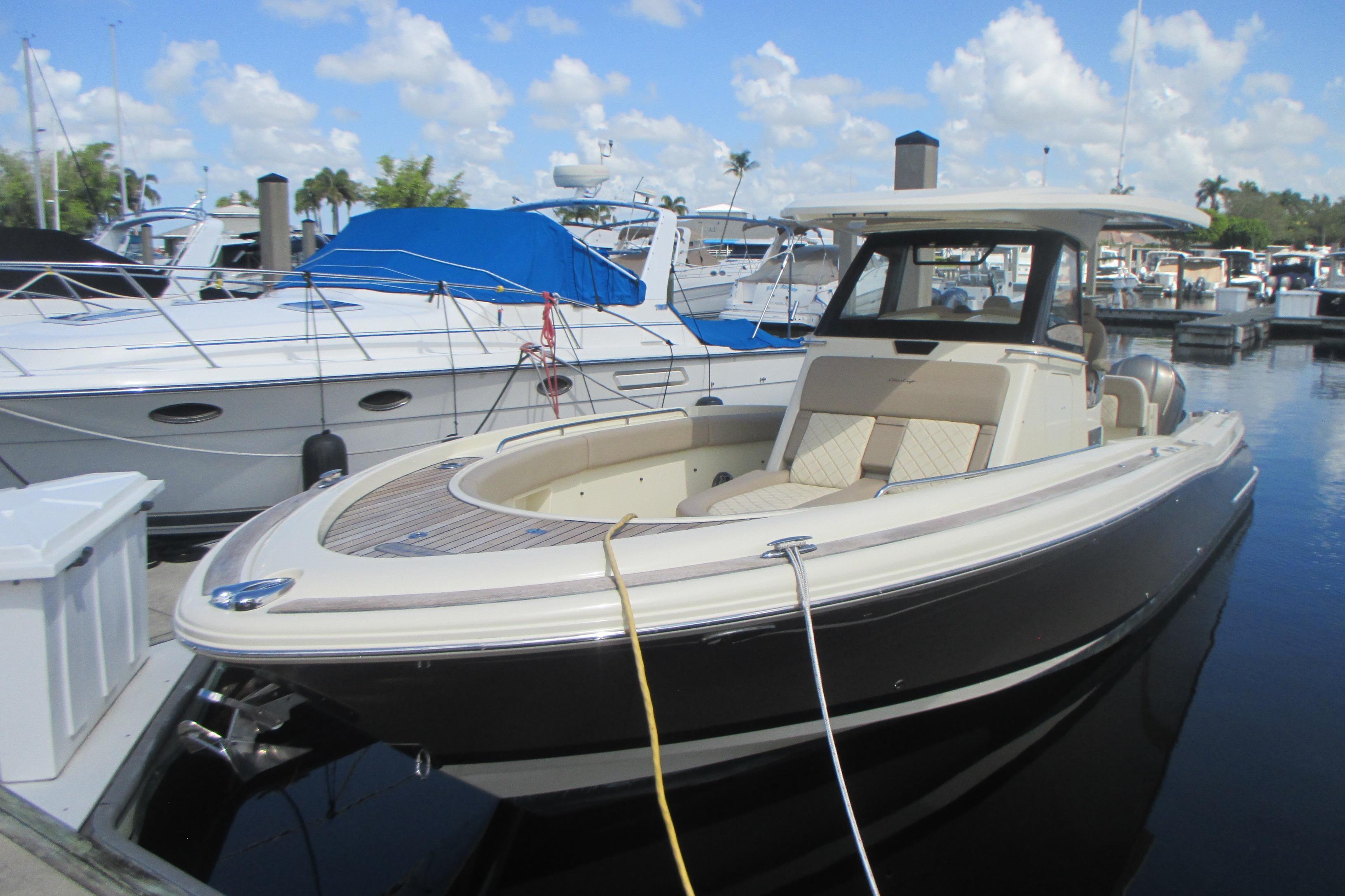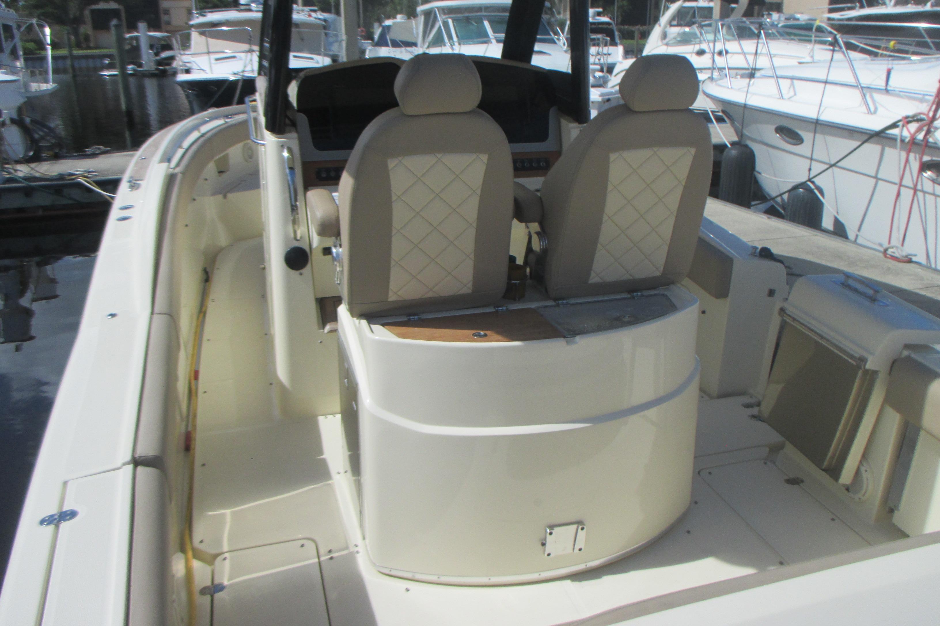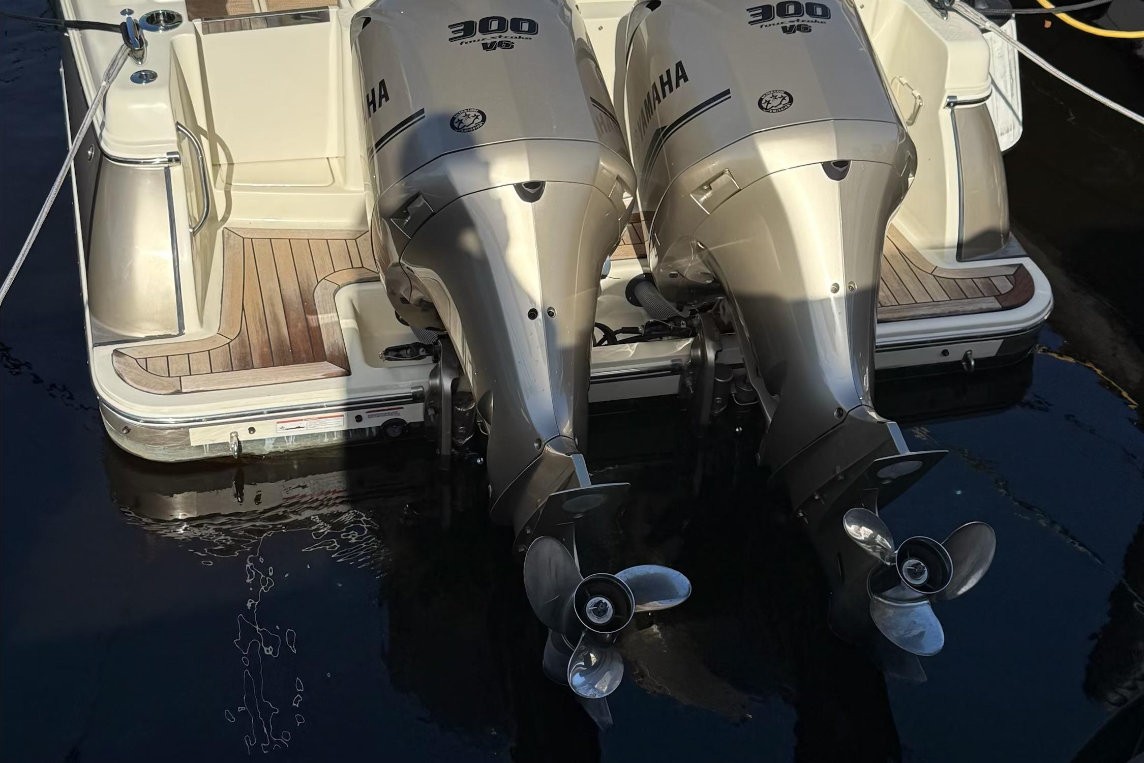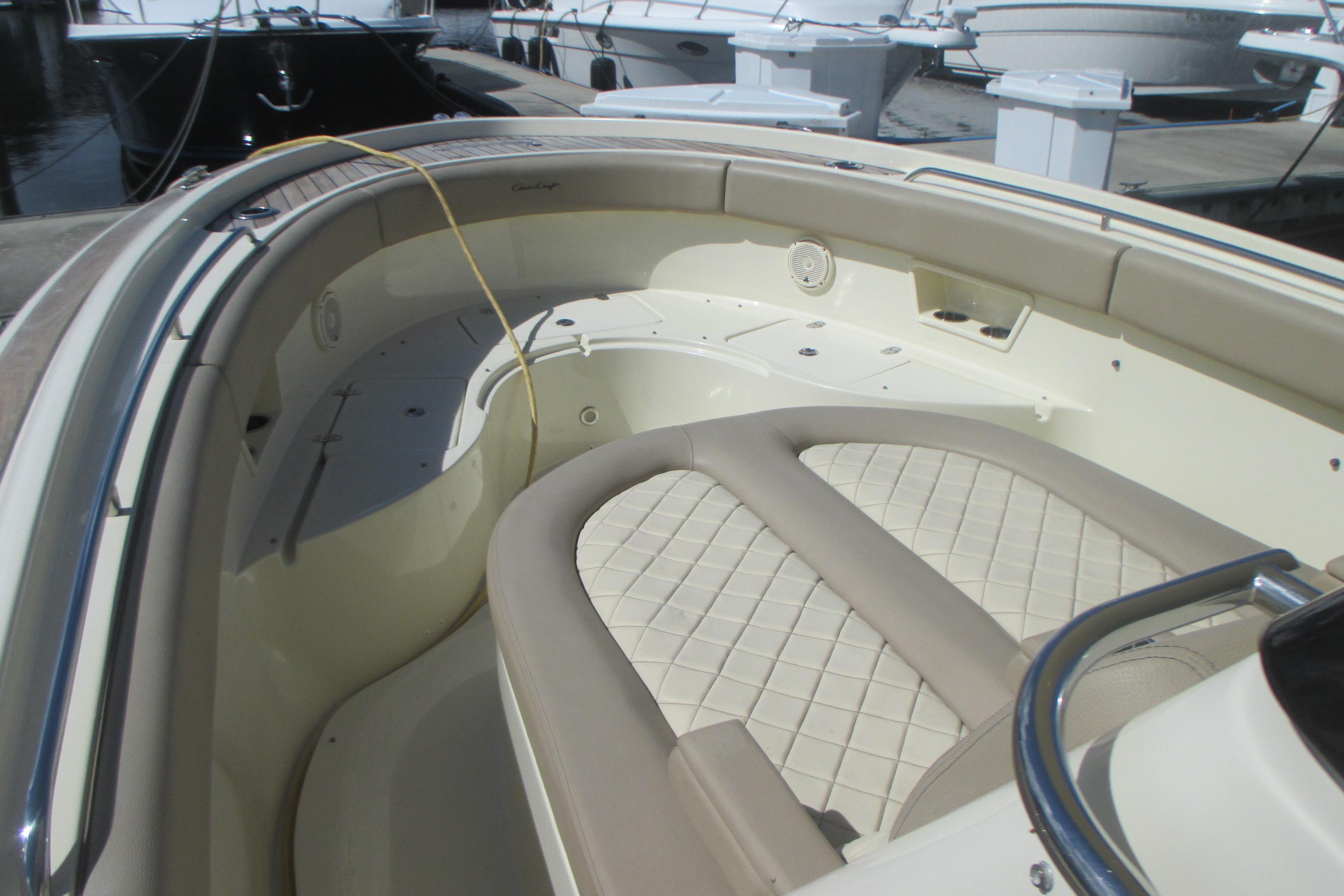 A luxury Center console that can fish, cruise or even weekend on! Beautiful Champagne hull color! Powered with the all new color matched Yamaha 300 HP with Joystick docking! Dometic DC Air Conditioning with Inverter, 3 battery chargers, Convertible aft lounge seating. Forward seating with sun pad, Isotherm, Cockpit fridge with wet bar and table, Enclosed head with Vacuflush toilet and Vanity, DC water heater, Double berth in cabin, Electric cockpit Sun shade, Auto anchor windlass with remote, Dual Garmin 16" screen with GPS plotter, sounder, auto pilot and VHF radio, Fusion Premium sound system with color matched JL audio speakers, Live well, Rod holders, Covers for everything plus a full mooring cover! SPOTLESS!