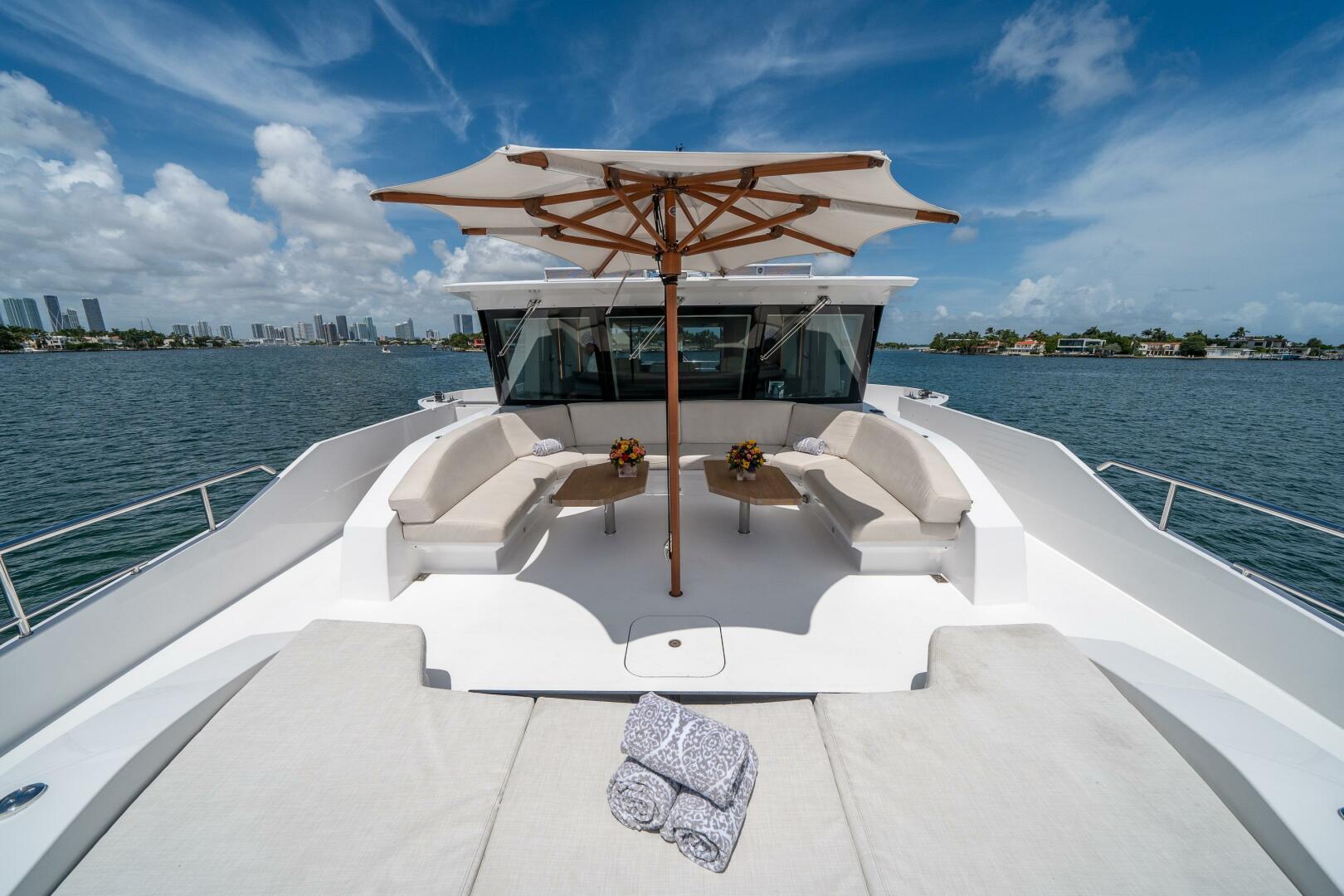 Bold and stylish, the 2020 92' Hargrave C92, DAY ONE, is a gorgeous and unique sight to behold. Built in 2020, she is in immaculate condition for epic charters and private adventures in the Bahamas, Caribbean or anywhere you can imagine.Her well-appointed foredeck seating area is the perfect space to hang out with utmost privacy while at the port, and her umbrella makes for a comfortably shaded seating space. Her upper deck includes an alfresco dining space with sliding doors, where the interior seamlessly merges with the outdoor area.Contemporary architecture imbued with artistic flair, furnished with modern art statement pieces throughout to jazz up her neutrally-hued interior. Her comfortable interior and beautifully appointed staterooms inspire an onboard experience of the utmost serenity, with her main deck master suite with His & Hers for an extra luxurious element of comfort. Her extended pilot house includes a sky lounge, day head, and an office space for those wishing to work remotely anywhere in the world.Day One’s Beach Club offers another relaxation area to watch and take part in the fun unfolding. This includes a bar, kitchenette, TV, lounge, additional day head, and hydraulic swim platform for easy access to enjoy everything the ocean has to offer.Key Features:Twin MTU 10V2000M96 1600 hp engines4 Stateroom layoutOn-deck full-beam Master StateroomEnclosed Sky LoungeBeach Club PackageNAIAD zero speed stabilizerNAIAD hydraulic bow and stern thrustersAll systems—including engines, generators, and air conditioning units—were recently serviced in Summer 2025.Contact us today to schedule a preview aboard the Hargrave C92, “Day One”!