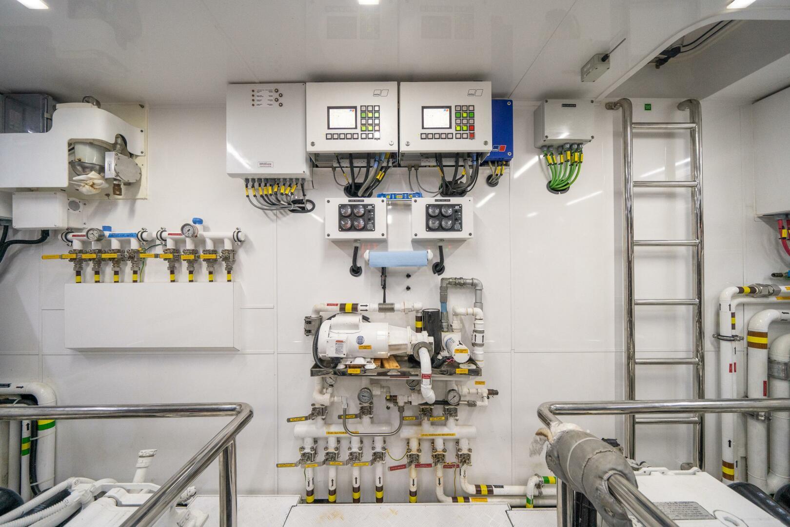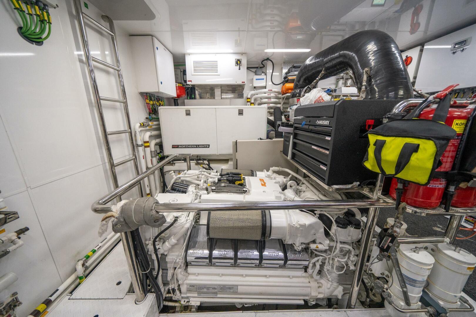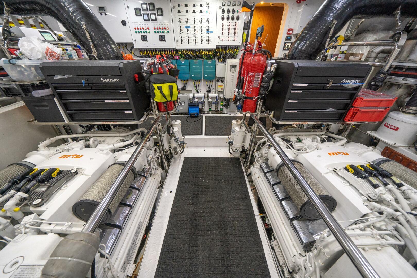 The engine room houses Twin MTU 10V2000M96 1600 hp engines. Equipped with advanced engineering systems, the engine room ensures that the yacht delivers both performance and reliability. This area also contains various technical systems essential for the yacht's operation, including generators, watermakers, and air conditioning units. Whether it's lounging on the aft deck, dining in the salon, sunbathing on the flybridge, or retiring to the master suite, the C92 offers the ultimate blend of luxury, comfort, and an unforgettable experience on the water.