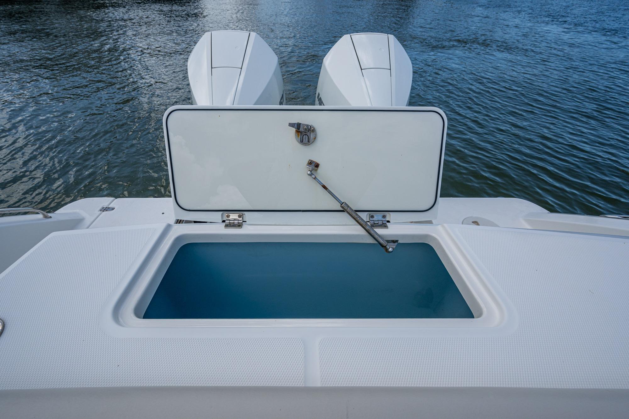 - Insulated in-floor fishboxes with pump-out (57 gallons) at aft (2)