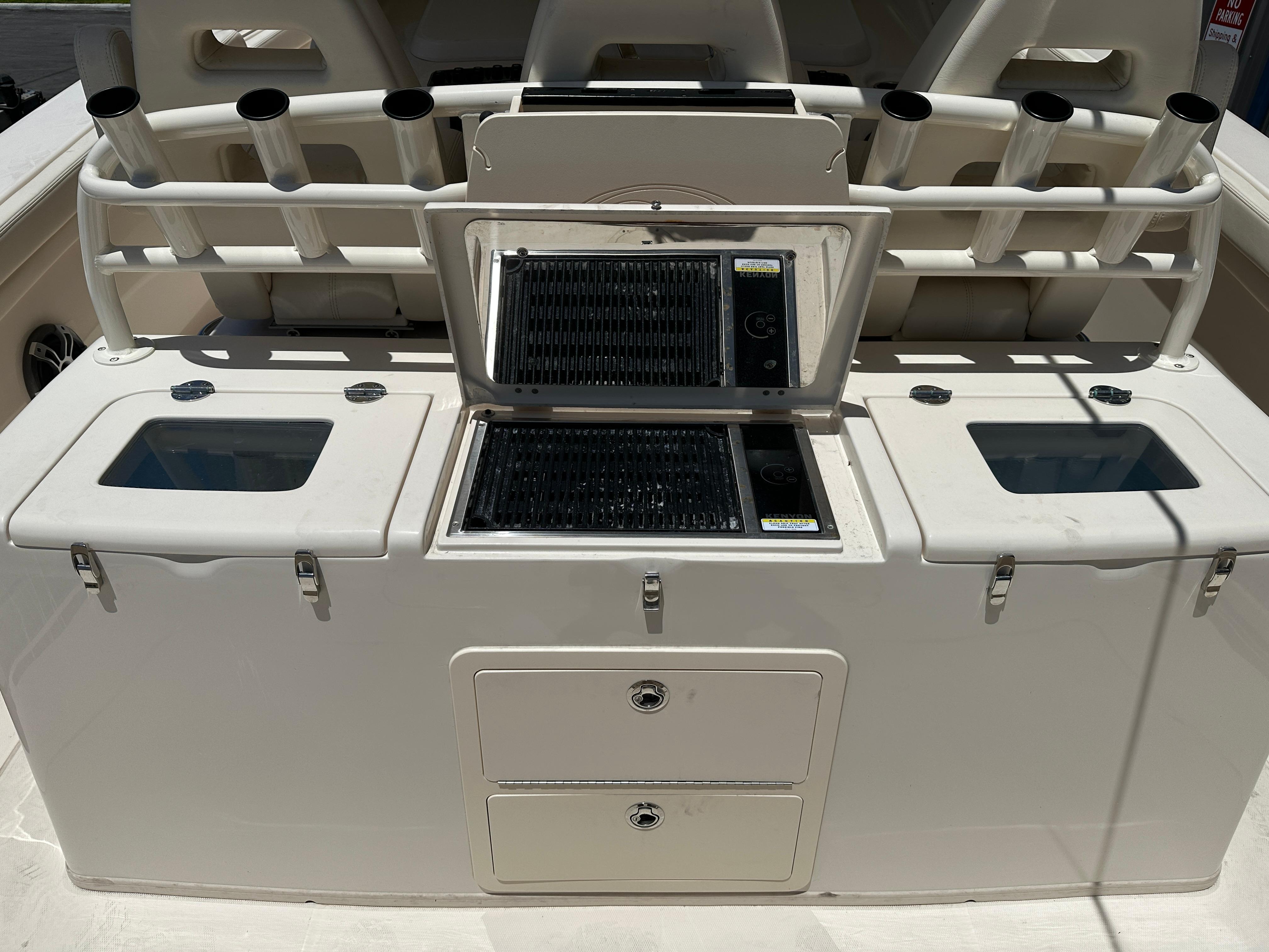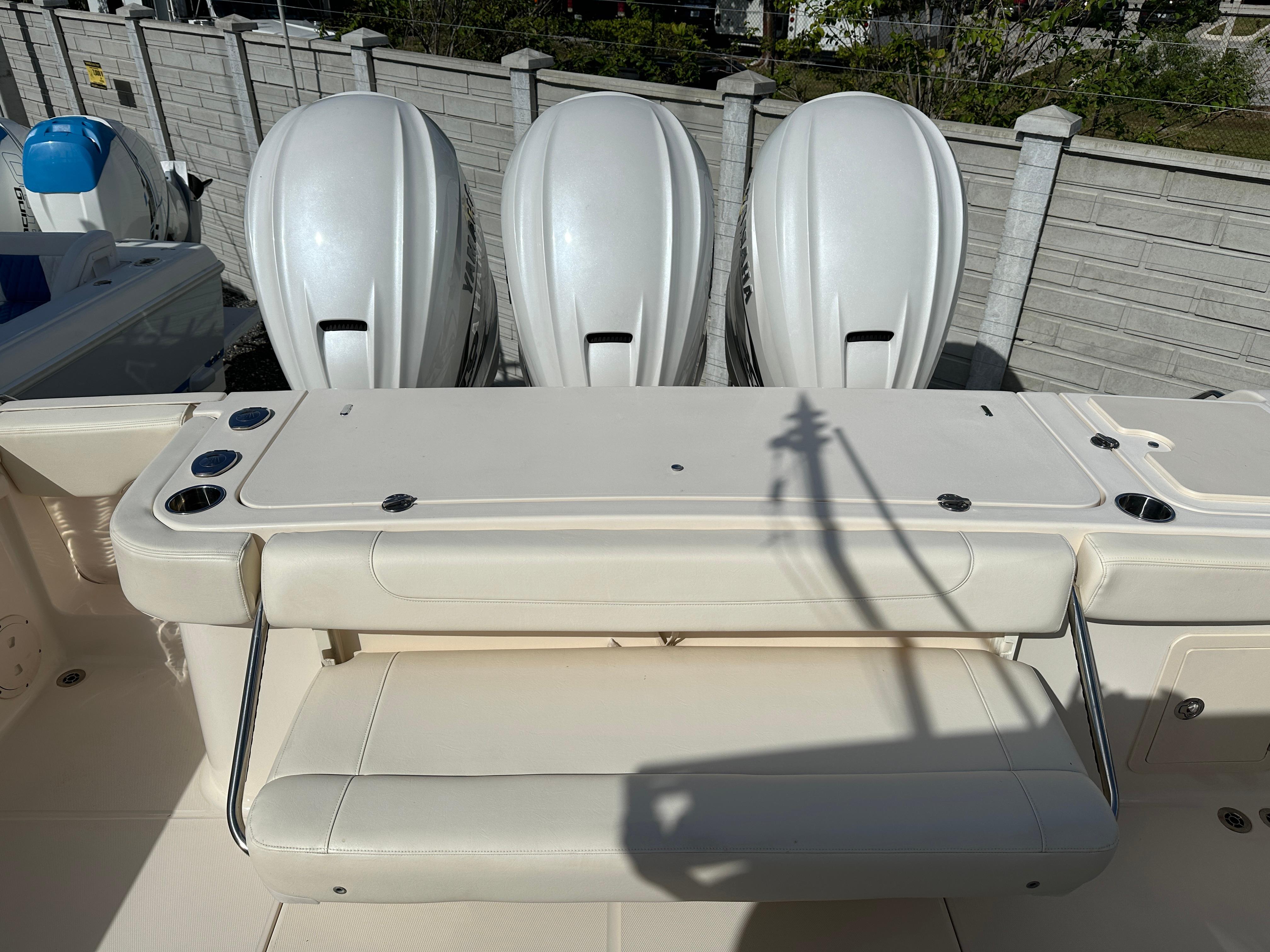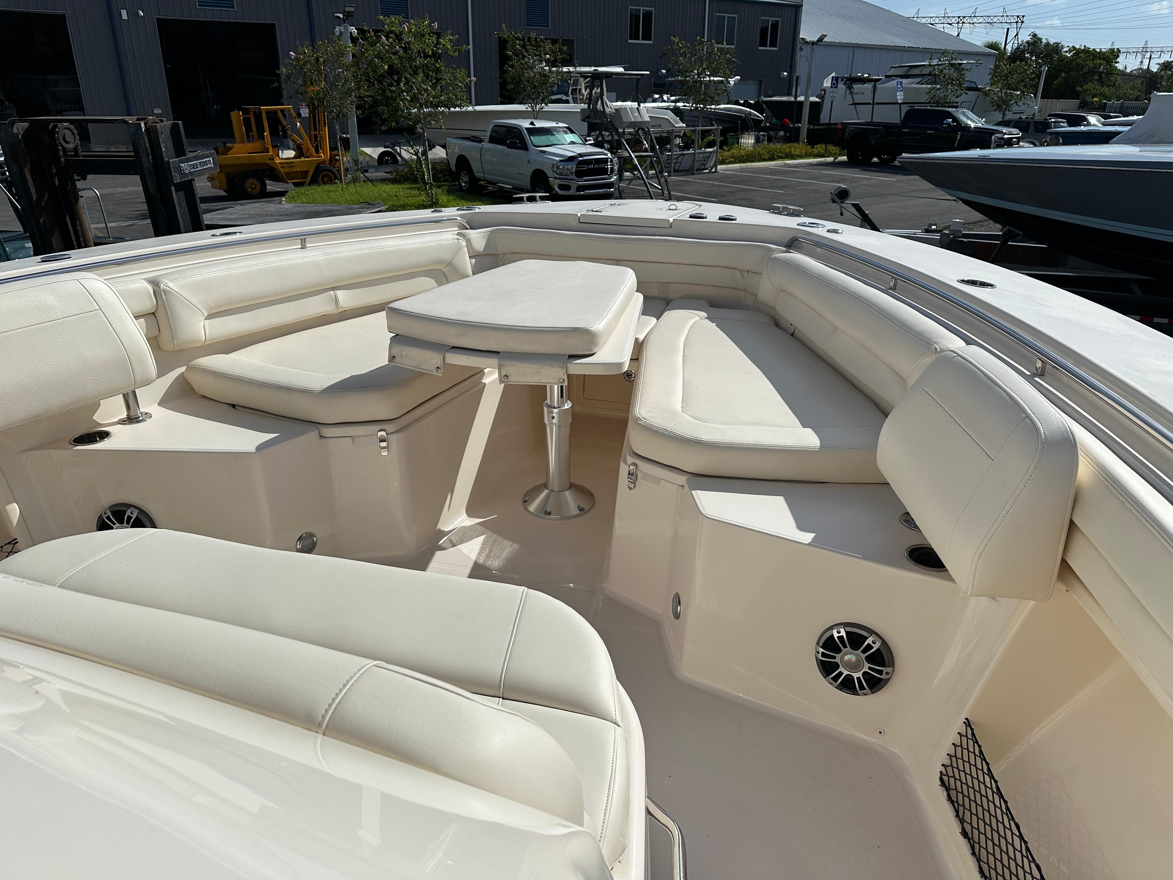 This 2023 Grady White 376 shows almost new. No bottom paint, vessel was indoor rack stored.Agile, fast, and beautifully styled, the Canyon 376 combines the advantages of a big center console fisherman with the cabin comforts of a small express. The 376 comes loaded with quality features that help justify its premium price including a wraparound windshield with power vents that open for ventilation, a bow thruster, and an integrated T-top with a radio box, storage and LED lights. The electronics console can be fully concealed at the push of a button, impressive from just a security aspect alone. Aft of the helm seats is a deluxe leaning bar housing a 41-gallon livewell, tackle center and an insulatedcooler. Below deck (through a starboard door) is tastefully finished cabin with a VacuFlush head, shower, TV, mini-galley, and a lounge whose backrest lifts electrically to reveal a berth for two adults. Inthe cockpit, the rear bench seat folds away for added fishing space, and there are toe rails in the cockpit sole for added stability when fighting a fish. Forward of the cabin is a bow lounge area with amotorized high/low table.
