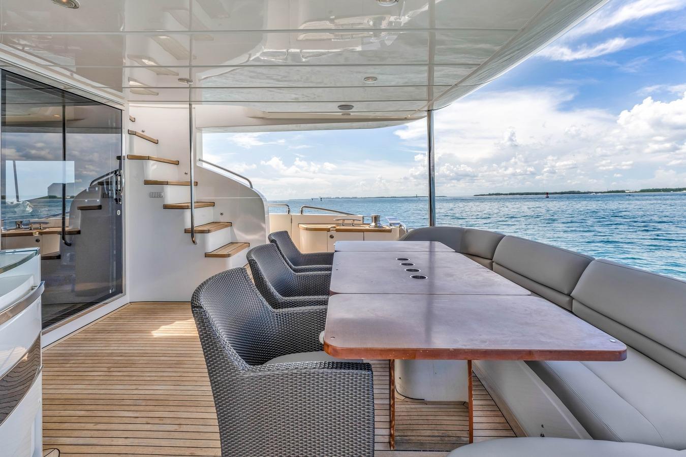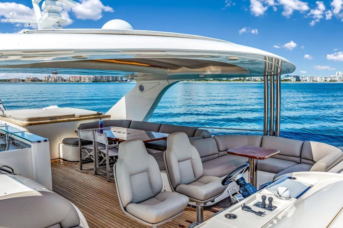 The yacht accommodates eight guests in four cabins, including a full-beam master suite, a forward VIP cabin, and two twin guest cabins, all with en-suite bathrooms. The interior benefits from large windows that bring in natural light, giving the salon and dining area an open and welcoming feel. The layout is designed to maximize comfort and functionality, with a versatile arrangement that works equally well for family use or charter.Her exterior spaces are designed for enjoyable time on the water. The flybridge offers ample seating, sunbathing areas, and a hot tub, making it a comfortable space for relaxing and socializing. A hydraulic swim platform provides easy access to the sea, while the davit on the flybridge allows for convenient handling of tenders or toys. With her shallow draft, the yacht can access a variety of cruising destinations, including those with limited depths.Powered by Caterpillar engines, she delivers reliable performance with a solid cruising range, allowing for extended itineraries. Fin stabilizers enhance comfort both underway and at anchor. As a US-flagged and US Customs-paid vessel, she offers an uncomplicated purchase for domestic buyers. Combined with competitive pricing and proven charter performance, she presents a strong opportunity for those seeking a yacht in this category.Key FeaturesCaterpillar EnginesU.S.- Flagged Vessel Large FlybridgeHot Tub on Flybridge Hydraulic Swim platform FIn Stabilizers Davit on Flybridge