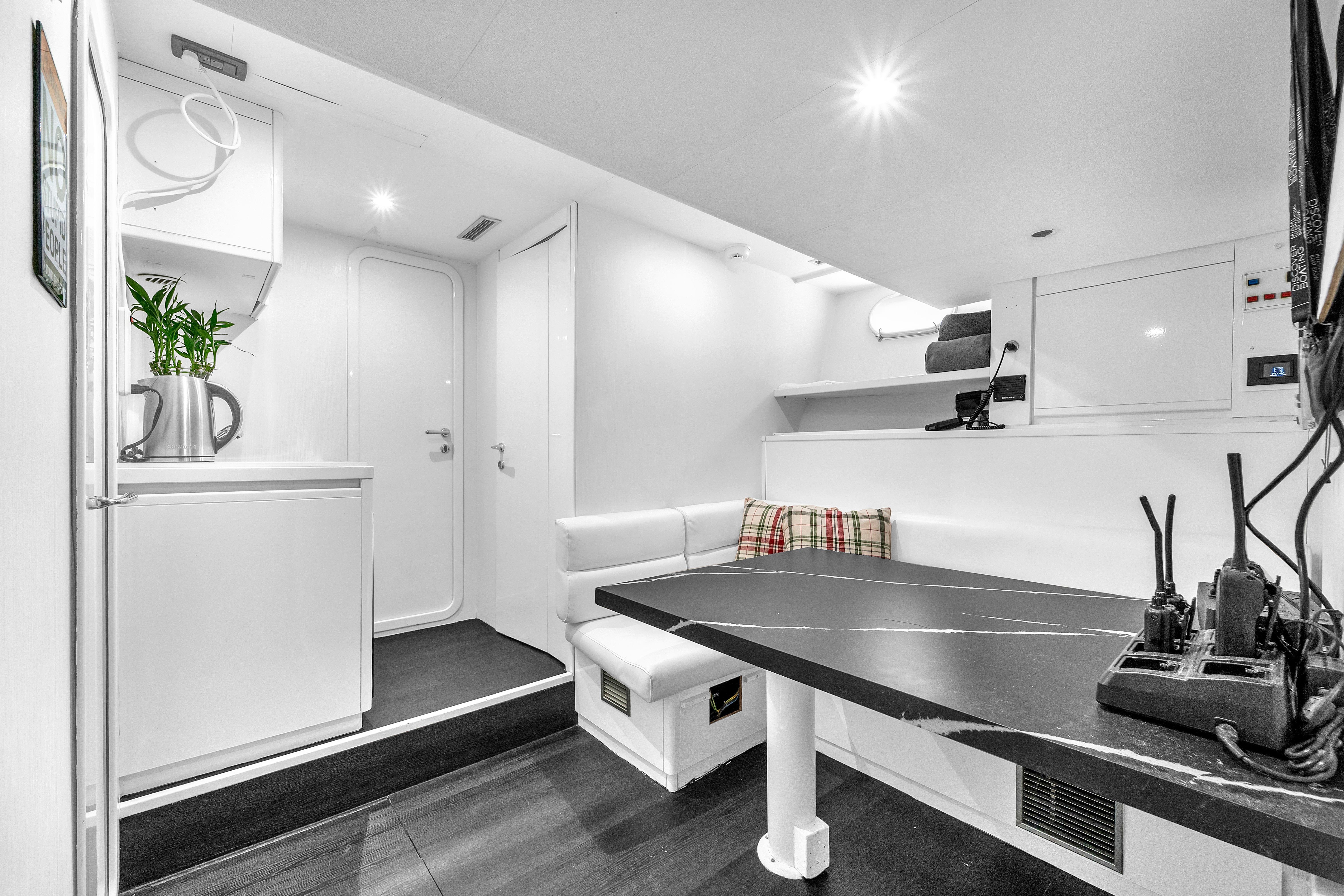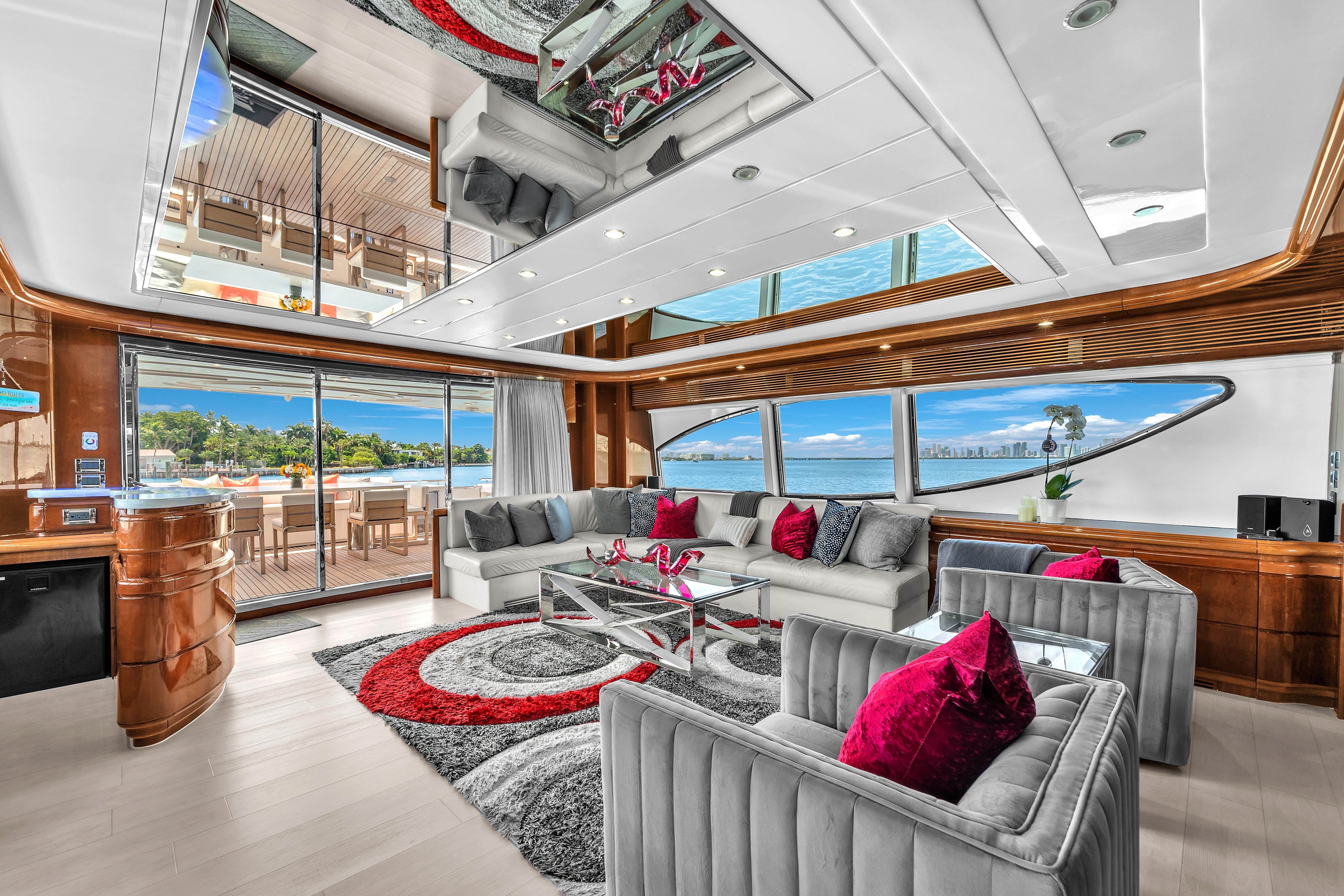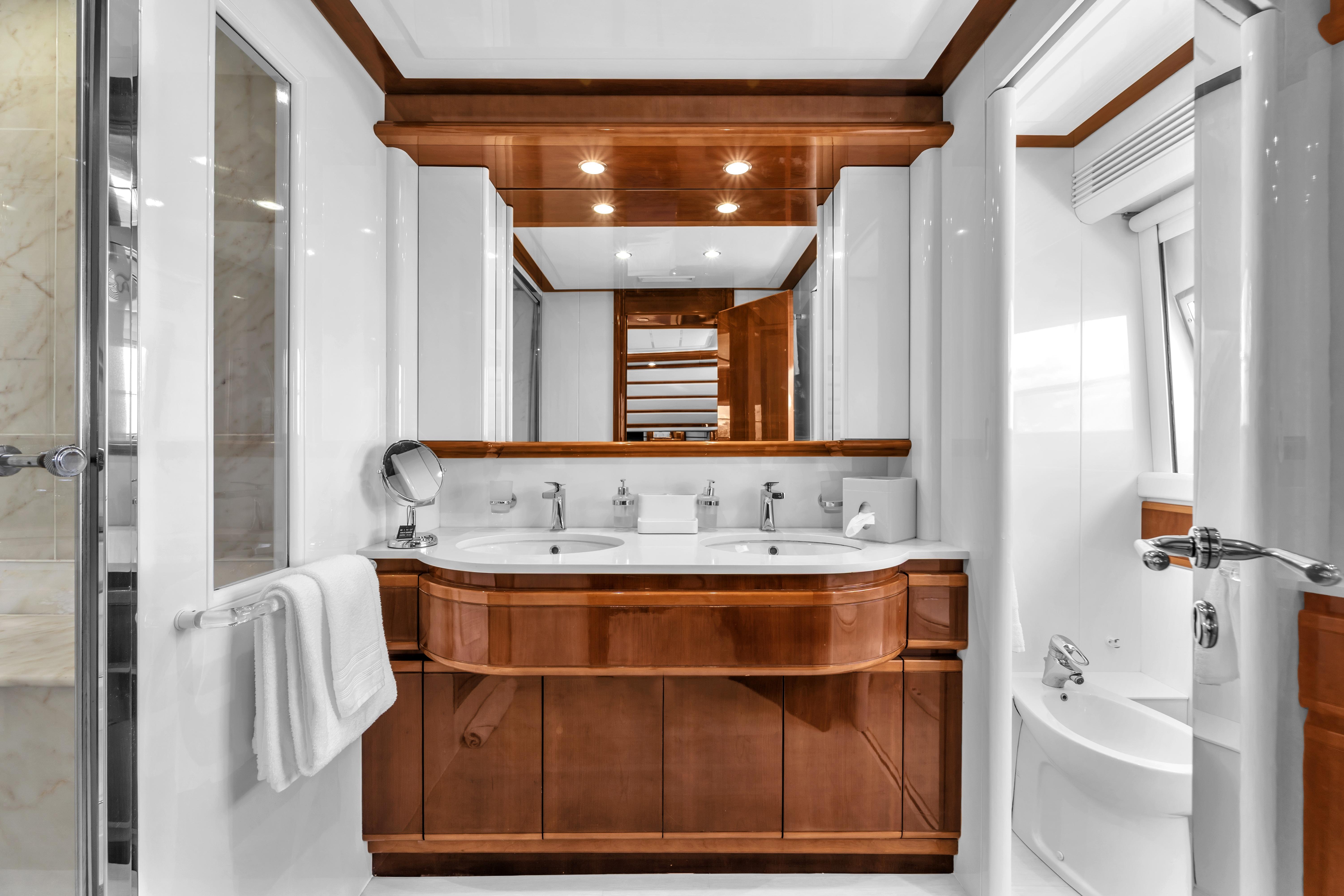 - From main salon to dining area, day bathroom, bridge stairway, and cabins stairway