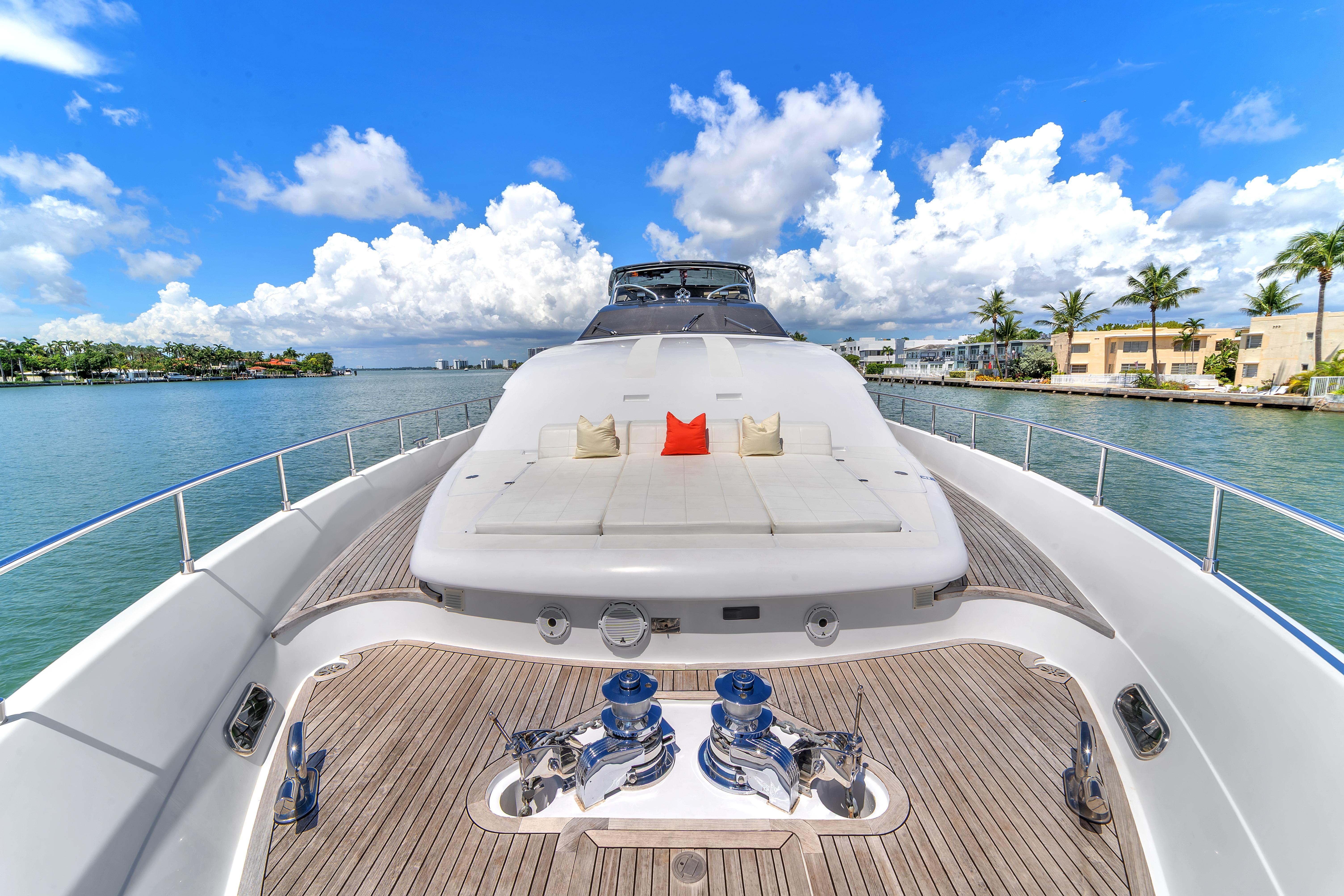 - Windlass and chain wash controls, large sunbathing area with custom upholstery, Hot Tub with sun pad cover