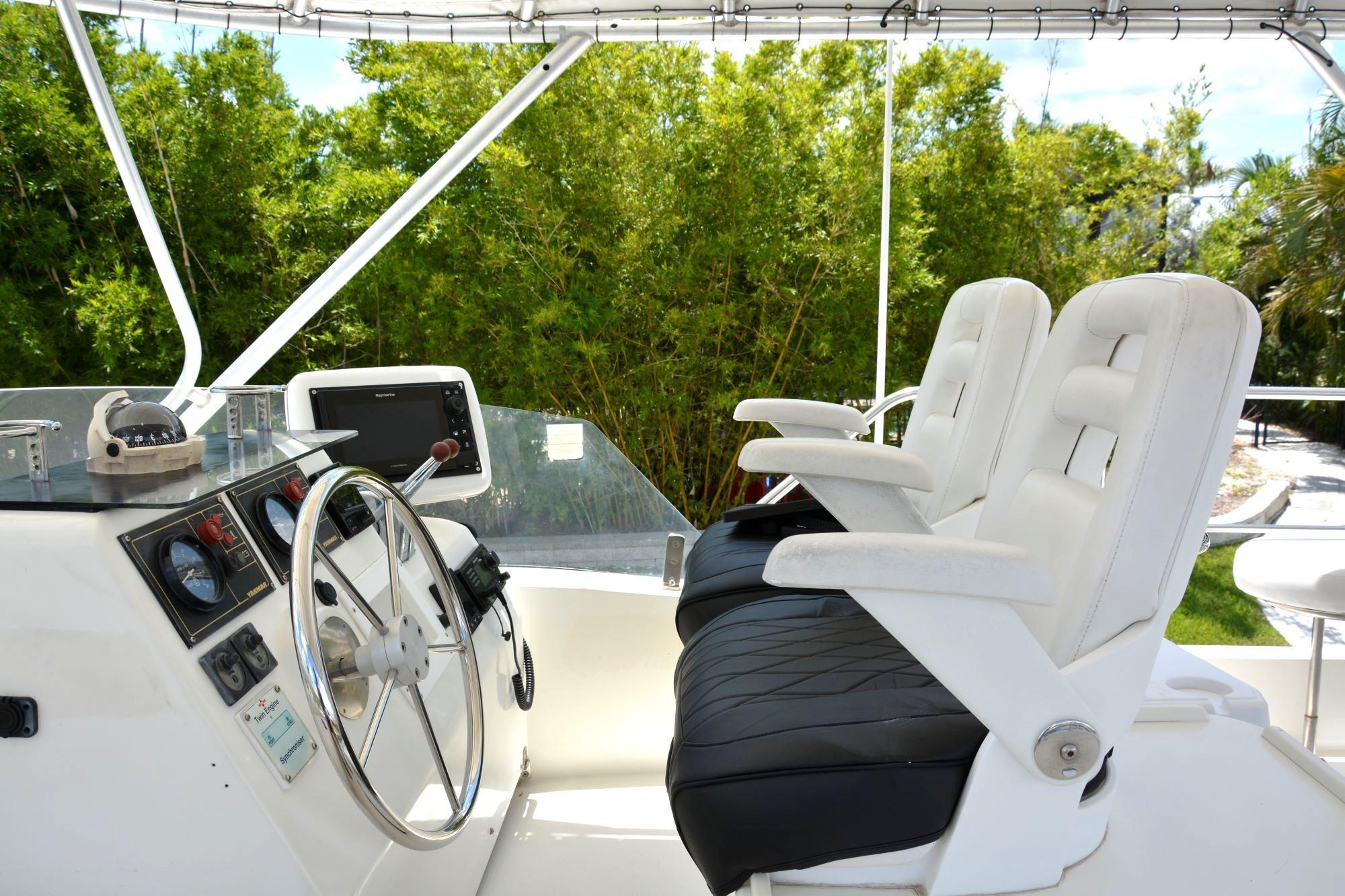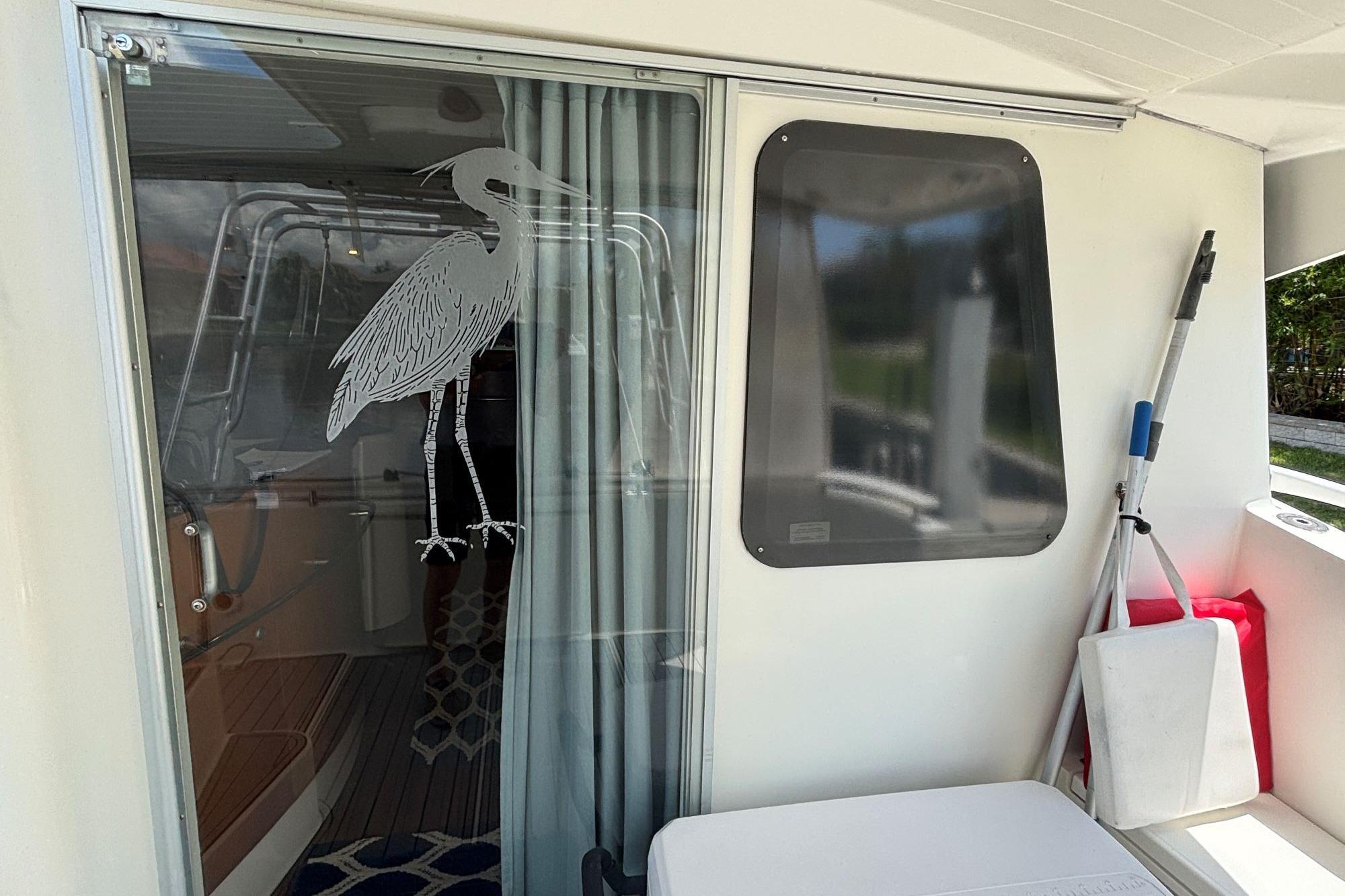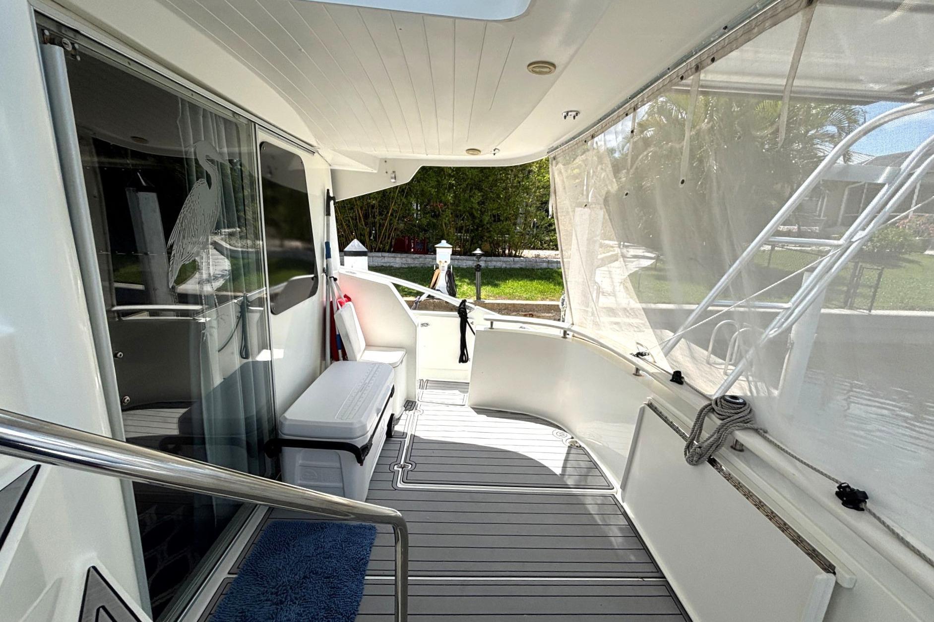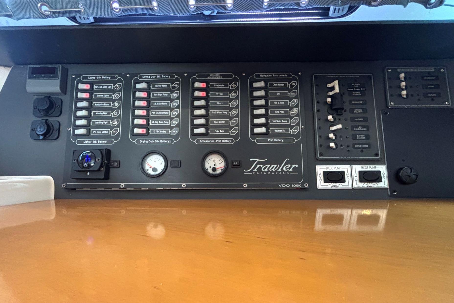 Inside HelmWith long distance cruising in mind, the inside helm station is much more functional than most. The sightlines from the captains chair are unrestricted while the large windows to port and starboard make docking, even from inside, simple. Features include opening forward windows when a little extra breeze is welcome, centerline windshield wipers when it’s dreary, and reverse cycle climate controls for the warm tropics or brisk fall mornings. Monitoring and operating the boat is all done at your fingertips with dual engine panels and throttle controls, tridata instrumentation, autopilot, windlass controls.
