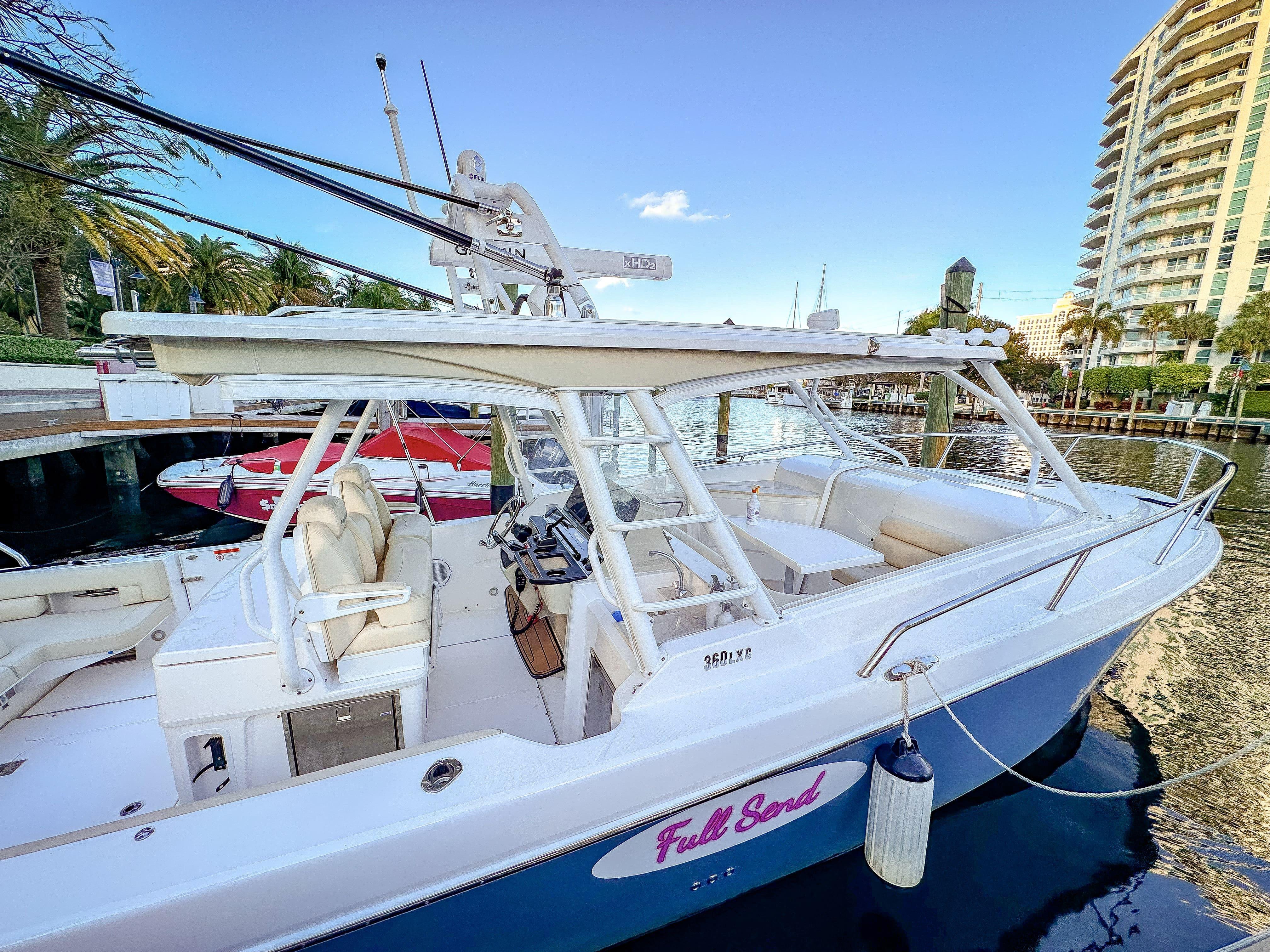 The Everglades 360 LXC is the perfect combination of Luxury Cruiser meets Family Fishing boat! She is back on the market after a list of upgrades and ready for a new home! She features ample comfortable seating and all the amenities needed to enjoy a day at the sandbar, island hopping, offshore, or on the reef. She’s powered by Triple 300 HP Yamaha outboards that have just been serviced and Optimus steering system with Joystick control.Electronics include dual 16” Garmin Chartplotters equipped with B175H and B175L Transducers (GPSmap 7616 and a newer GPSmap 8616), Autopilot, VHF, FLIR Nightvision, and Fusion Bluetooth Stereo Head unit. Recent upgrades include:New Trim Tabs (2025)New Diesel Generator (2025)Fresh Coat of Bottom Paint (2025)New Underwater Lights (2025)She’s equipped with A/C both in the cabin, at the helm, and in the forward seating area. The cabin sleeps four comfortably.. Behind the helm seating, you’ll find a wet bar/summer kitchen, including a sink, electric grill, ice maker, refrigerator, trash receptacle, and storage. Above the summer kitchen is a large powered sunshade to beat the heat. On the port side, you’ll also find a large dive door.Please reach out with any questions or to schedule a showing, she is kept right on the New River Canal in Downtown Ft Lauderdale and very easy to show!