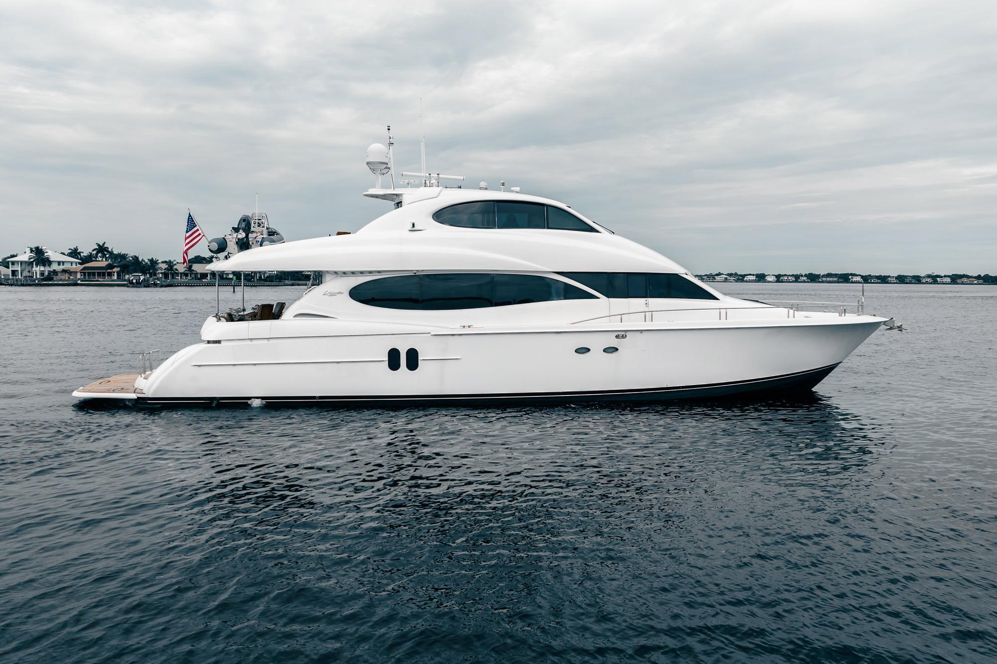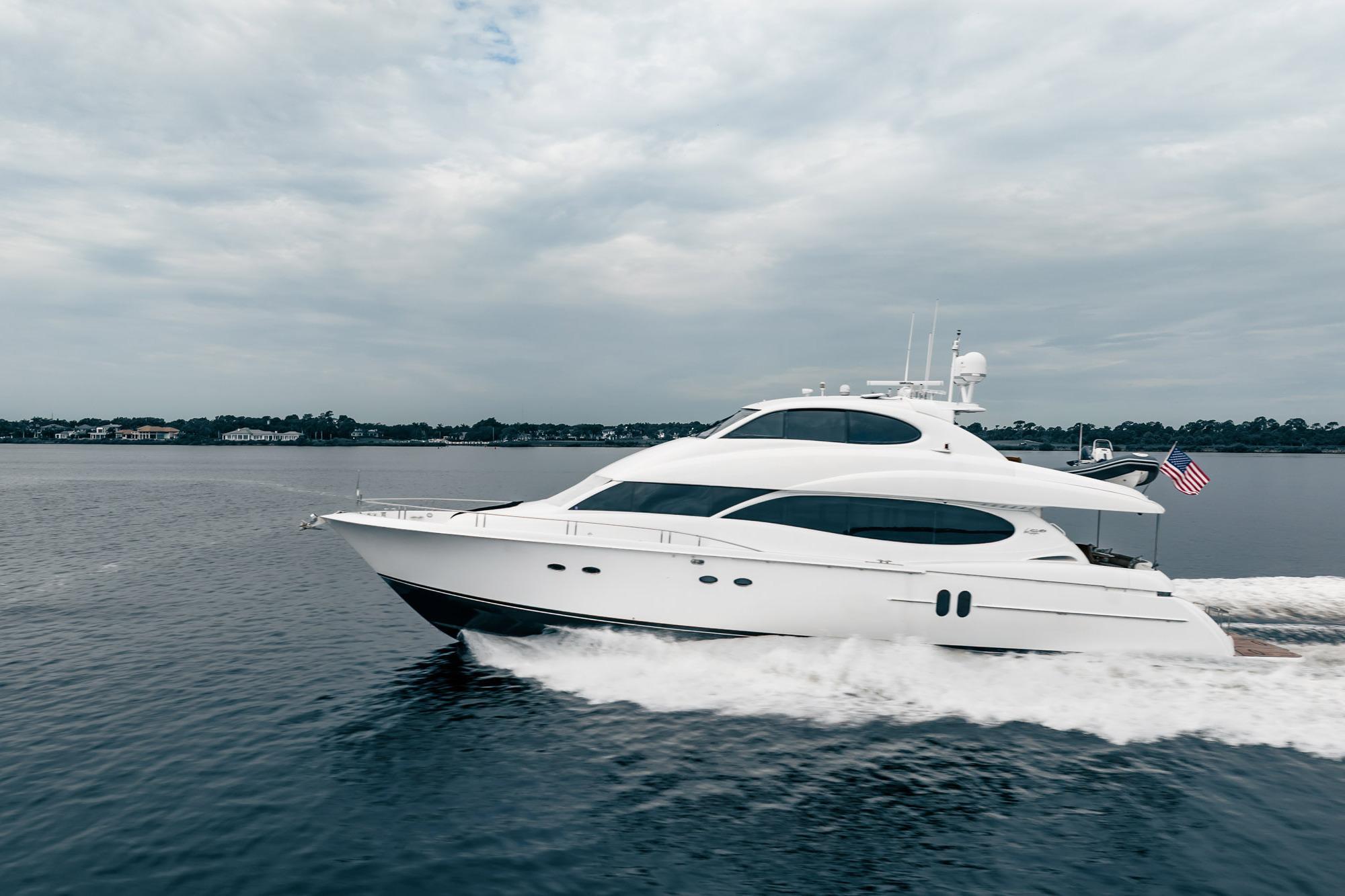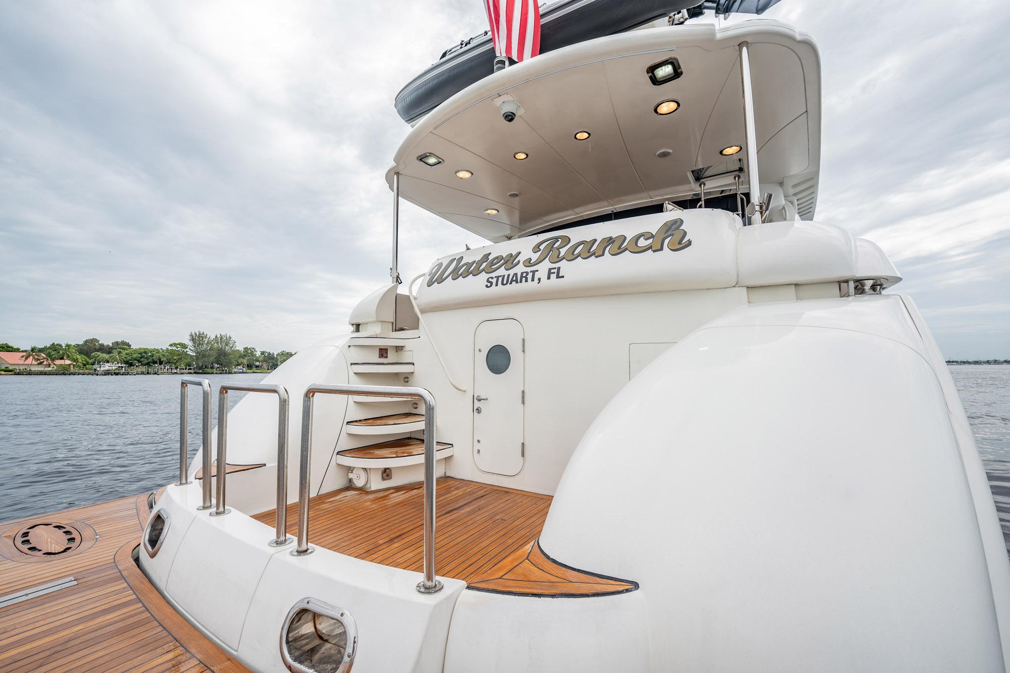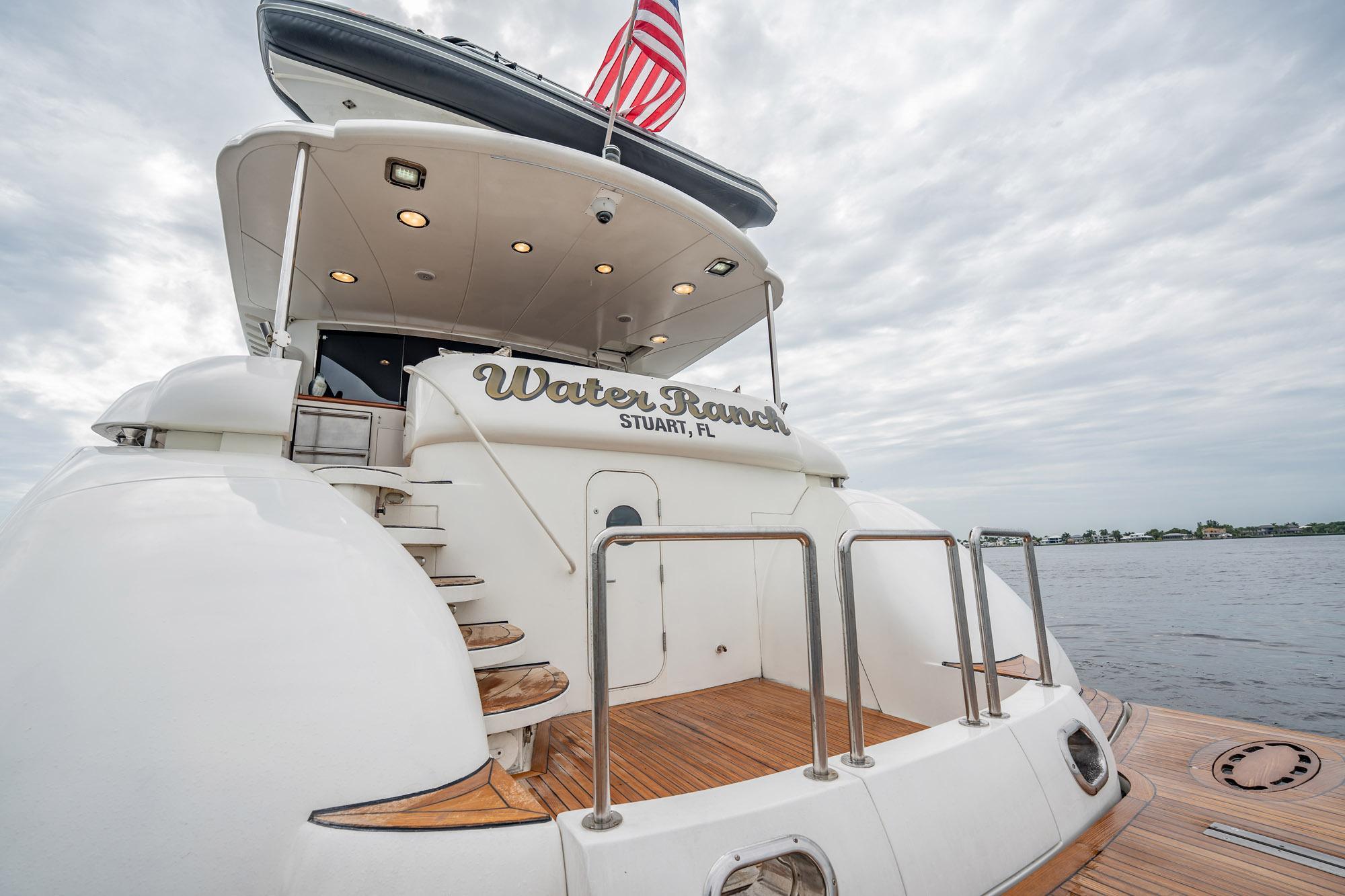 Water Ranch, a 2003 Lazzara 80 yacht is a luxury motor yacht built by the American company Lazzara Yachts. Lazzara Yachts has a long history of building high-quality, custom yachts with Euro-inspired designs. Water Ranch just like the others in the Lazzara line, is known for its performance and luxurious amenities. Meticulously maintained by her full-time captain featuring many upgrades. She has been cared for and maintained to the highest of standards.Water Ranch Notable Characteristics:Size and design: 80 feet (24.38 meters) in length with a beam of 20 feet (6.12 meters) Water Ranch features sleek lines and a modified V-hull.Layout and Accommodation: Water Ranch has a spacious and versatile layout. Featuring a five-stateroom, six-head layout. This configuration can comfortably accommodate a group of guests and potentially a crew.Interior Features: The interior features high-gloss dark cherry wood throughout, with recent upgrades in some cases including new soft goods, headliners, and flooring. The salon and dining area are typically designed for comfortable entertainment.Engine and Performance: Water Ranch is powered by MTU 12V183 engines. This engine package is known for both speed and efficient cruising.Skylounge: Water Ranch’s skylounge, which serves as a second entertaining area and often the command center of the yacht, offering excellent visibility.Storage and Water Toys: Water Ranch has ample storage for water toys, with features such as a hydraulic swim platform, jet ski pods, and a davit.