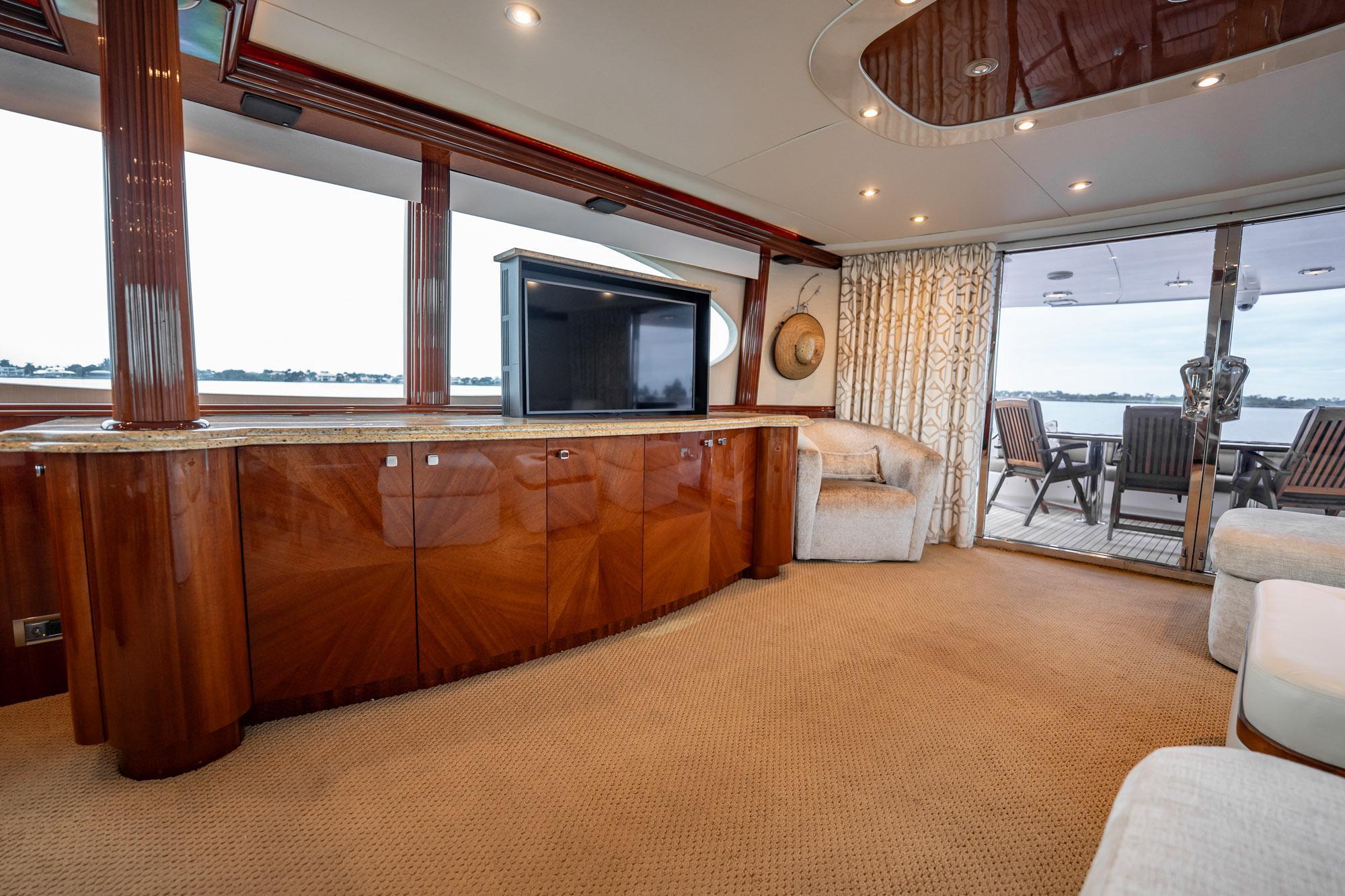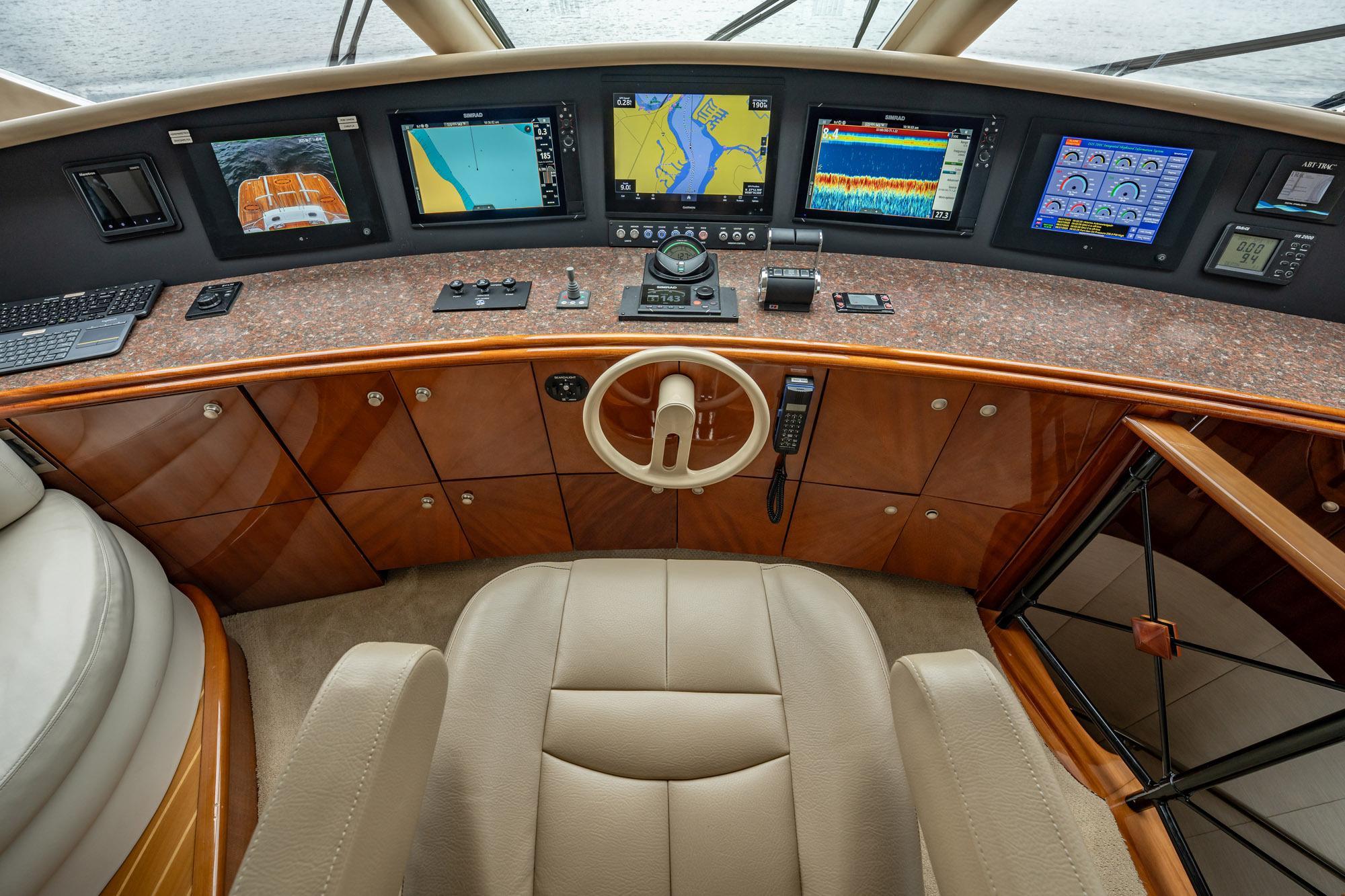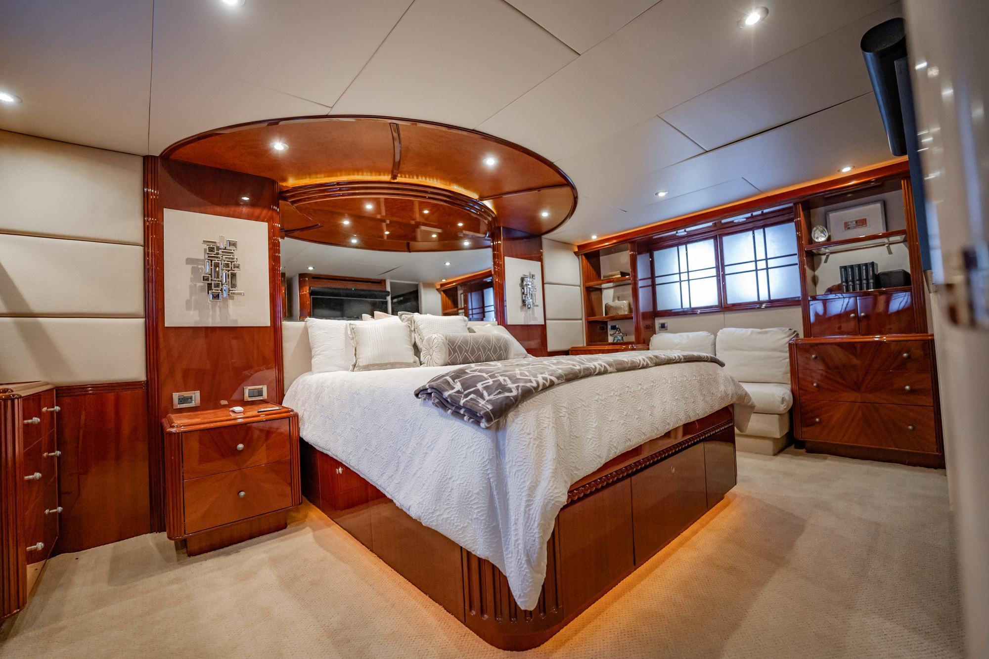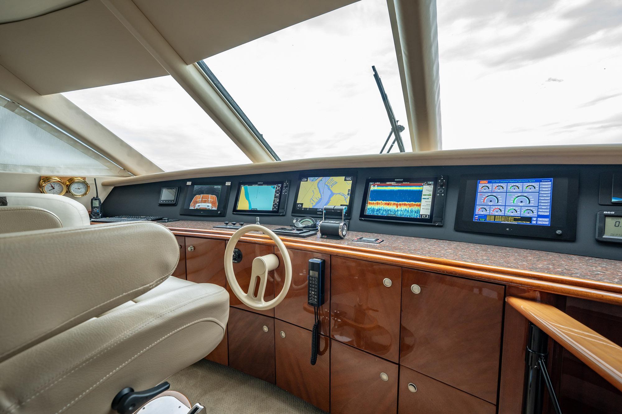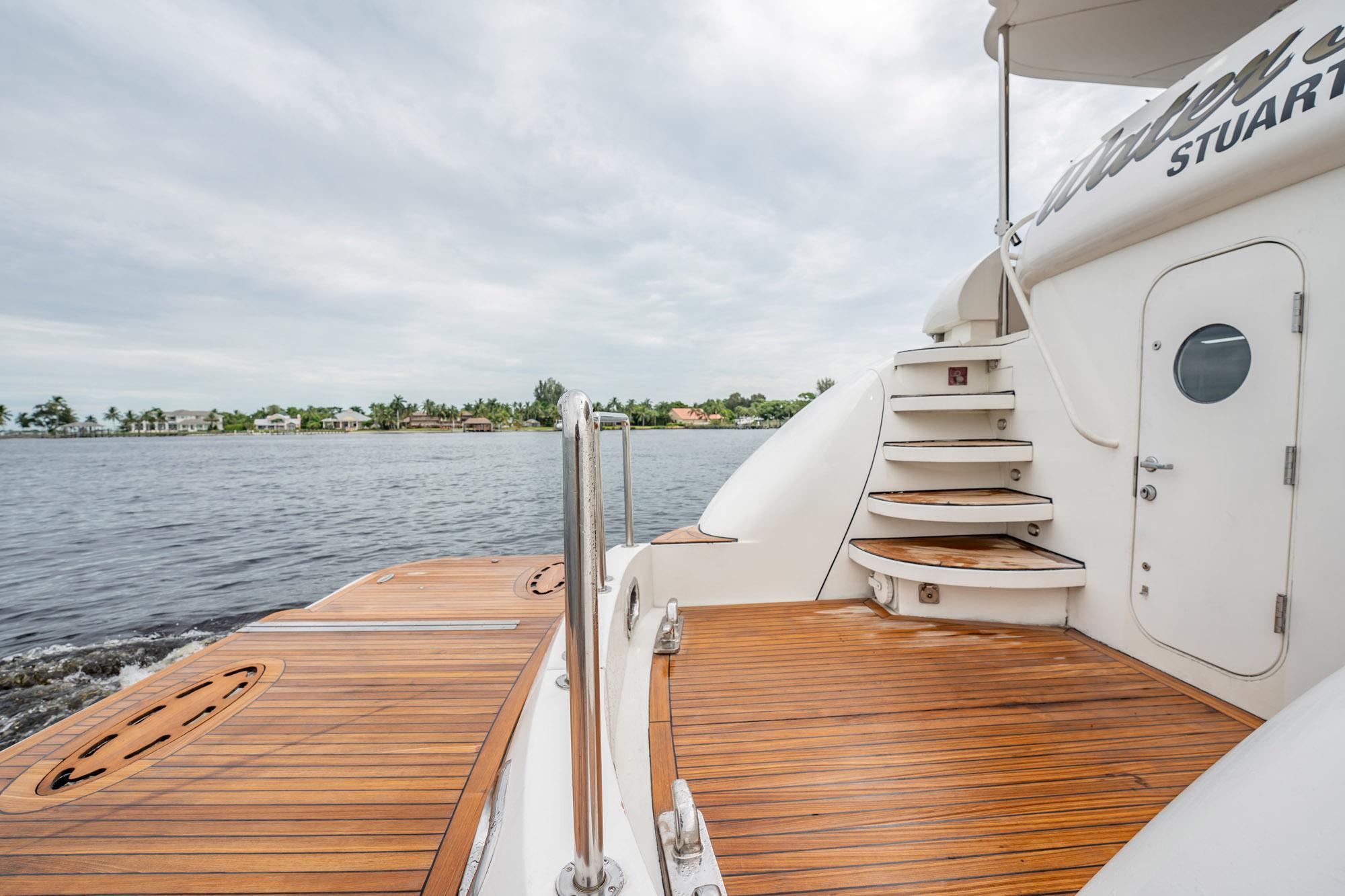 Water Ranch, a 2003 Lazzara 80 yacht is a luxury motor yacht built by the American company Lazzara Yachts. Lazzara Yachts has a long history of building high-quality, custom yachts with Euro-inspired designs. Water Ranch just like the others in the Lazzara line, is known for its performance and luxurious amenities. Meticulously maintained by her full-time captain featuring many upgrades. She has been cared for and maintained to the highest of standards.Water Ranch Notable Characteristics:Size and design: 80 feet (24.38 meters) in length with a beam of 20 feet (6.12 meters) Water Ranch features sleek lines and a modified V-hull.Layout and Accommodation: Water Ranch has a spacious and versatile layout. Featuring a five-stateroom, six-head layout. This configuration can comfortably accommodate a group of guests and potentially a crew.Interior Features: The interior features high-gloss dark cherry wood throughout, with recent upgrades in some cases including new soft goods, headliners, and flooring. The salon and dining area are typically designed for comfortable entertainment.Engine and Performance: Water Ranch is powered by MTU 12V183 engines. This engine package is known for both speed and efficient cruising.Skylounge: Water Ranch’s skylounge, which serves as a second entertaining area and often the command center of the yacht, offering excellent visibility.Storage and Water Toys: Water Ranch has ample storage for water toys, with features such as a hydraulic swim platform, jet ski pods, and a davit.