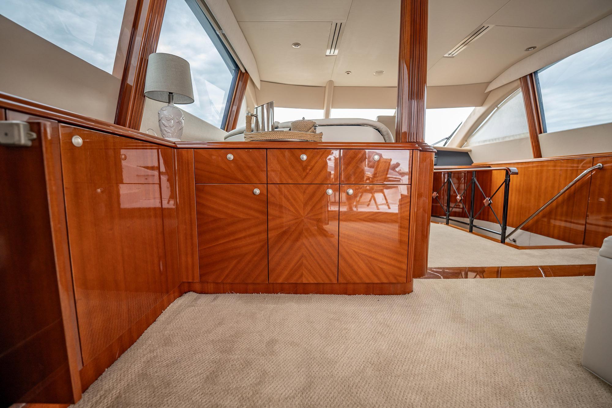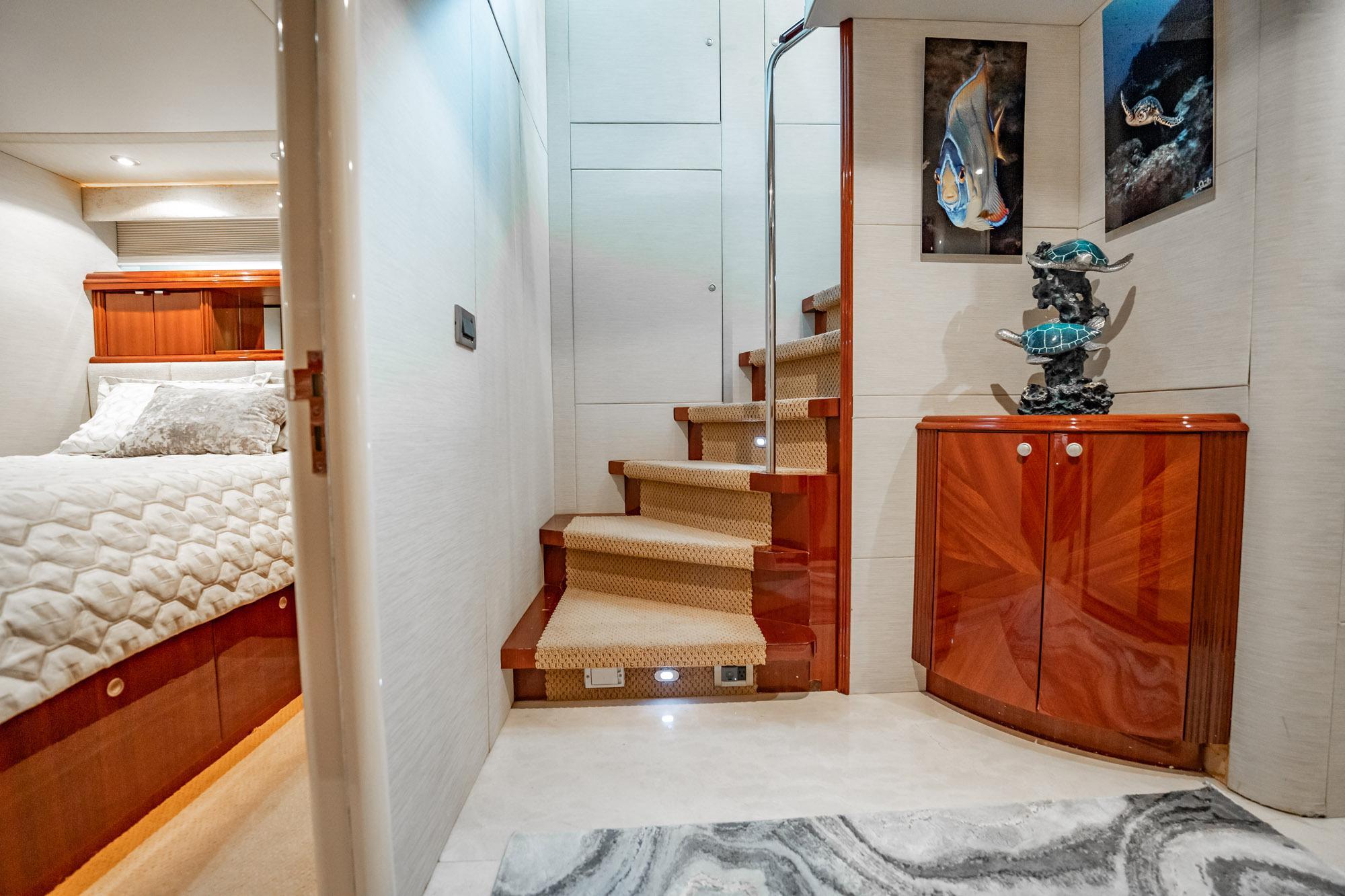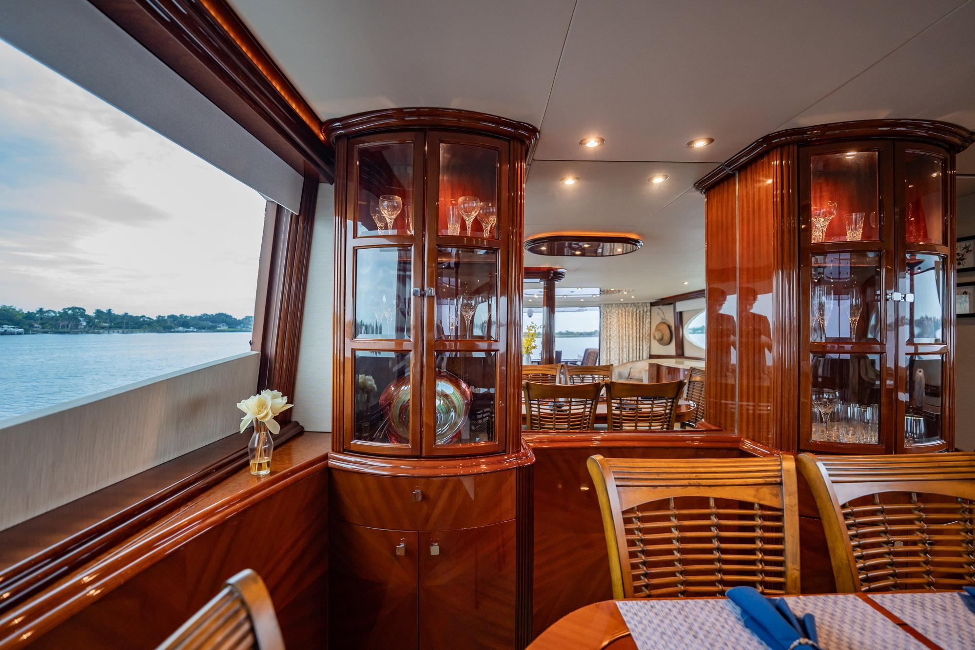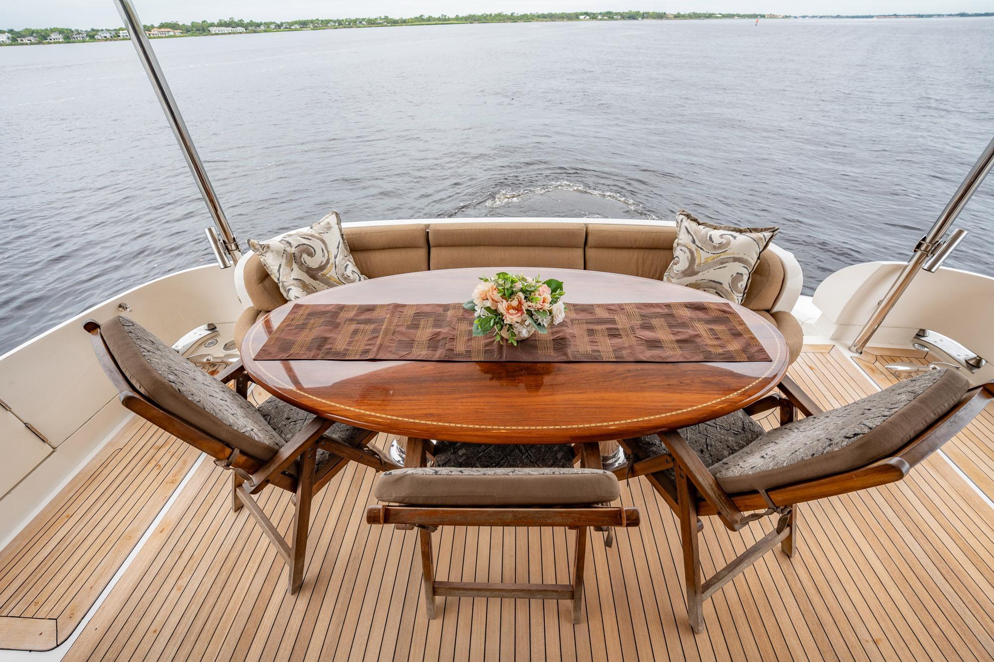 Water Ranch, a 2003 Lazzara 80 yacht is a luxury motor yacht built by the American company Lazzara Yachts. Lazzara Yachts has a long history of building high-quality, custom yachts with Euro-inspired designs. Water Ranch just like the others in the Lazzara line, is known for its performance and luxurious amenities. Meticulously maintained by her full-time captain featuring many upgrades. She has been cared for and maintained to the highest of standards.Water Ranch Notable Characteristics:Size and design: 80 feet (24.38 meters) in length with a beam of 20 feet (6.12 meters) Water Ranch features sleek lines and a modified V-hull.Layout and Accommodation: Water Ranch has a spacious and versatile layout. Featuring a five-stateroom, six-head layout. This configuration can comfortably accommodate a group of guests and potentially a crew.Interior Features: The interior features high-gloss dark cherry wood throughout, with recent upgrades in some cases including new soft goods, headliners, and flooring. The salon and dining area are typically designed for comfortable entertainment.Engine and Performance: Water Ranch is powered by MTU 12V183 engines. This engine package is known for both speed and efficient cruising.Skylounge: Water Ranch’s skylounge, which serves as a second entertaining area and often the command center of the yacht, offering excellent visibility.Storage and Water Toys: Water Ranch has ample storage for water toys, with features such as a hydraulic swim platform, jet ski pods, and a davit.