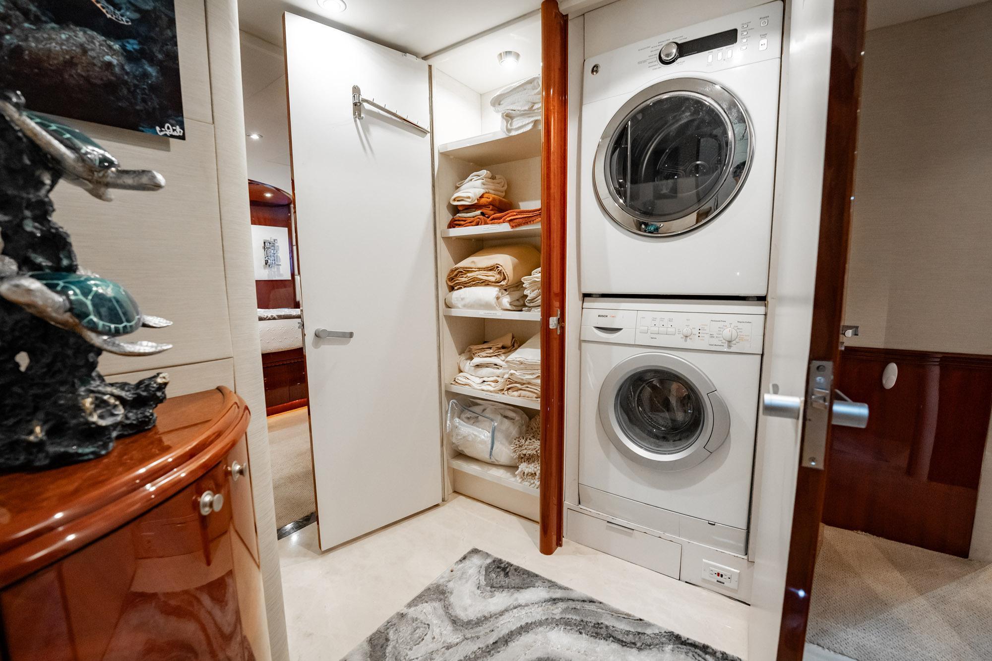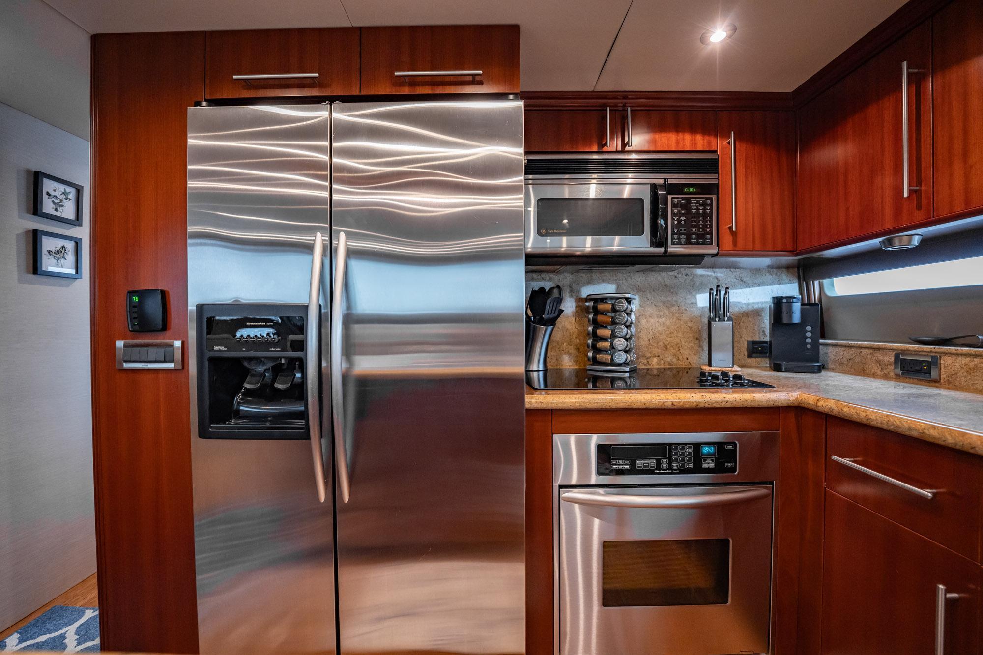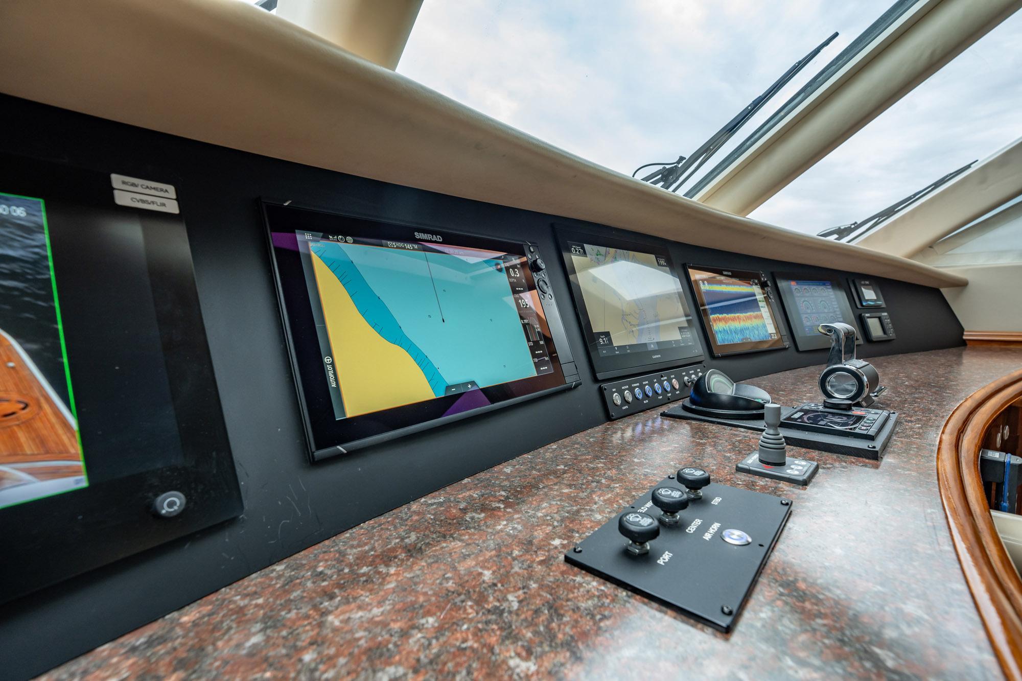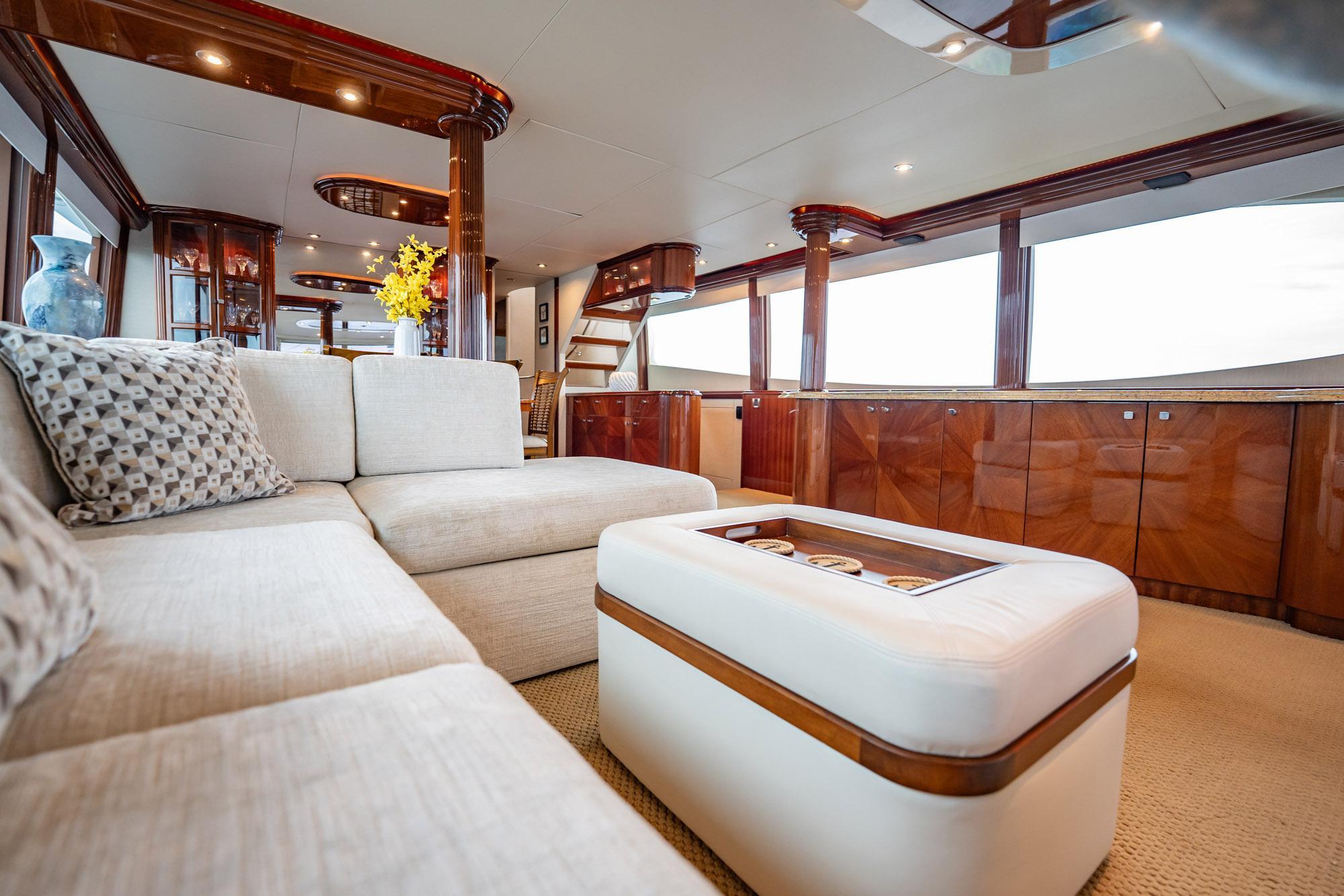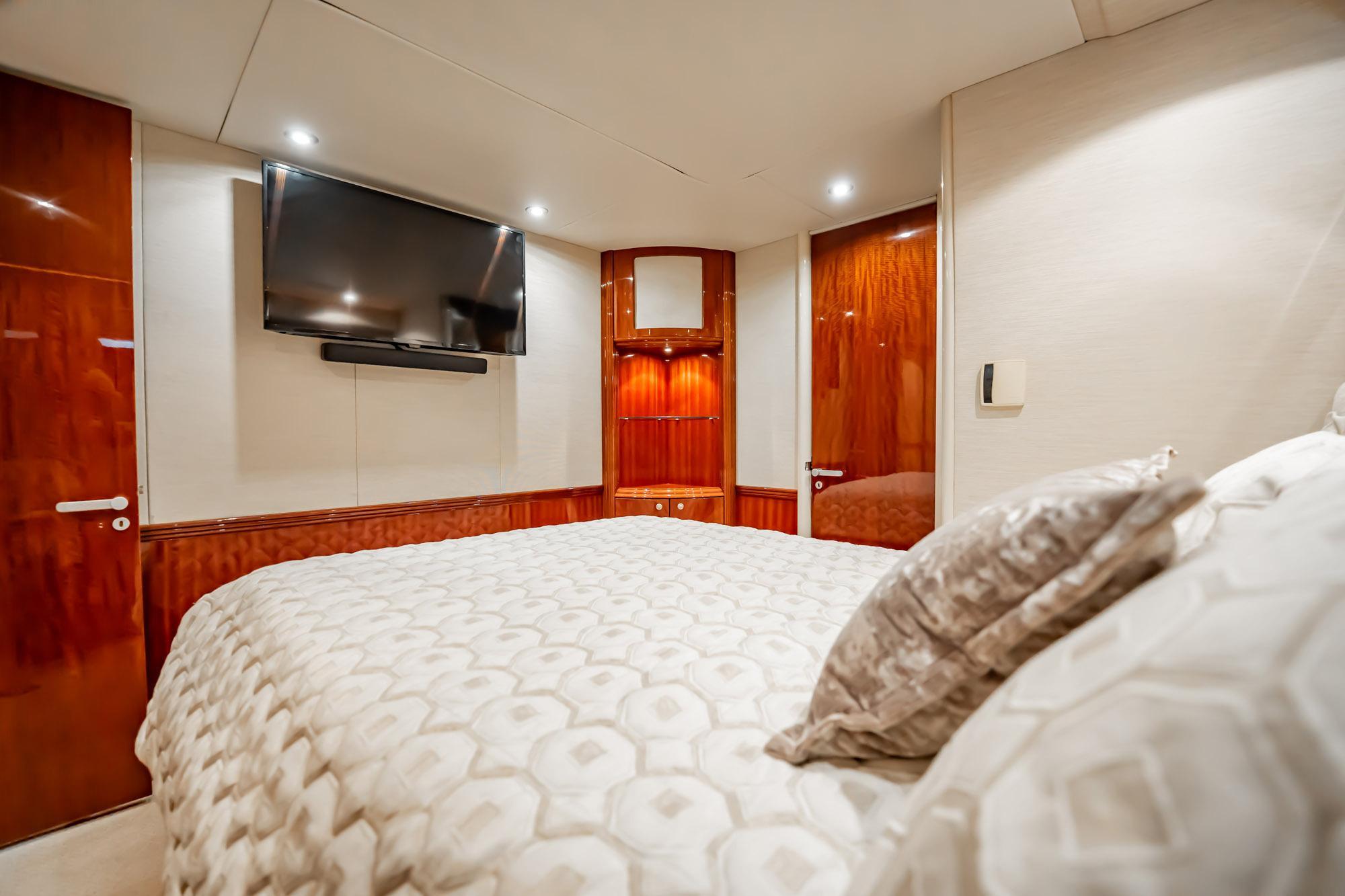 Water Ranch, a 2003 Lazzara 80 yacht is a luxury motor yacht built by the American company Lazzara Yachts. Lazzara Yachts has a long history of building high-quality, custom yachts with Euro-inspired designs. Water Ranch just like the others in the Lazzara line, is known for its performance and luxurious amenities. Meticulously maintained by her full-time captain featuring many upgrades. She has been cared for and maintained to the highest of standards.Water Ranch Notable Characteristics:Size and design: 80 feet (24.38 meters) in length with a beam of 20 feet (6.12 meters) Water Ranch features sleek lines and a modified V-hull.Layout and Accommodation: Water Ranch has a spacious and versatile layout. Featuring a five-stateroom, six-head layout. This configuration can comfortably accommodate a group of guests and potentially a crew.Interior Features: The interior features high-gloss dark cherry wood throughout, with recent upgrades in some cases including new soft goods, headliners, and flooring. The salon and dining area are typically designed for comfortable entertainment.Engine and Performance: Water Ranch is powered by MTU 12V183 engines. This engine package is known for both speed and efficient cruising.Skylounge: Water Ranch’s skylounge, which serves as a second entertaining area and often the command center of the yacht, offering excellent visibility.Storage and Water Toys: Water Ranch has ample storage for water toys, with features such as a hydraulic swim platform, jet ski pods, and a davit.
