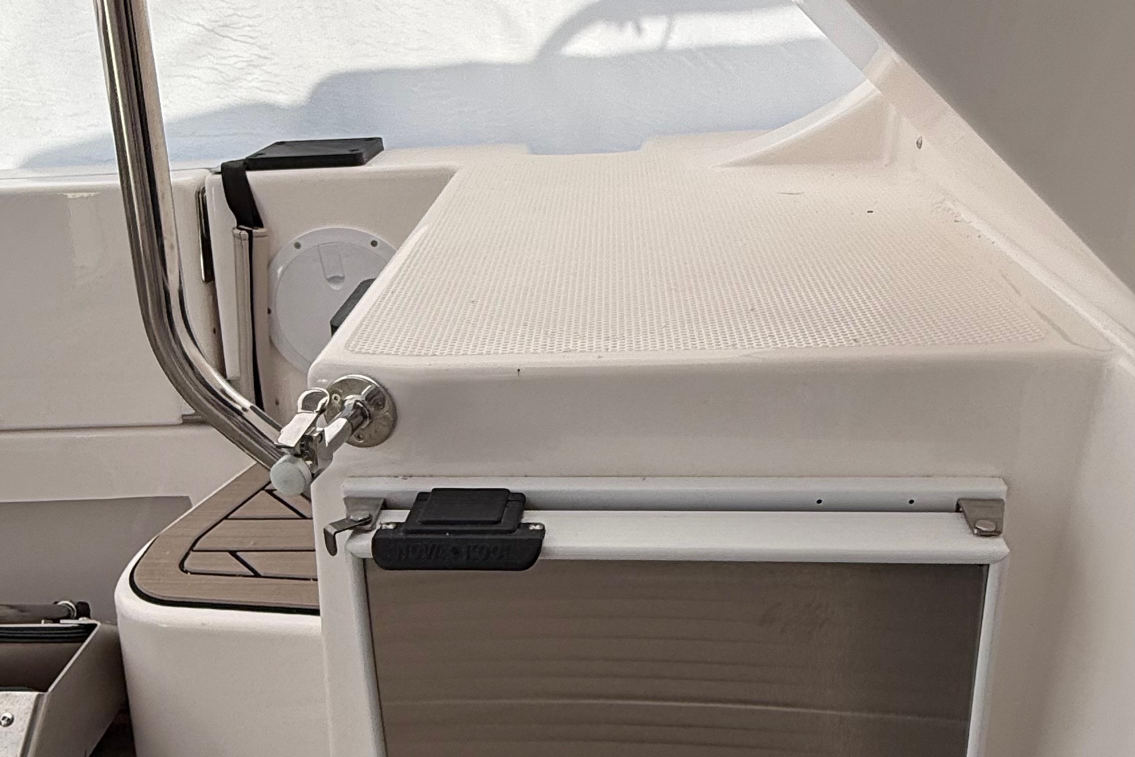 - Safety kit, fenders, lines, flares, fire ext, first aid kit, life jackets, boat hook